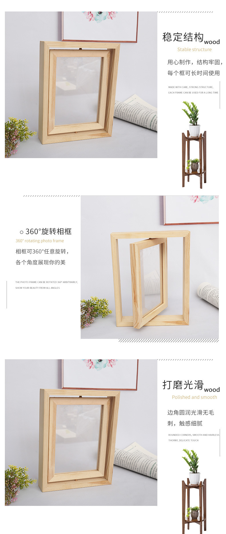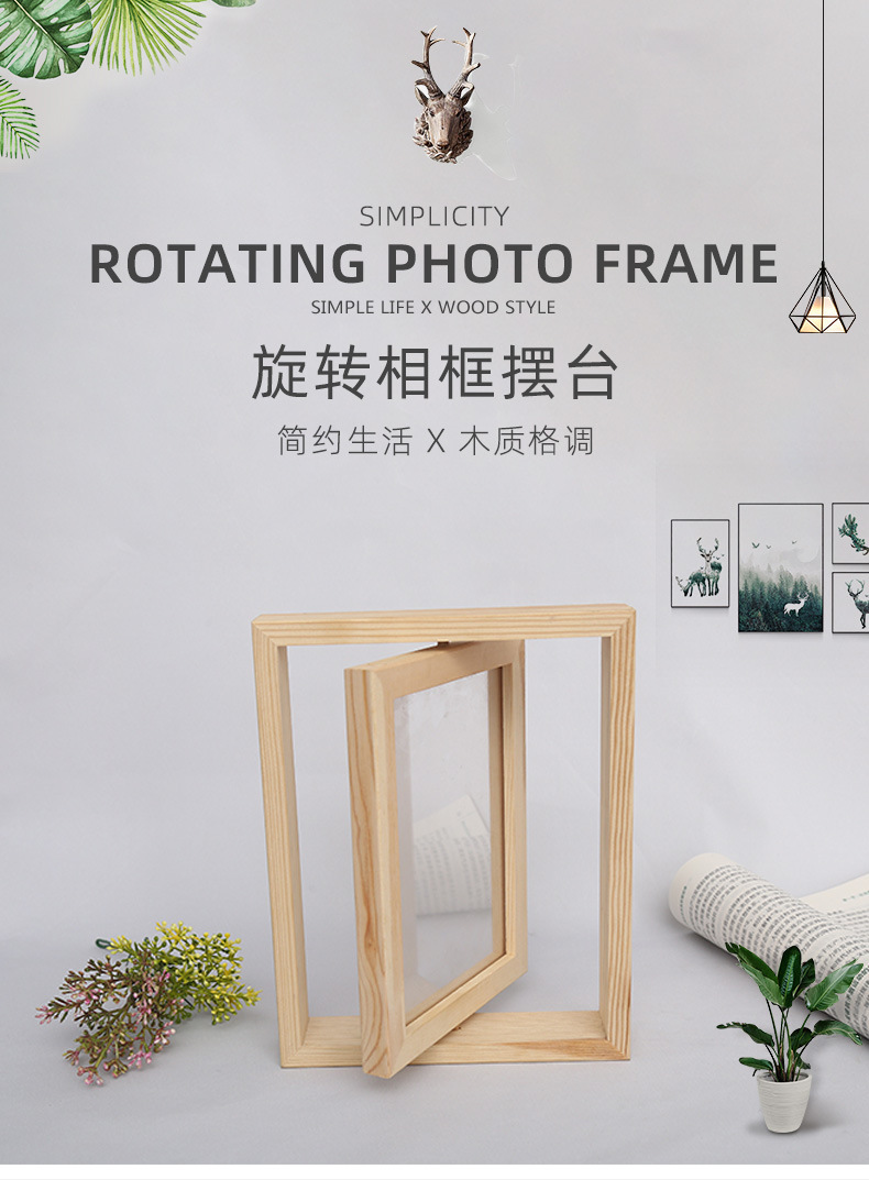 솔리드 우드 회전 사진 프레임 데스크탑 사진 프레임 테이블 장식 소나무 양면 사진 디스플레이 스테레오 나무 사진 프레임 장식품