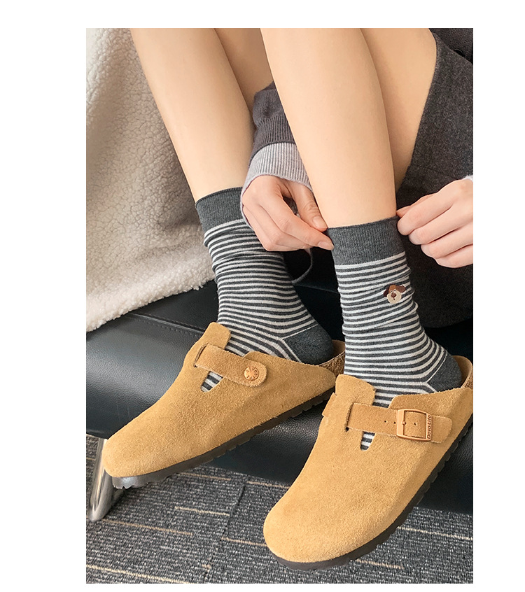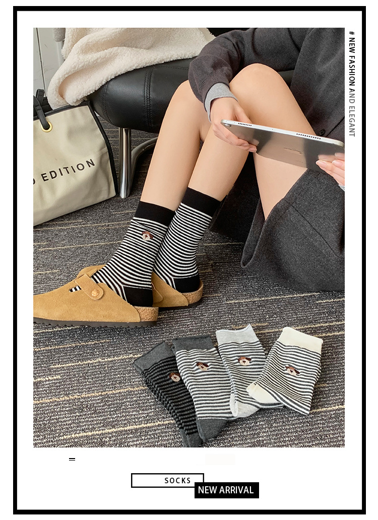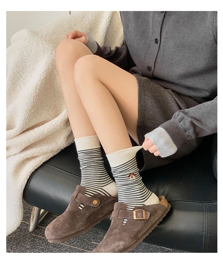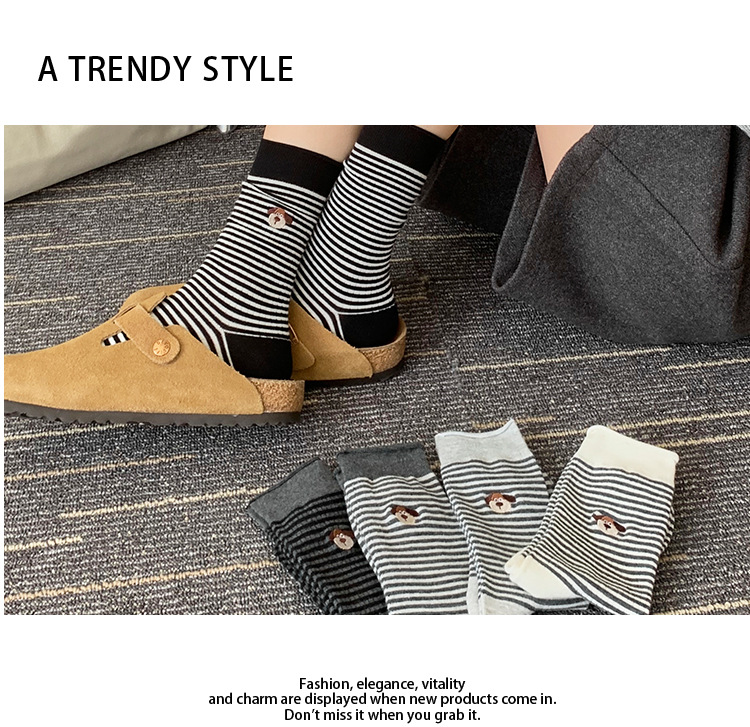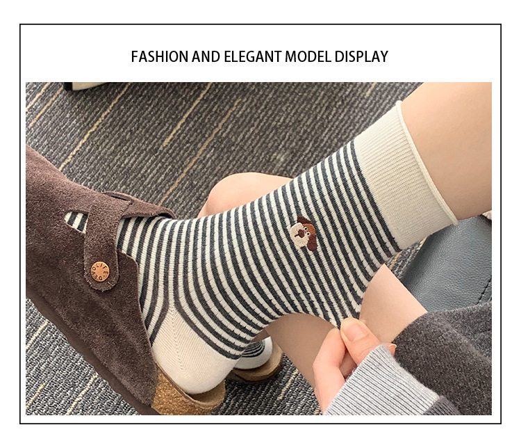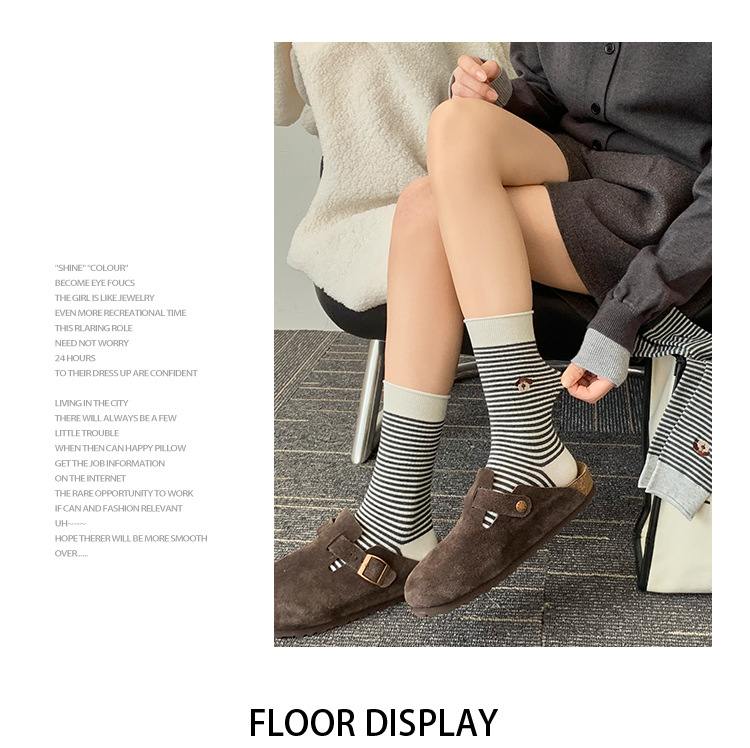 양말 여성의 봄과 가을 새로운 자수 만화 개 중간 튜브 양말 Ins 트렌디 브랜드 스트라이프 스택 양말 Zhuji 코튼 양말 여성스토어 가기