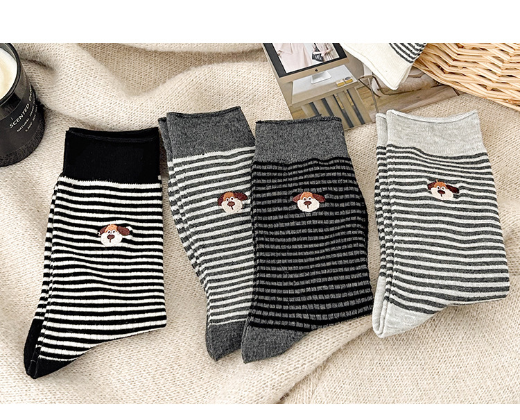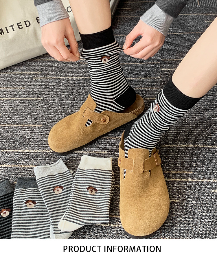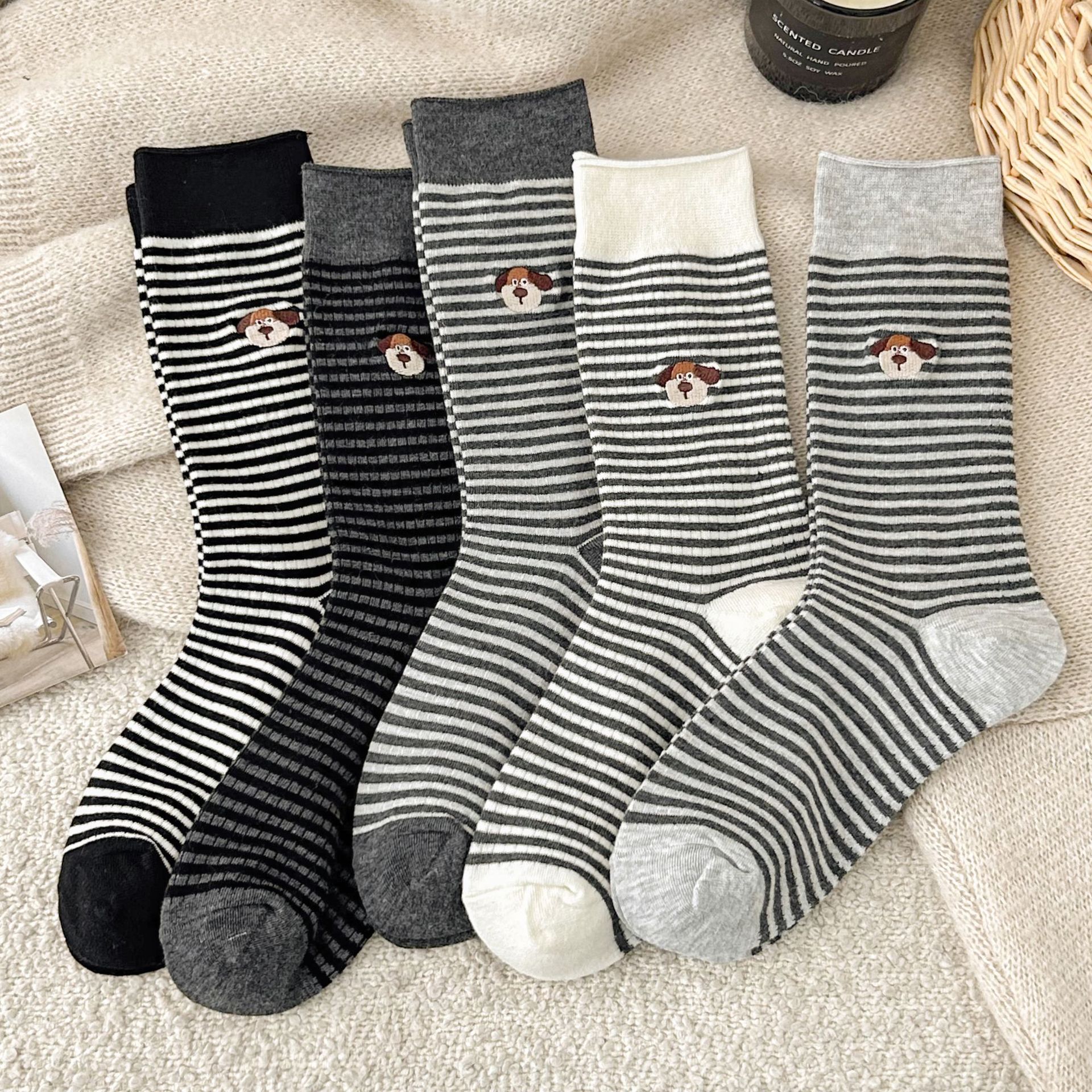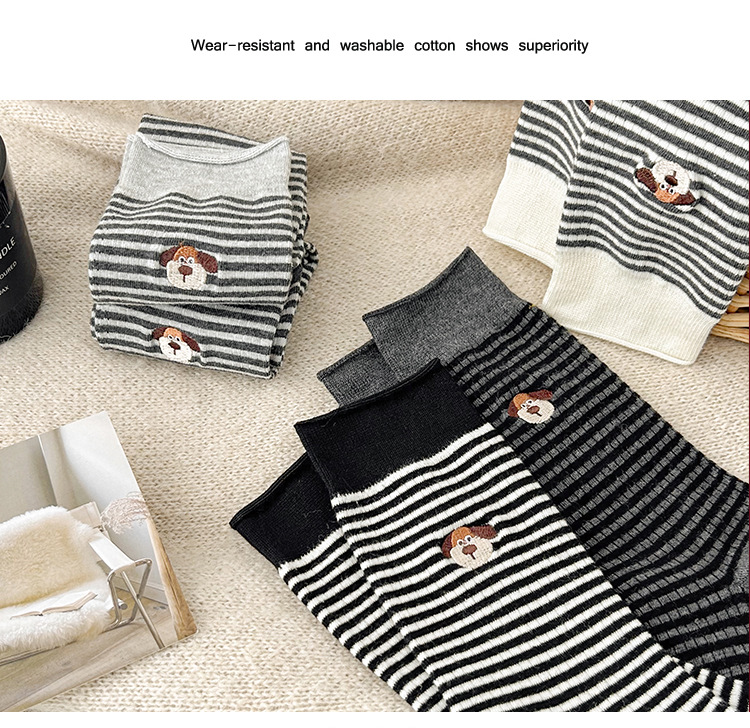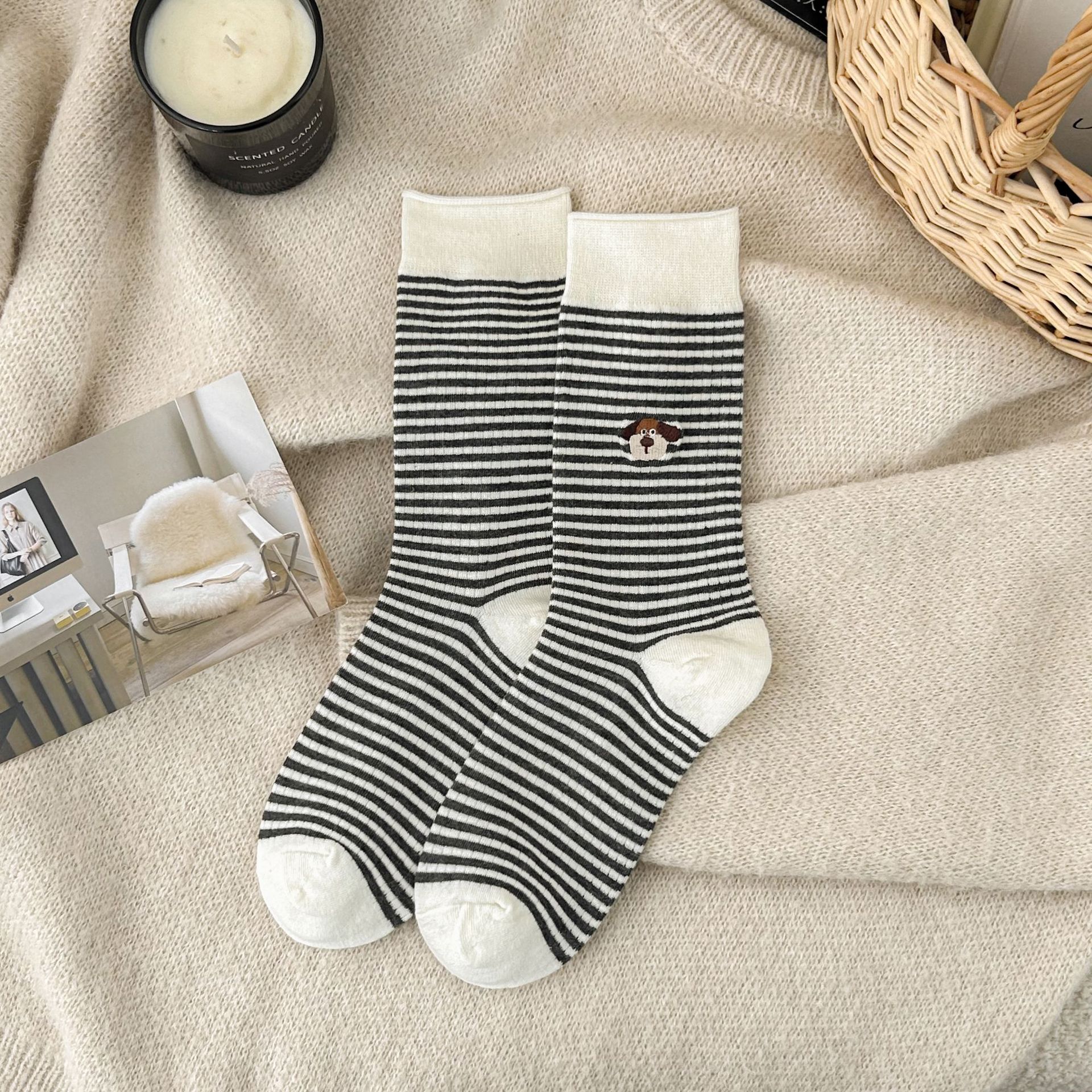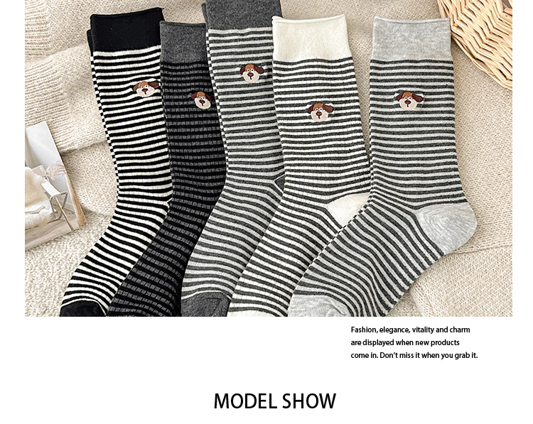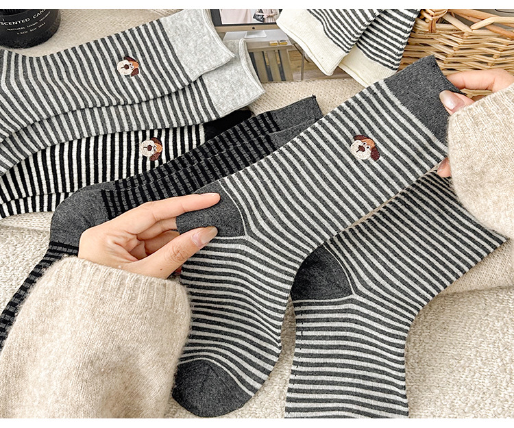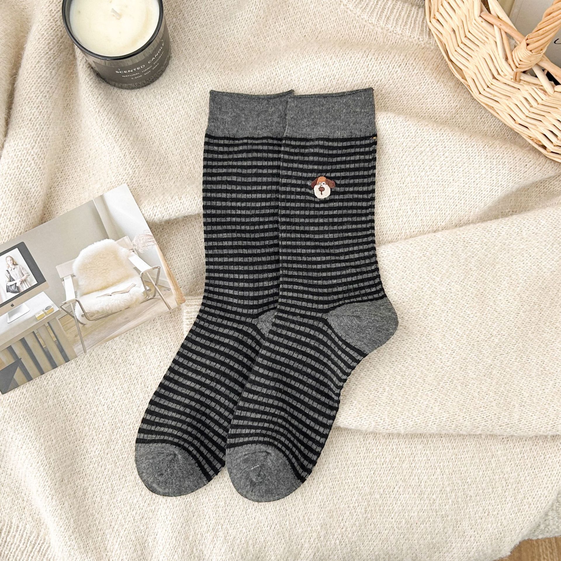 양말 여성의 봄과 가을 새로운 자수 만화 개 중간 튜브 양말 Ins 트렌디 브랜드 스트라이프 스택 양말 Zhuji 코튼 양말 여성