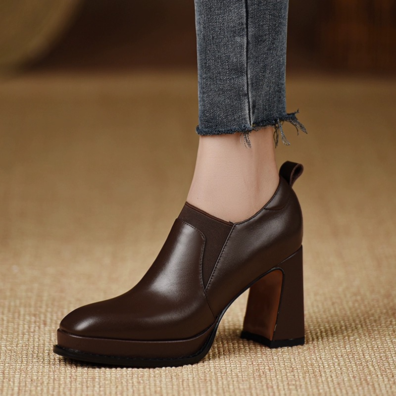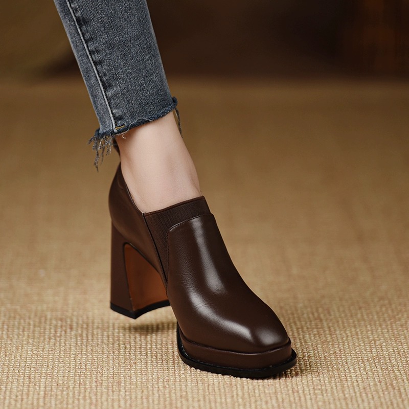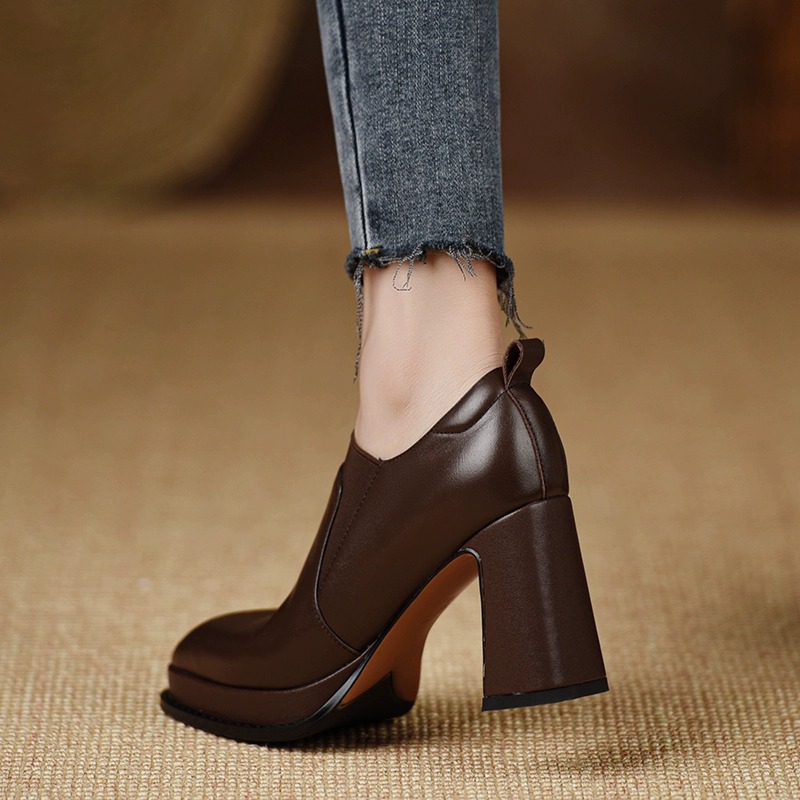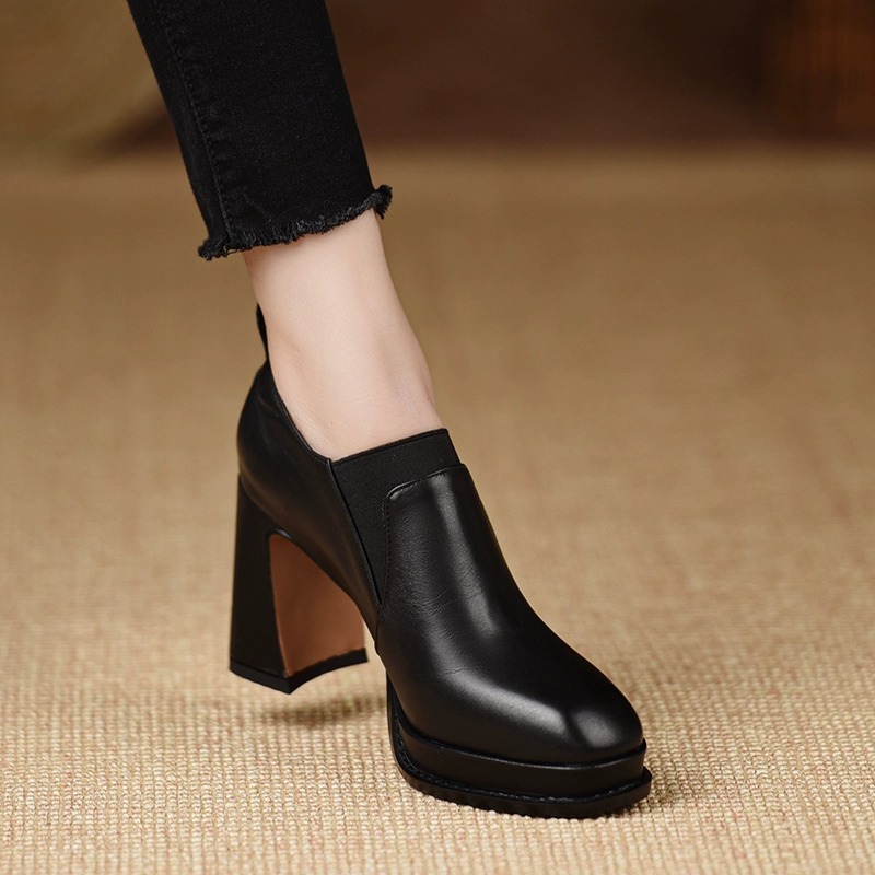 하이힐 여성 2025 봄과 가을 새로운 깊은 입 라운드 머리 싱글 신발 두꺼운 힐링 전문 작업 신발 소프트 단독 편안한 가죽 신발스토어 가기