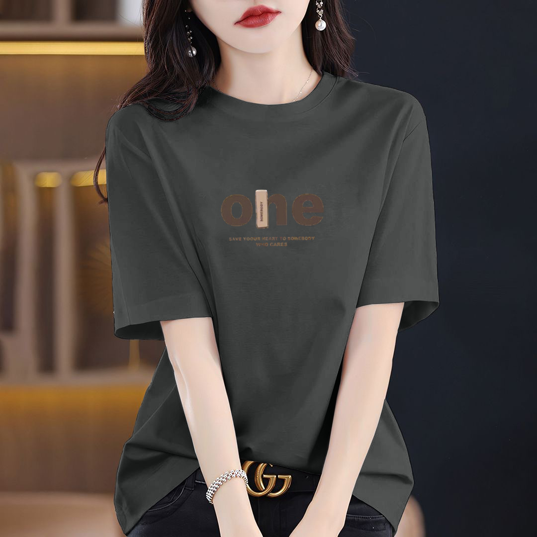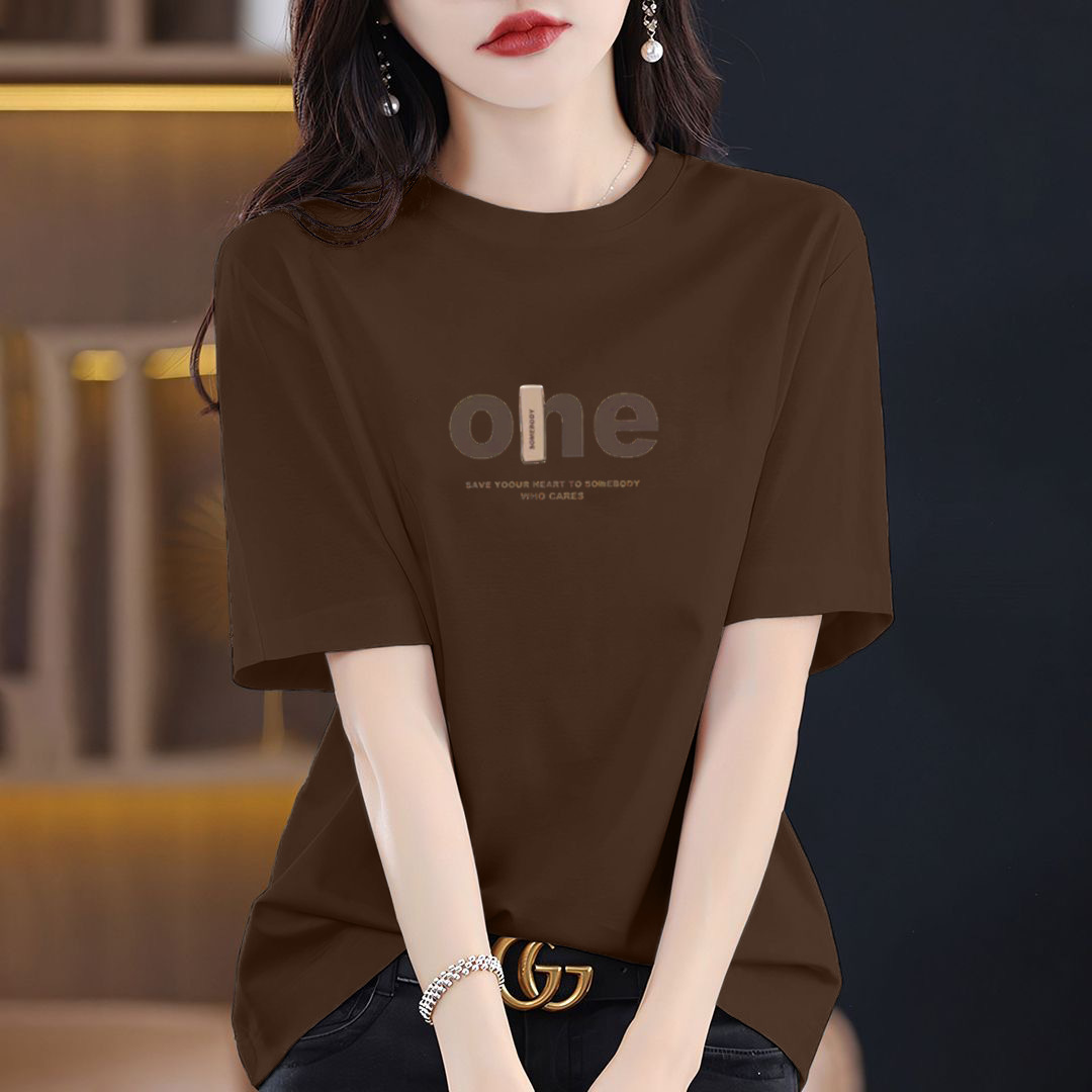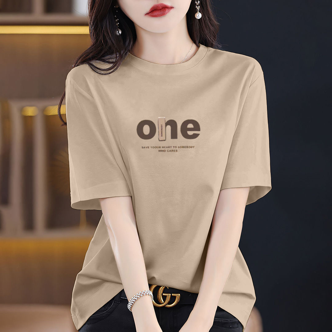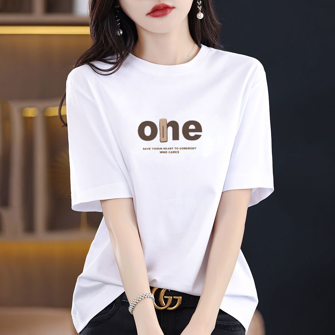 2025 새로운 여름 라운드 넥 반팔 티셔츠 여자 100 면 느슨한 슬리밍 우아한 올 매치 하이 엔드 탑스토어 가기