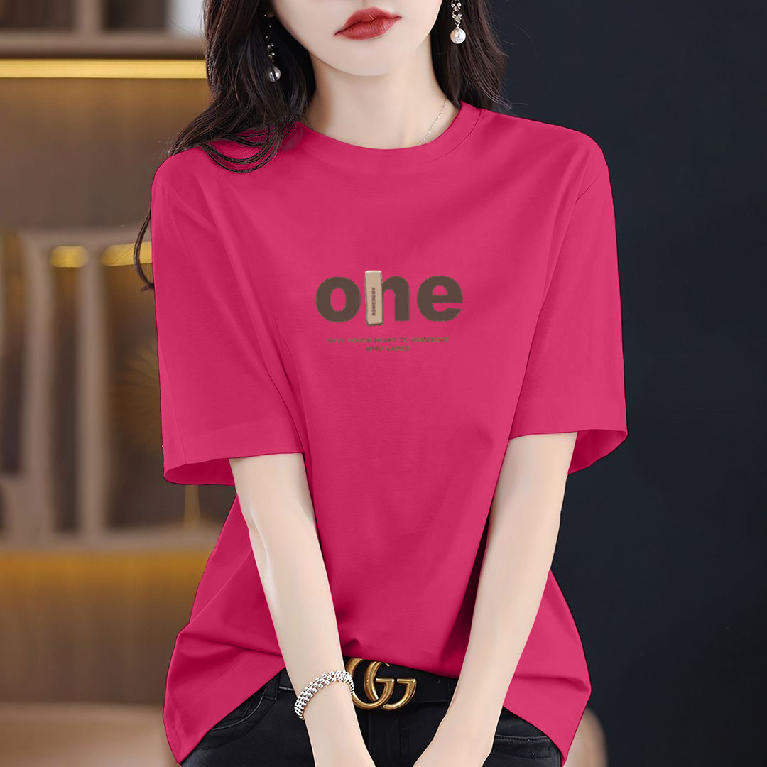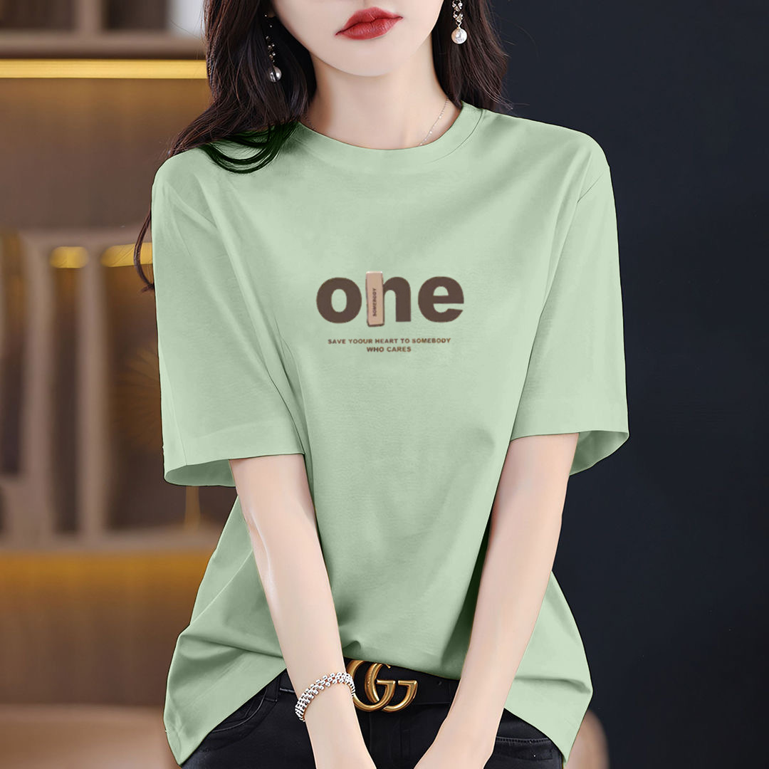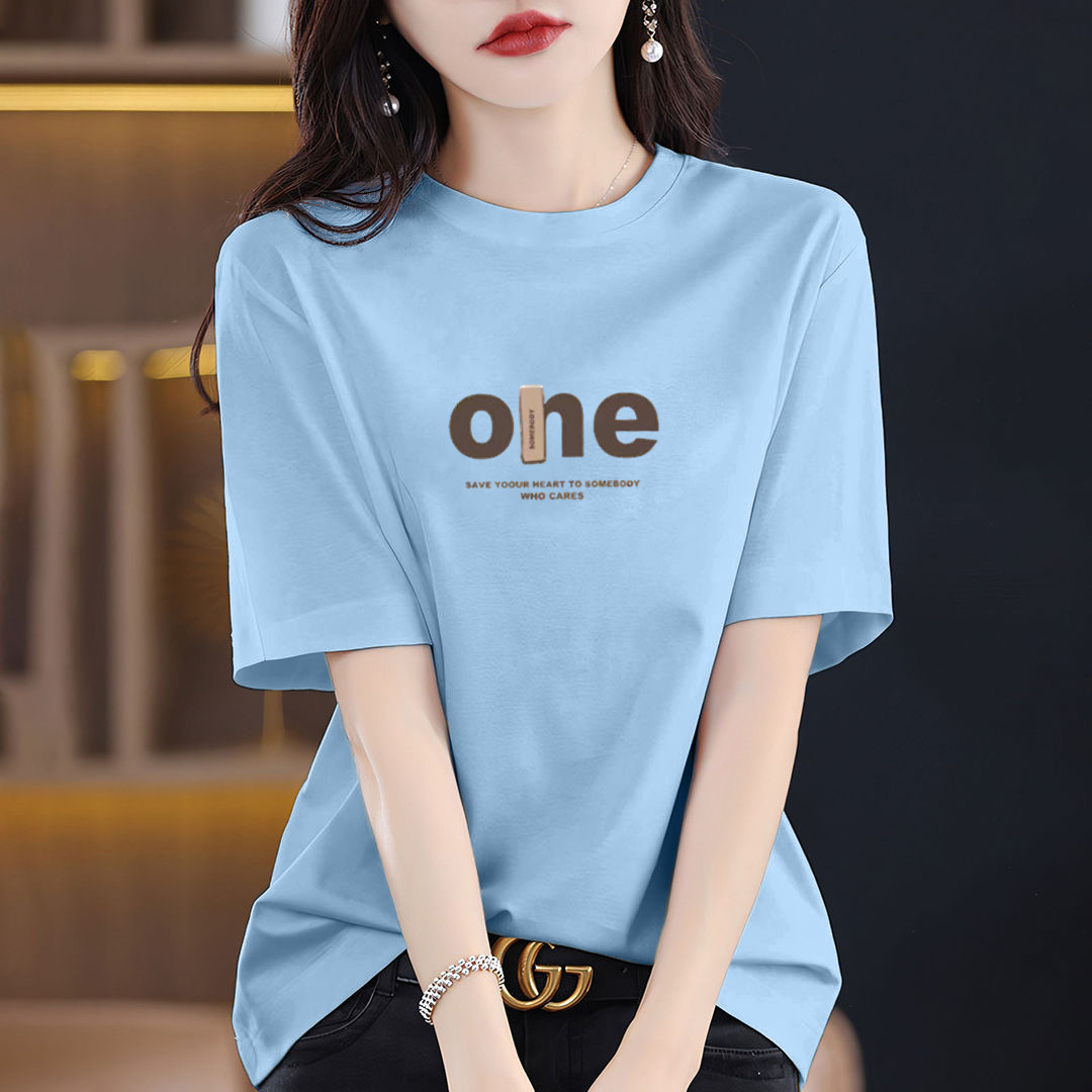 2025 새로운 여름 라운드 넥 반팔 티셔츠 여자 100 면 느슨한 슬리밍 우아한 올 매치 하이 엔드 탑스토어 가기