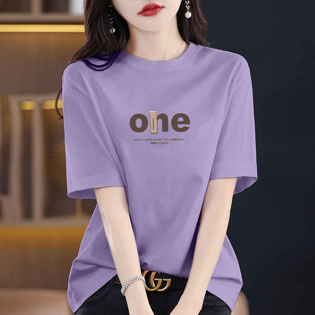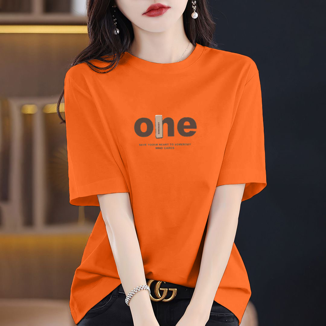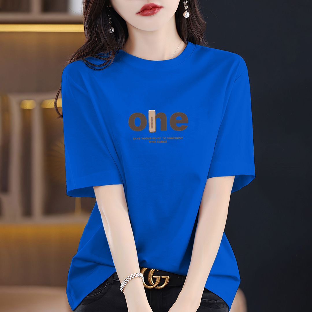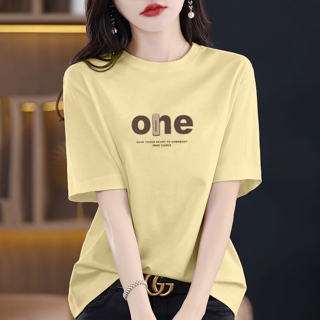 2025 새로운 여름 라운드 넥 반팔 티셔츠 여자 100 면 느슨한 슬리밍 우아한 올 매치 하이 엔드 탑스토어 가기