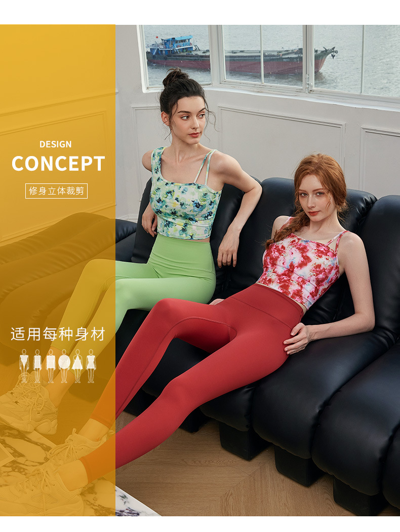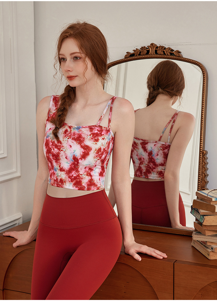인쇄 된 요가 조끼 넥타이 염색 여성 하이 엔드 내셔널 스타일 필라테스 스포츠 탑 가슴 패드