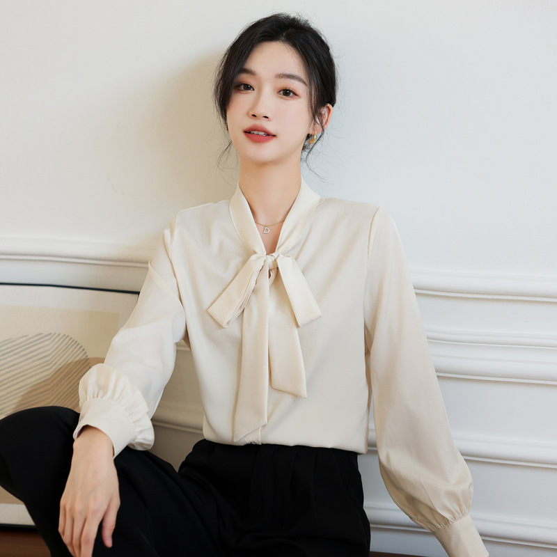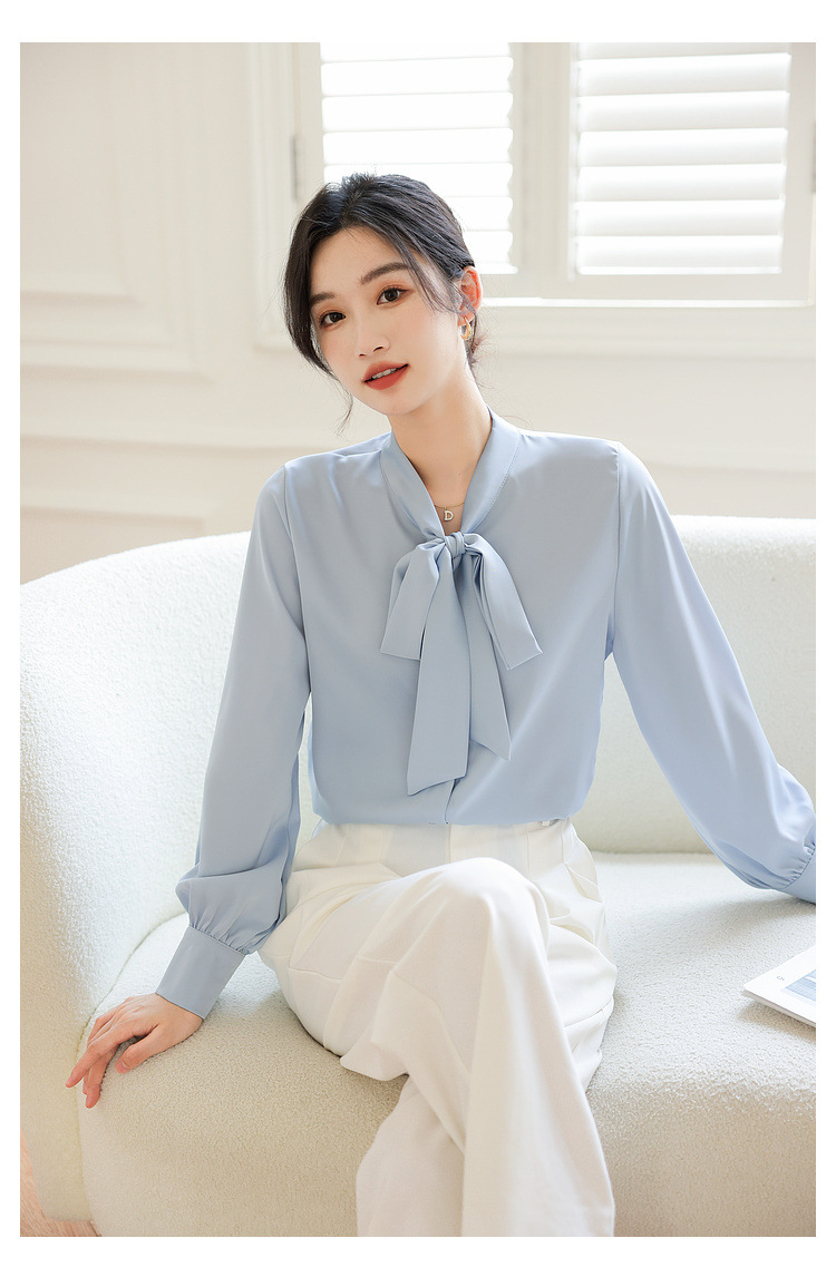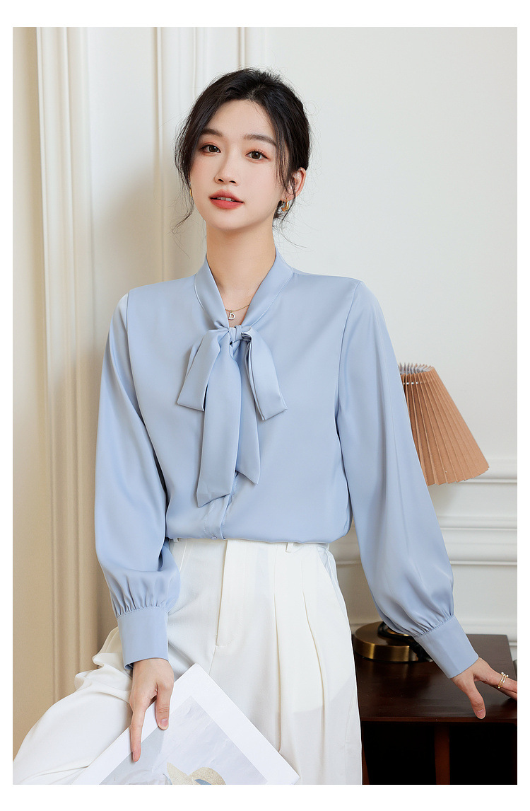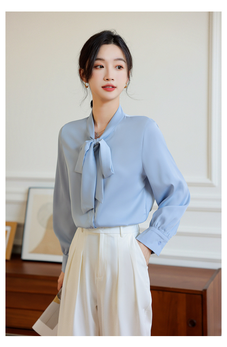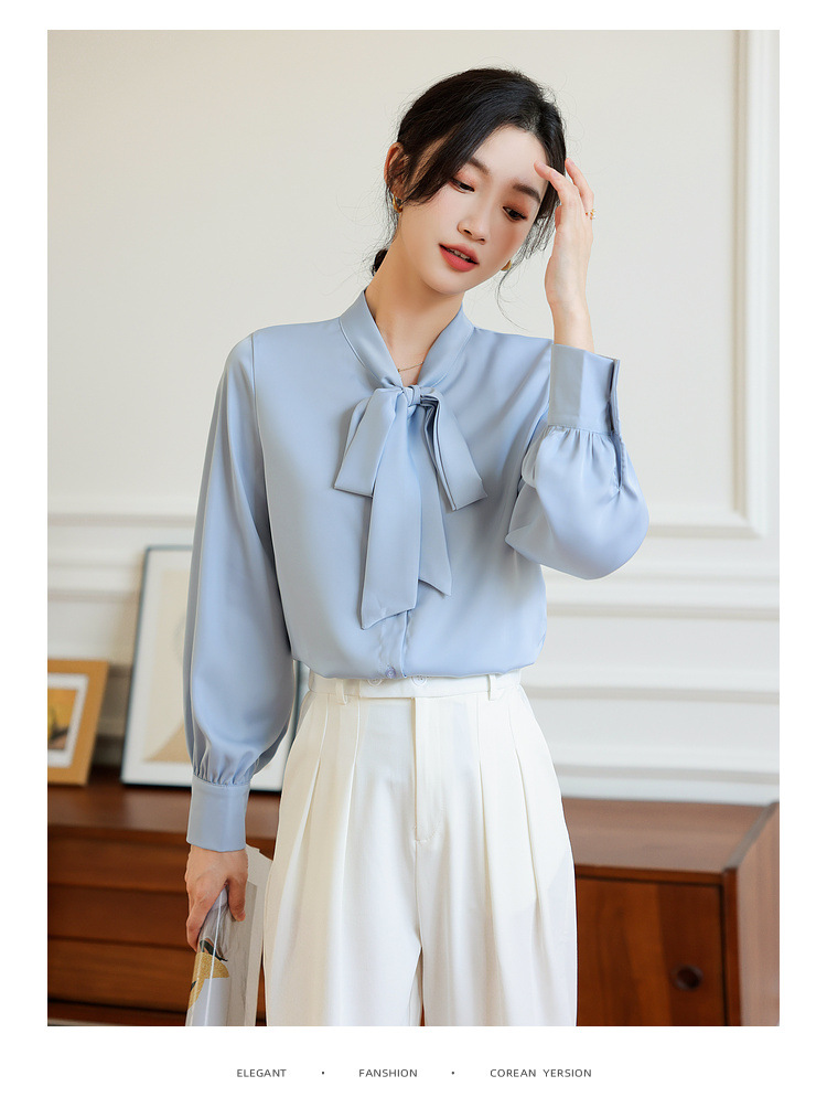 리얼샷 새틴 기질 쉬폰 셔츠 초가을 긴팔 통근 전문 셔츠 기질 리본 탑스토어 가기