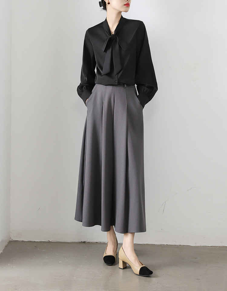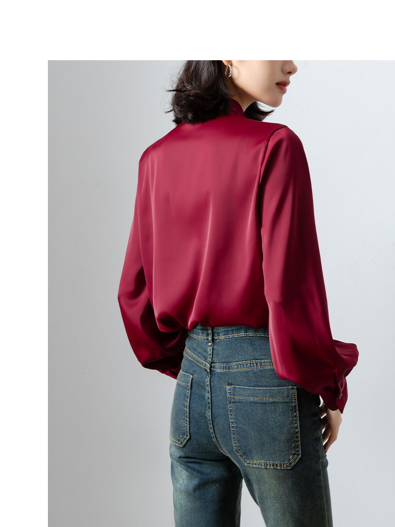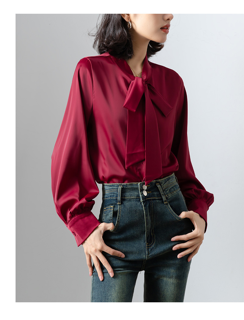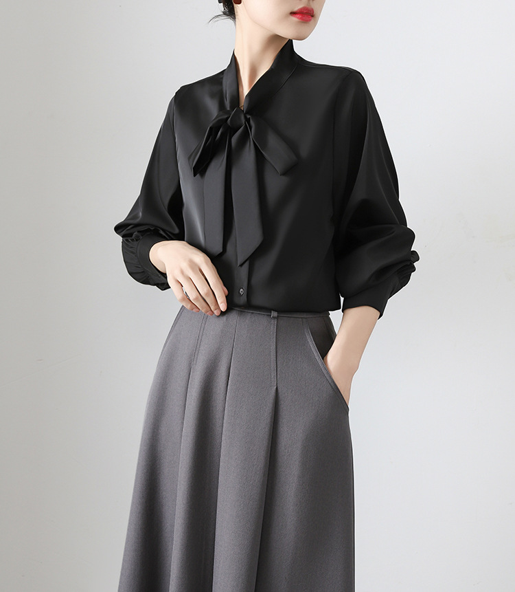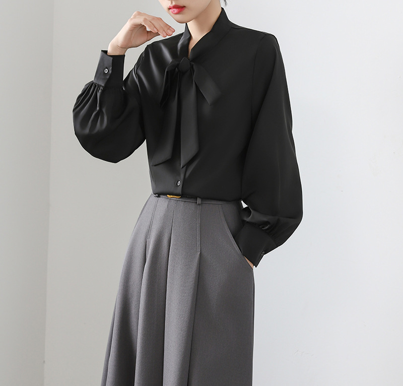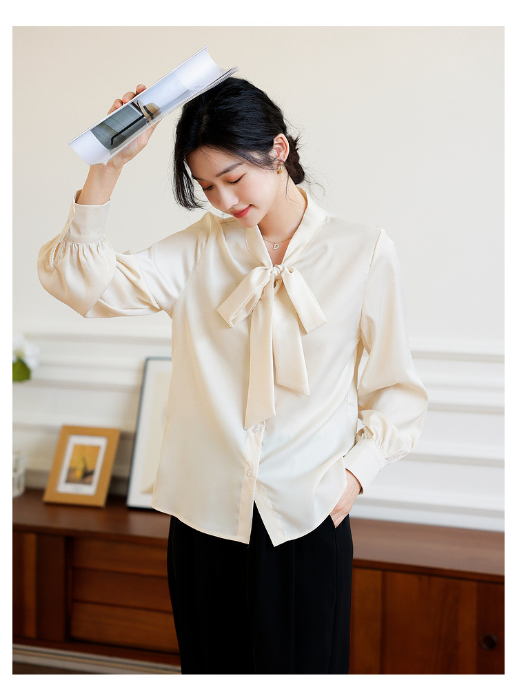 리얼샷 새틴 기질 쉬폰 셔츠 초가을 긴팔 통근 전문 셔츠 기질 리본 탑스토어 가기