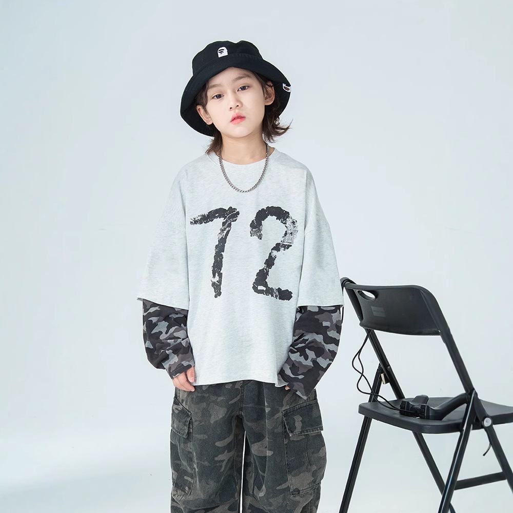 남아용 페이크 투피스 긴팔 티셔츠 2026년 봄 가을 신상 아동 가을옷 이너웨어 큰 남자아이 가을 스웨트셔츠