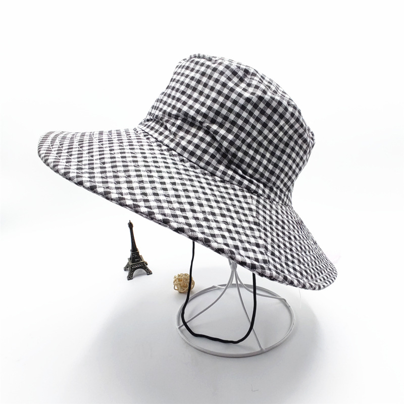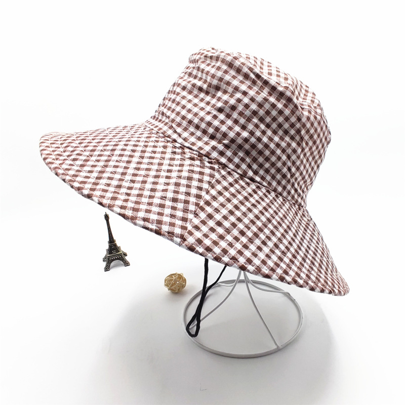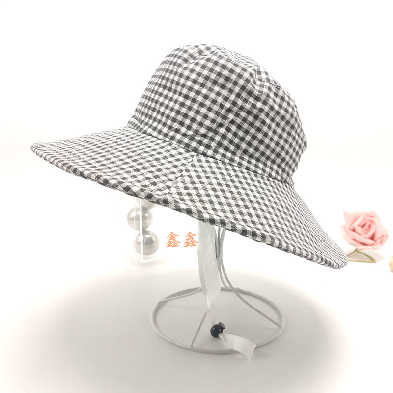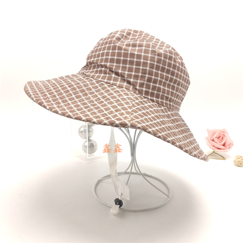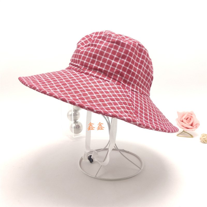 모자 여성의 봄과 여름 피셔 모자 격자 무늬 분지 모자 접이식 야외 태양 보호 큰 림 태양 모자 노동 보호 차 따기 모자