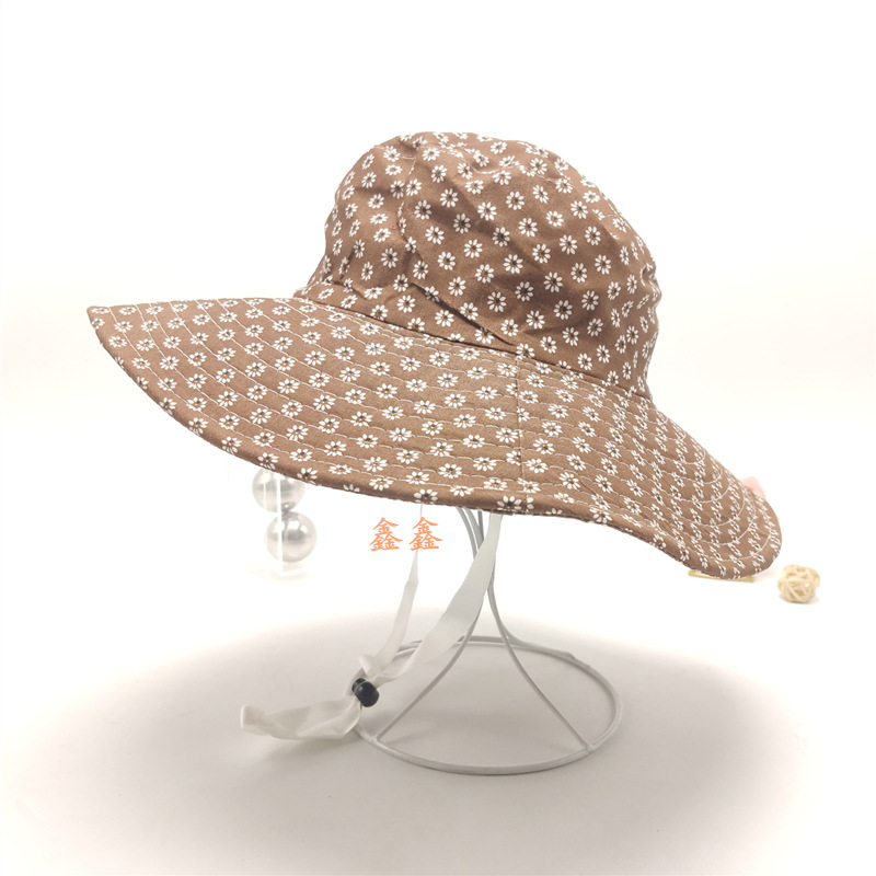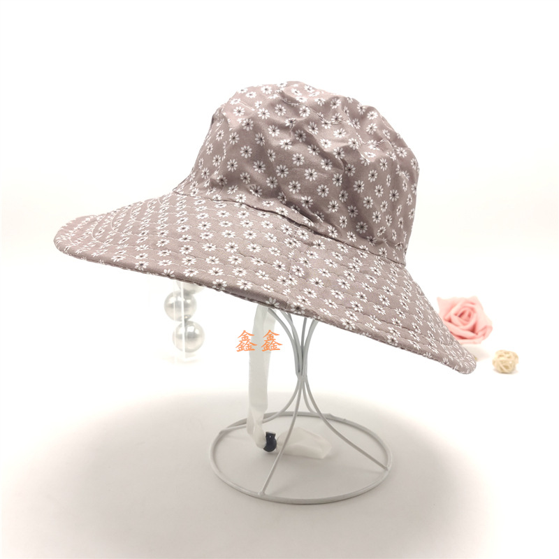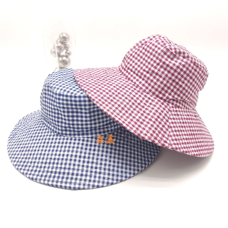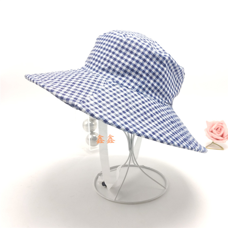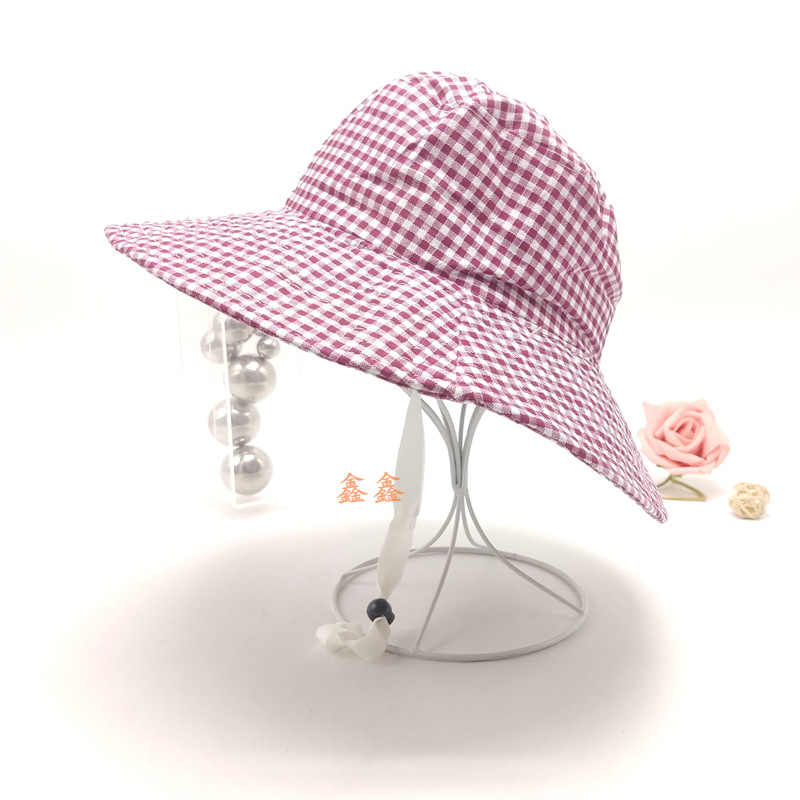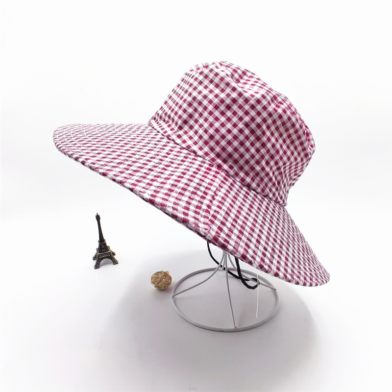 모자 여성의 봄과 여름 피셔 모자 격자 무늬 분지 모자 접이식 야외 태양 보호 큰 림 태양 모자 노동 보호 차 따기 모자