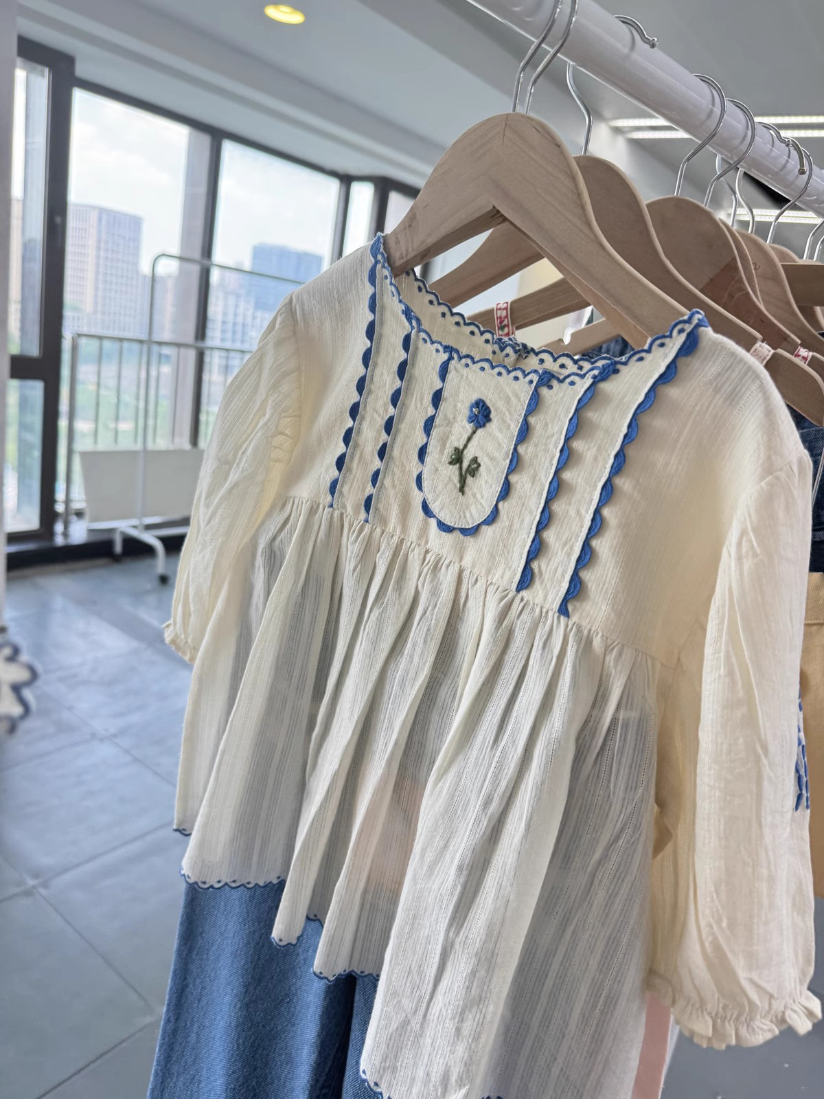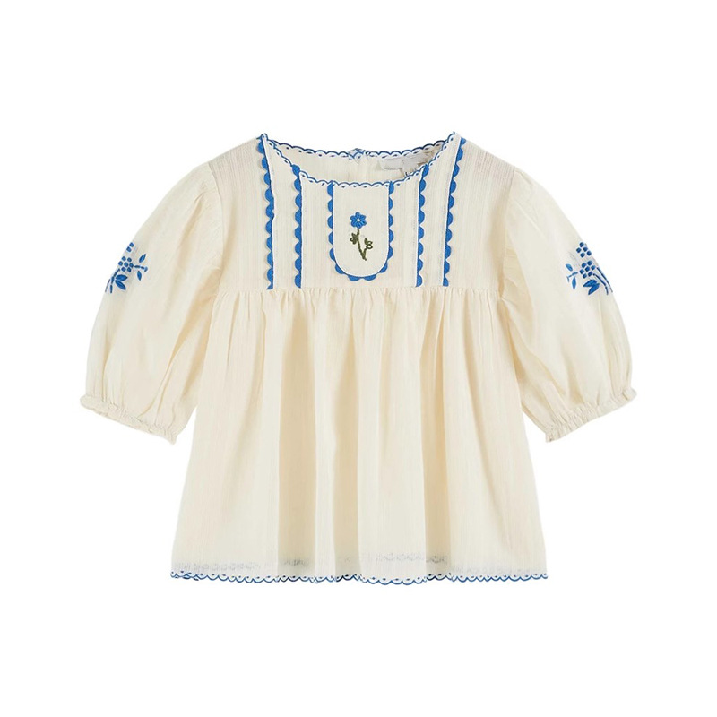 • 오프화이트 블루 플라워 자수 셔츠 [재고]