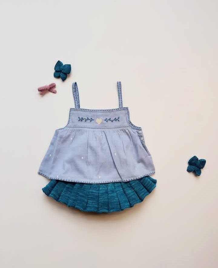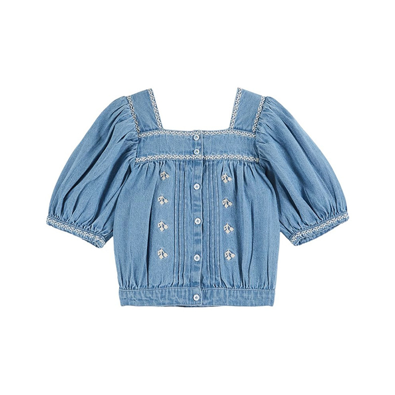 • 블루 체리 자수 데님 탑 [재고]