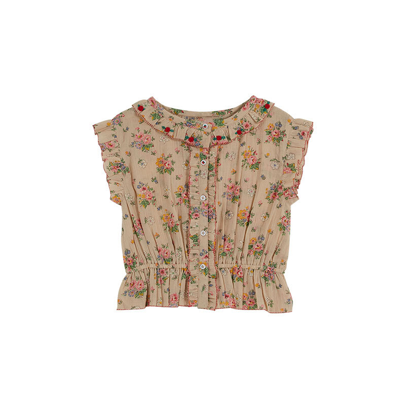 • 베이지 플로럴 올오버 프린트 라펠 탑 [재고 있음]