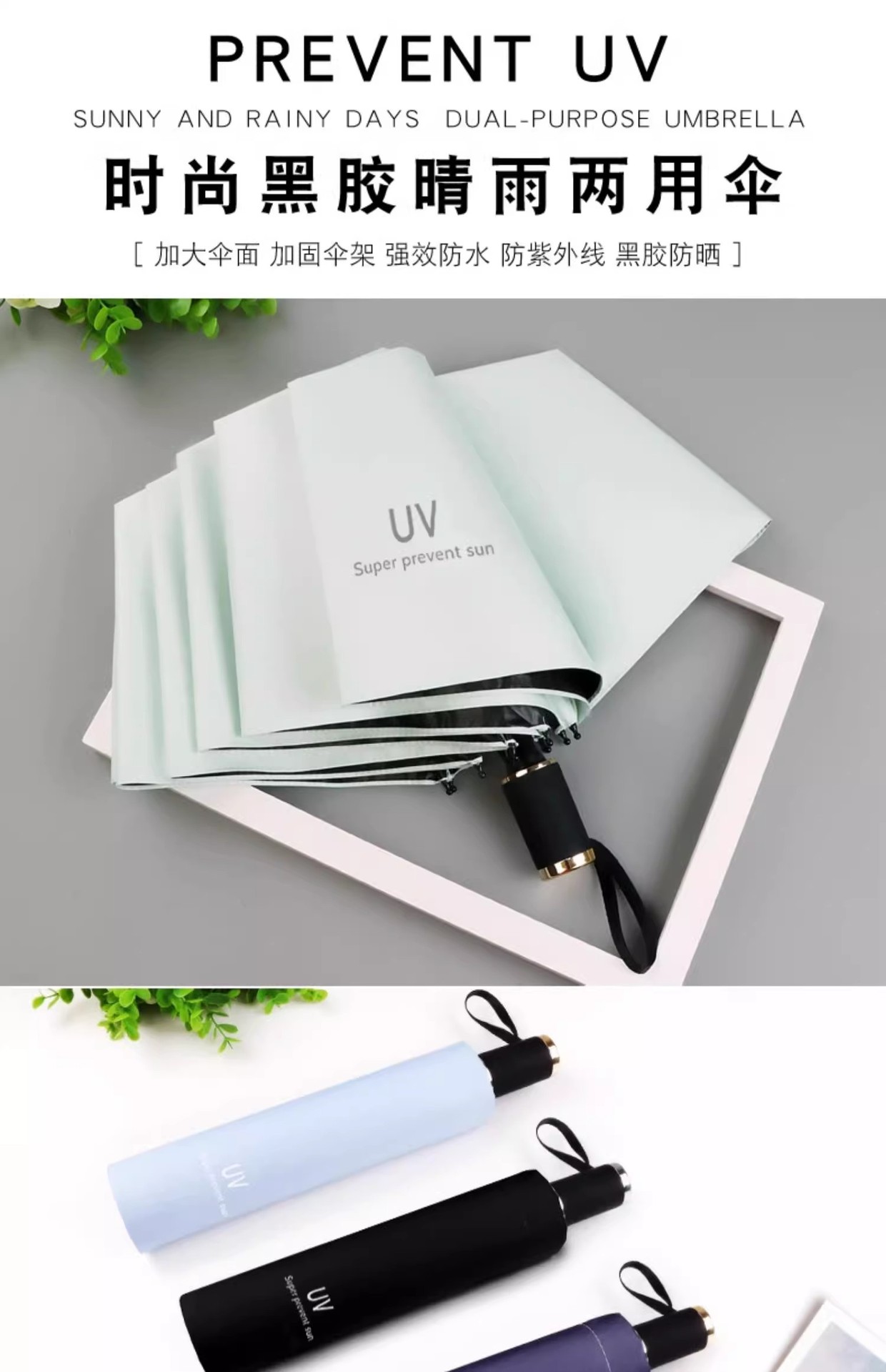 UV 자동 우산, 비와 햇빛 모두 사용 가능, 로고 인쇄, 자외선 차단, 접이식, 블랙코팅, 8단, 광고용, 비즈니스용