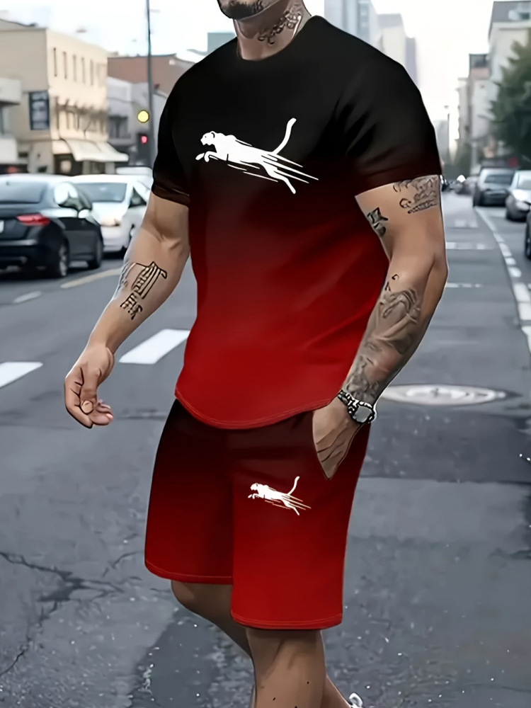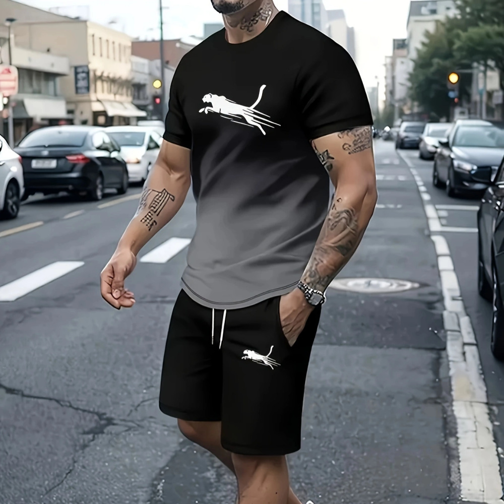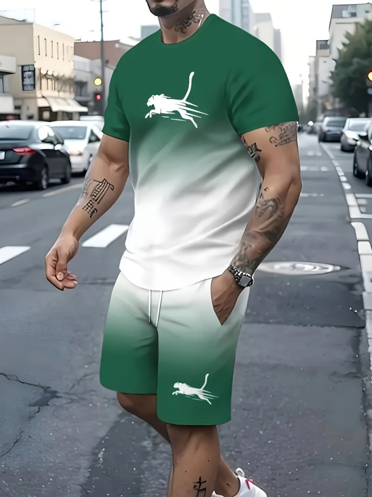 2025 국경 핫 셀러 스웨트 스트리트 패션 반팔 티셔츠 느슨한 남성 3D 디지털 인쇄 대외 무역