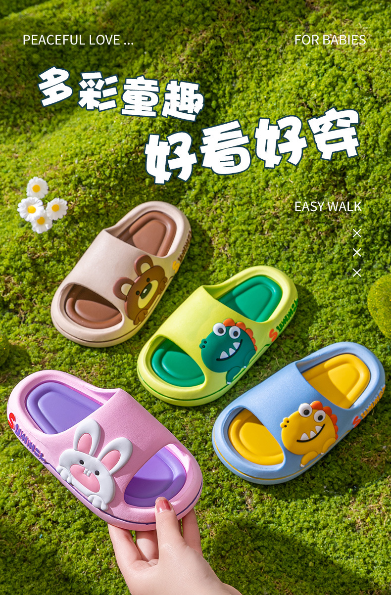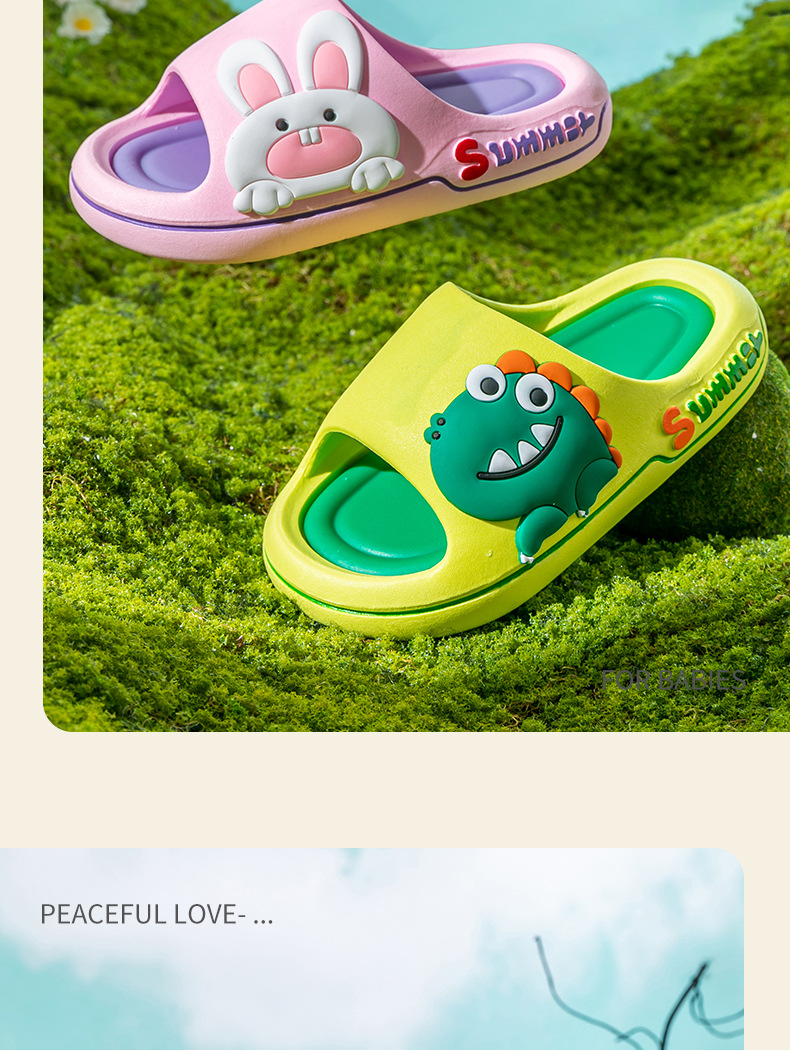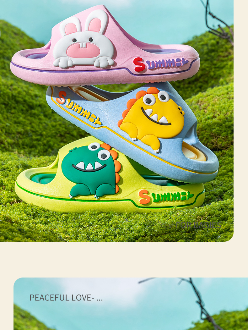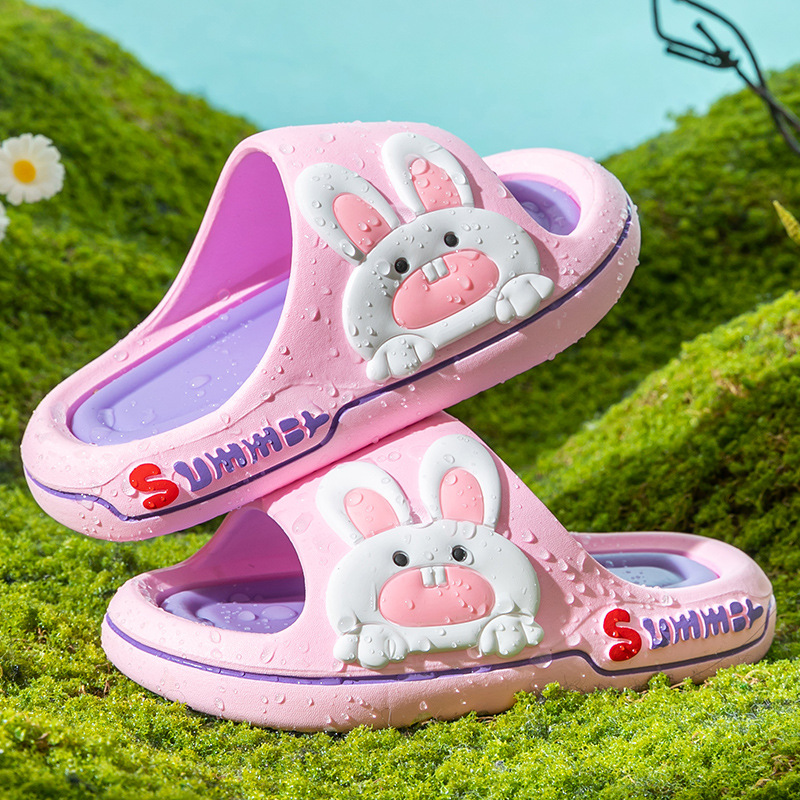 여름 귀여운 어린이 만화 토끼 슬리퍼 PVC 부드럽고 편안한 아기 슬리퍼 다채로운 어린이 신발스토어 가기