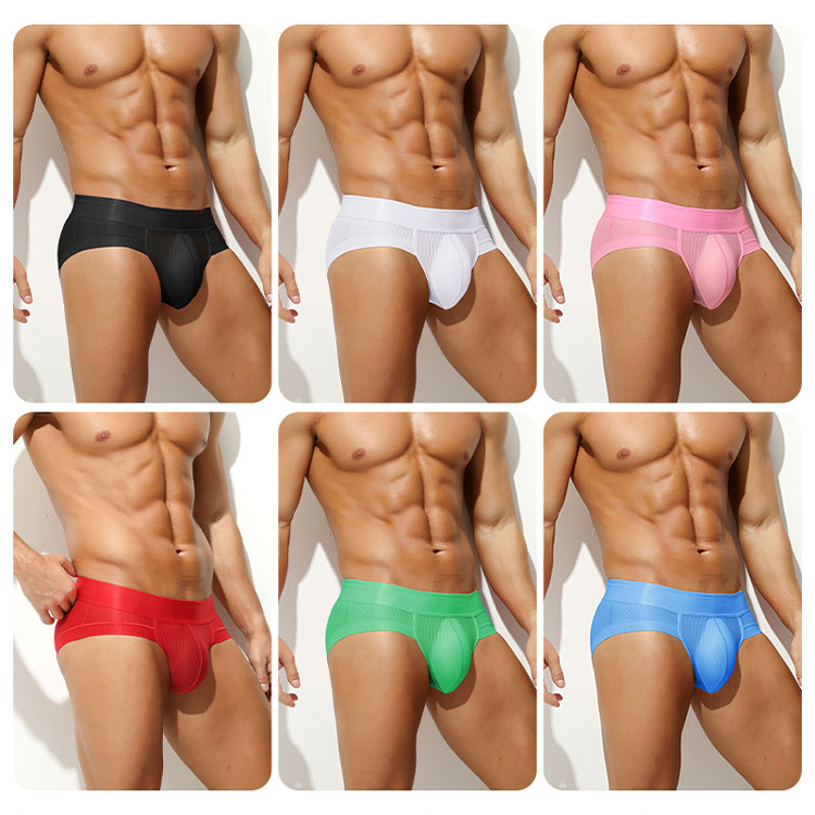 남자 속옷 아이스 실크 메쉬 브리프 남자 낮은 허리 통기성 반바지 소년 새로운 섹시한 낮은 허리 반바지