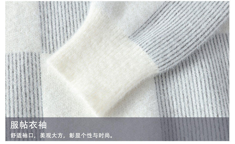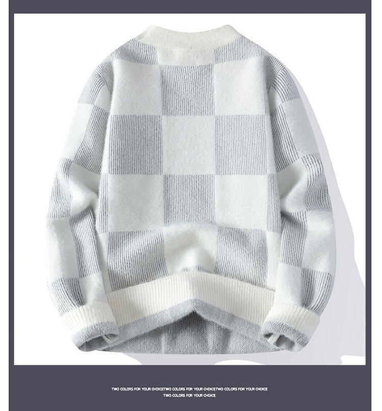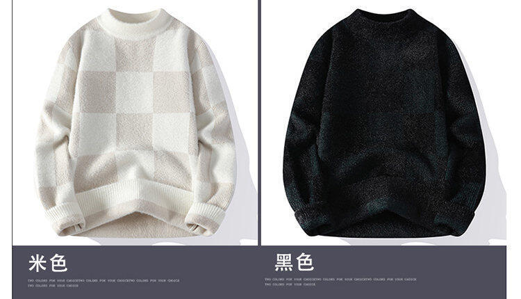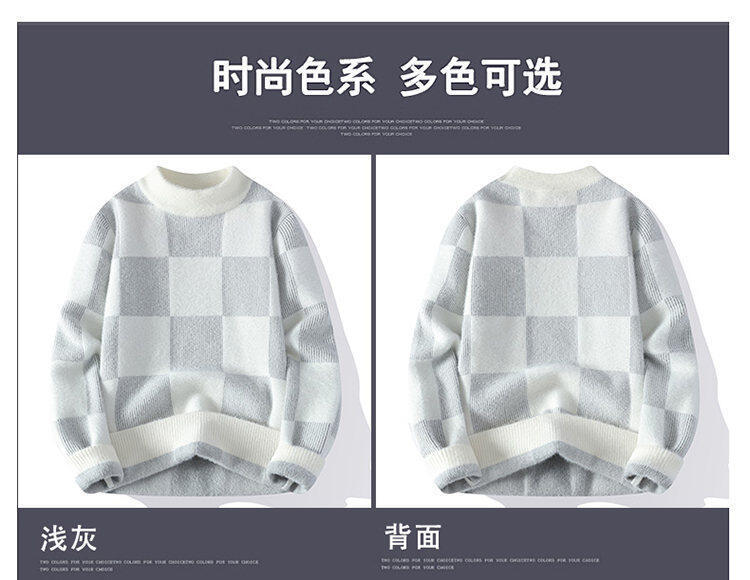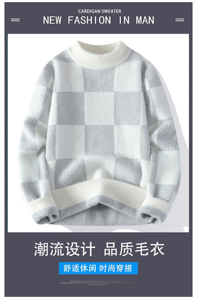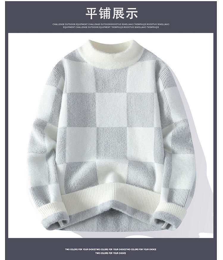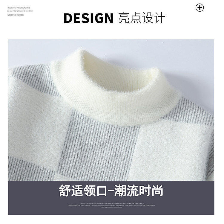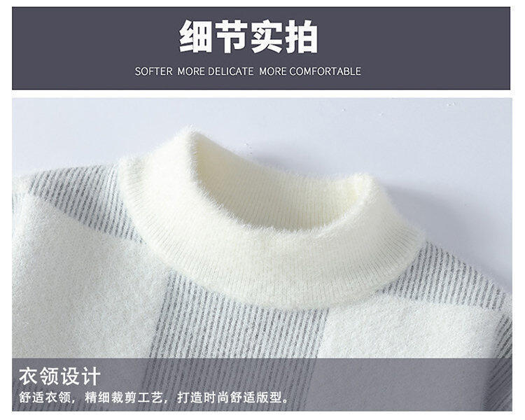 국경을 넘어 인기 있는 남성용 고품질 밍크 벨벳 배색 체크 하프 터틀넥 스웨터 니트웨어스토어 가기