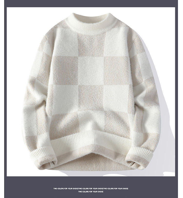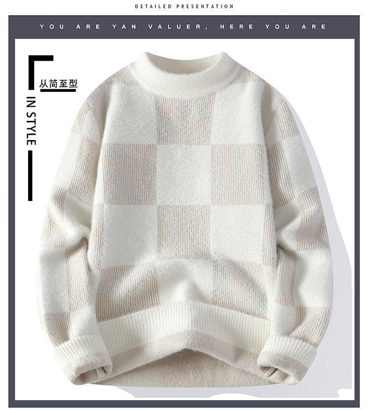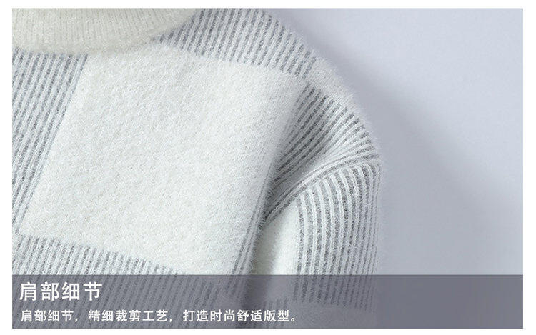 국경을 넘어 인기 있는 남성용 고품질 밍크 벨벳 배색 체크 하프 터틀넥 스웨터 니트웨어