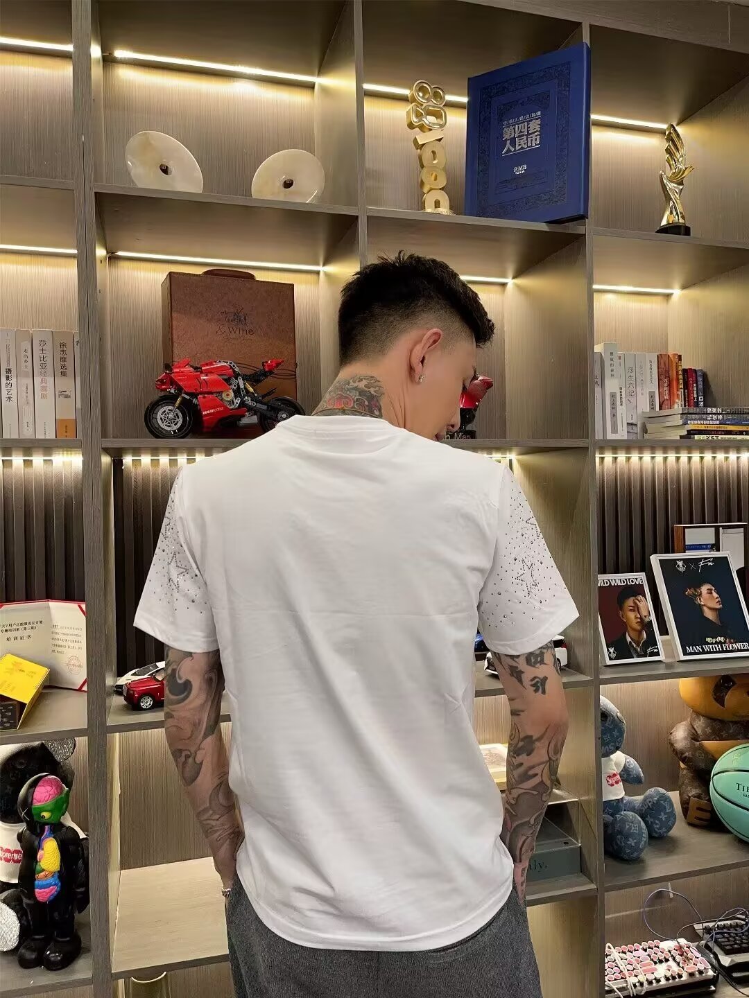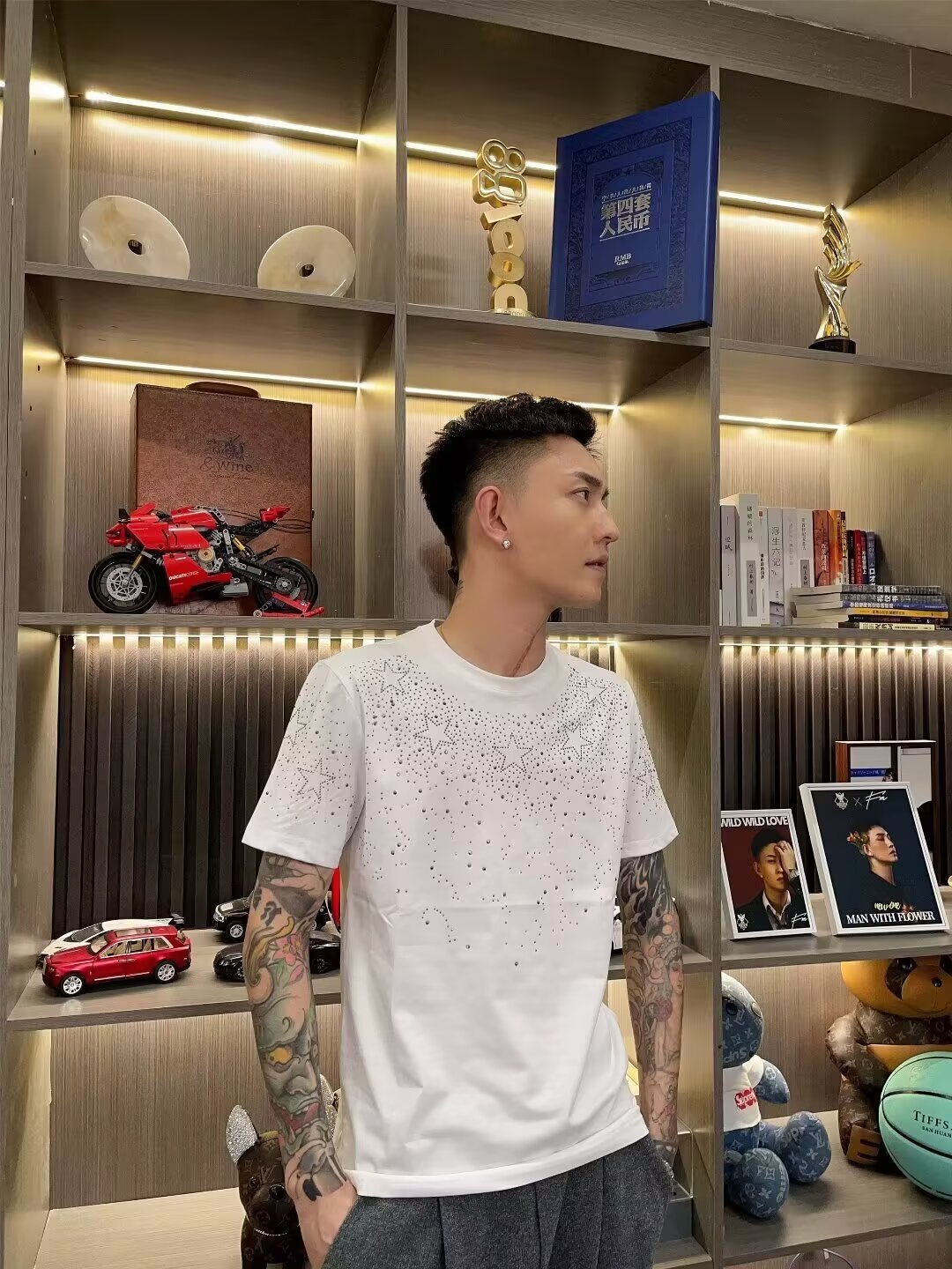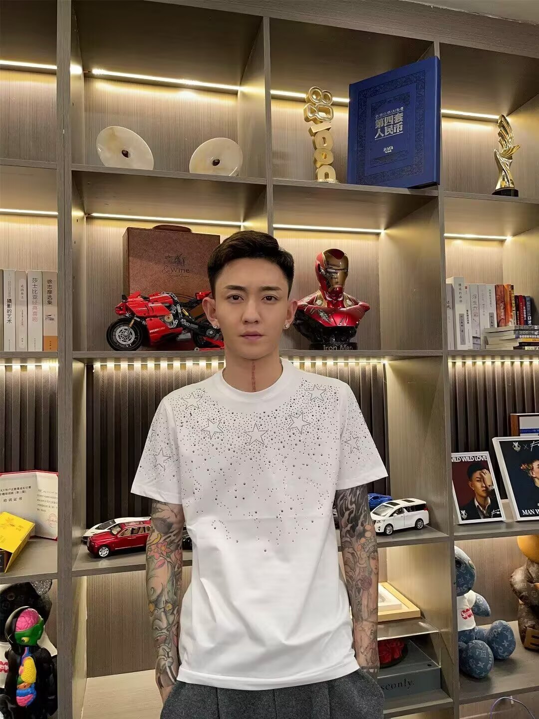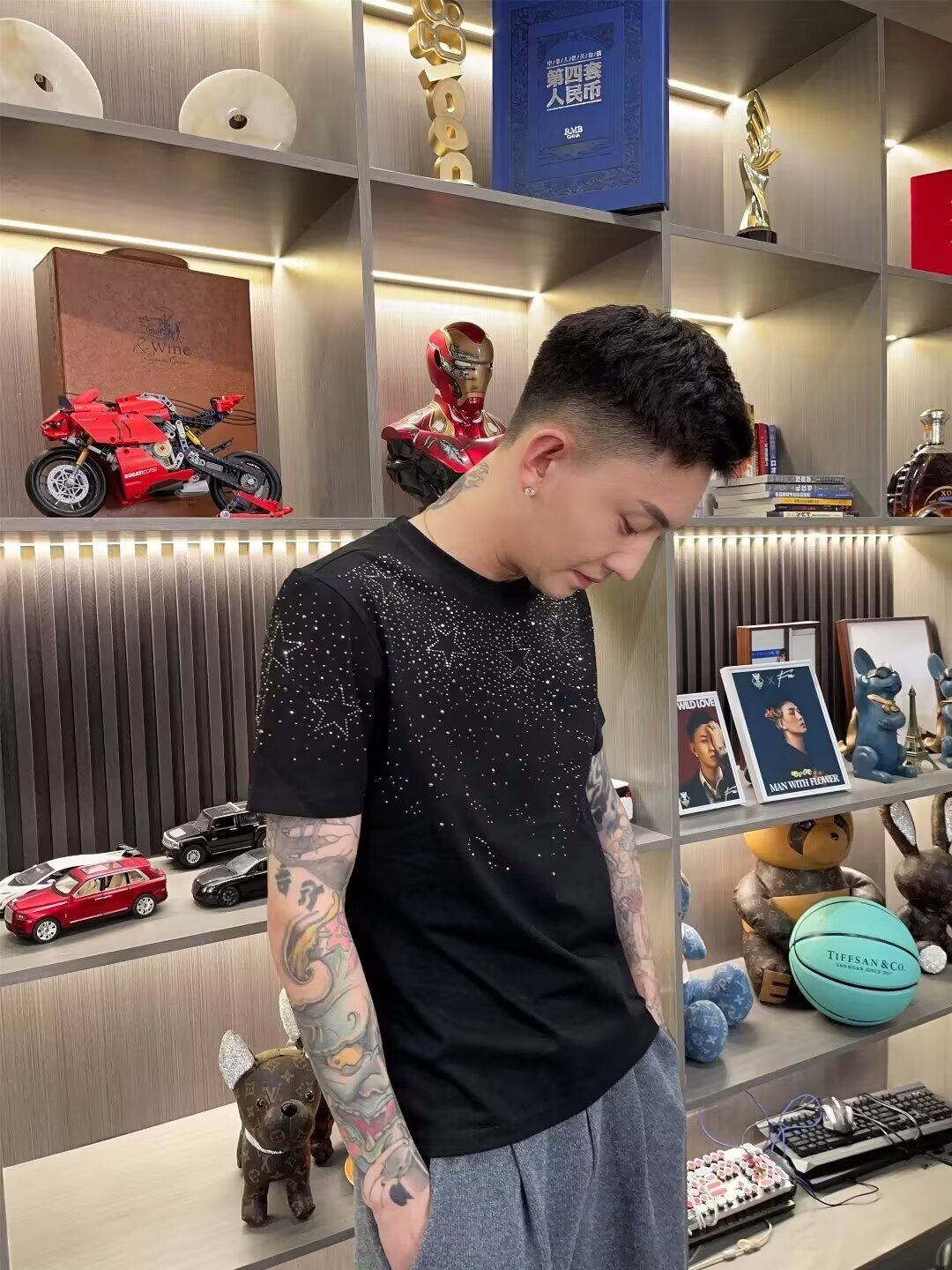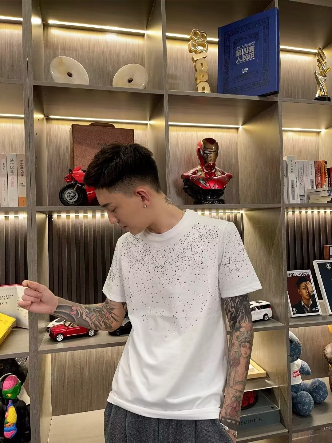 유럽 역 패션 브랜드 라이트 럭셔리 남성 티셔츠 반팔 스타 핫 다이아몬드 인터넷 연예인 핫 스타일 하이 엔드 틈새 반팔 티셔츠스토어 가기
