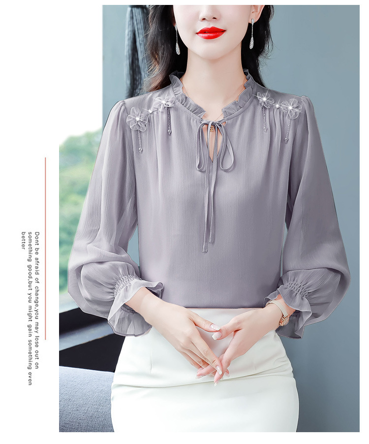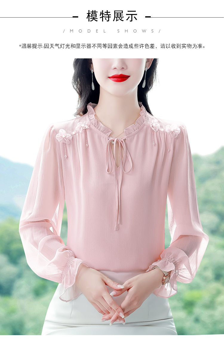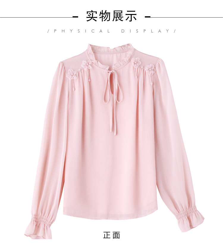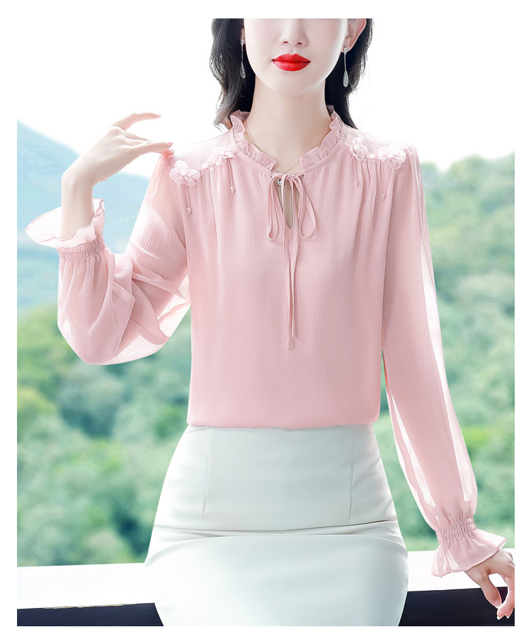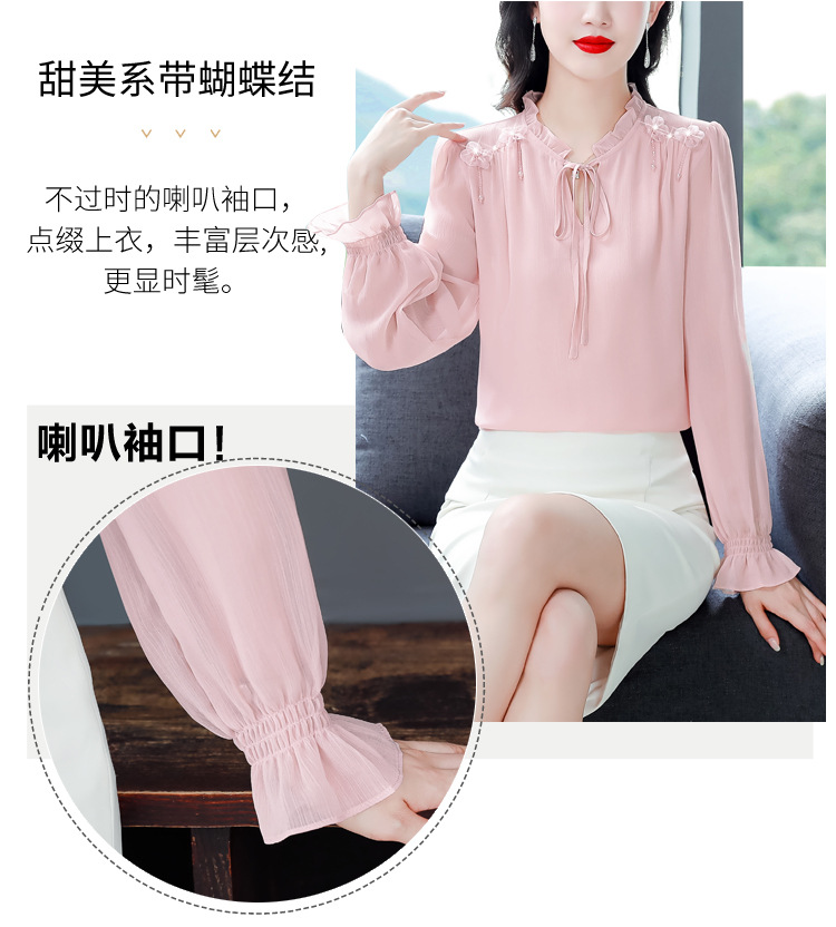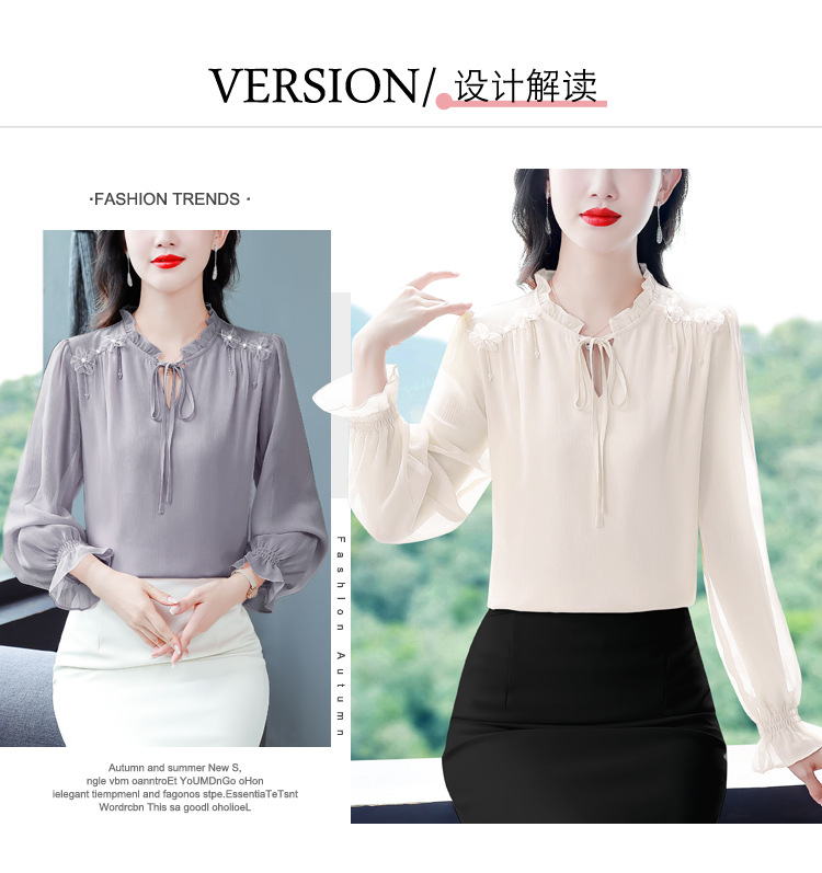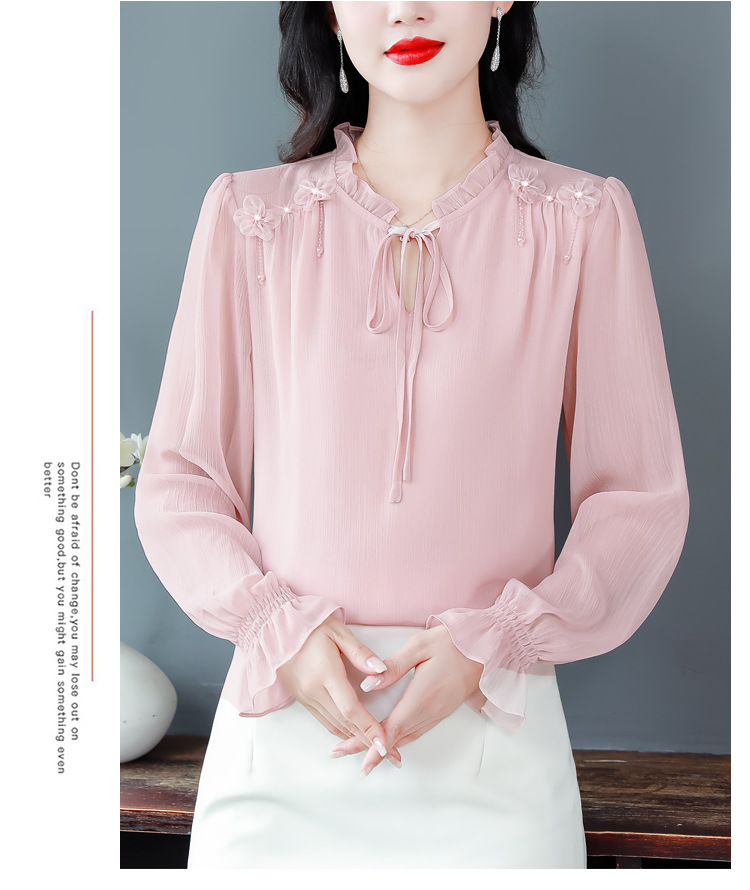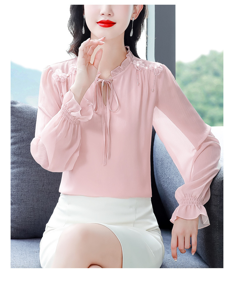 리얼 샷 2025 봄 새로운 활 칼라 긴팔 쉬폰 셔츠 여성 최고의 서양식 기본 셔츠 슬림 셔츠스토어 가기