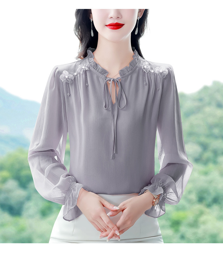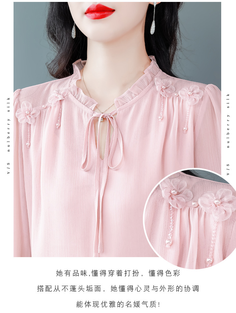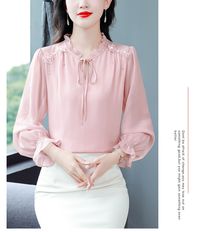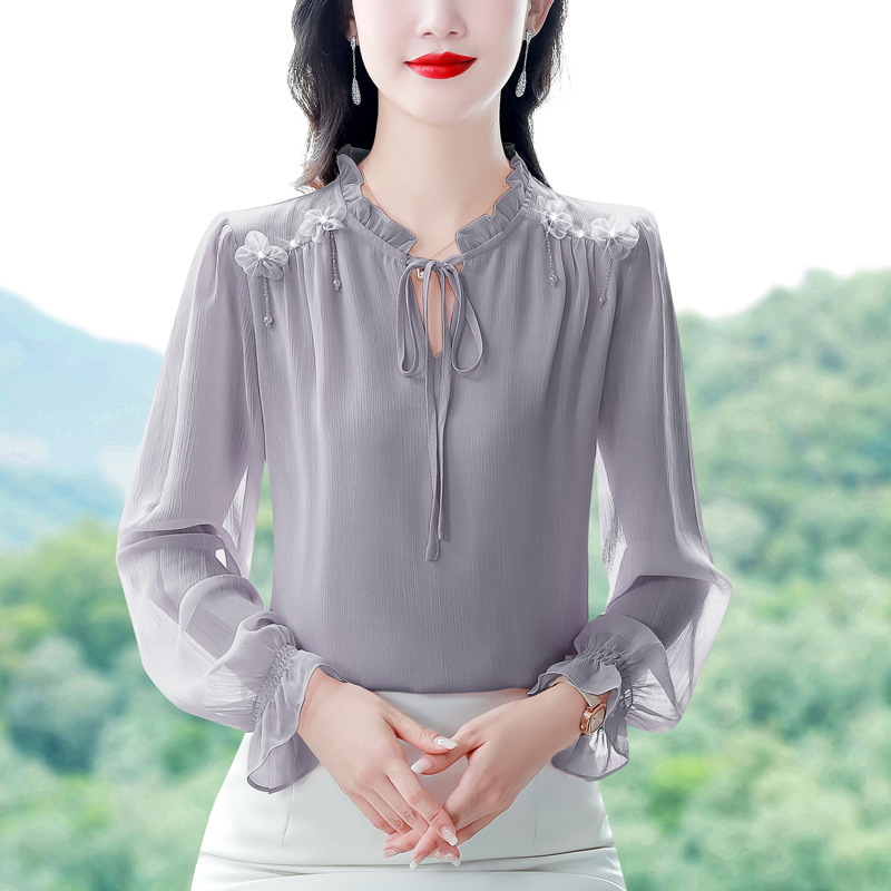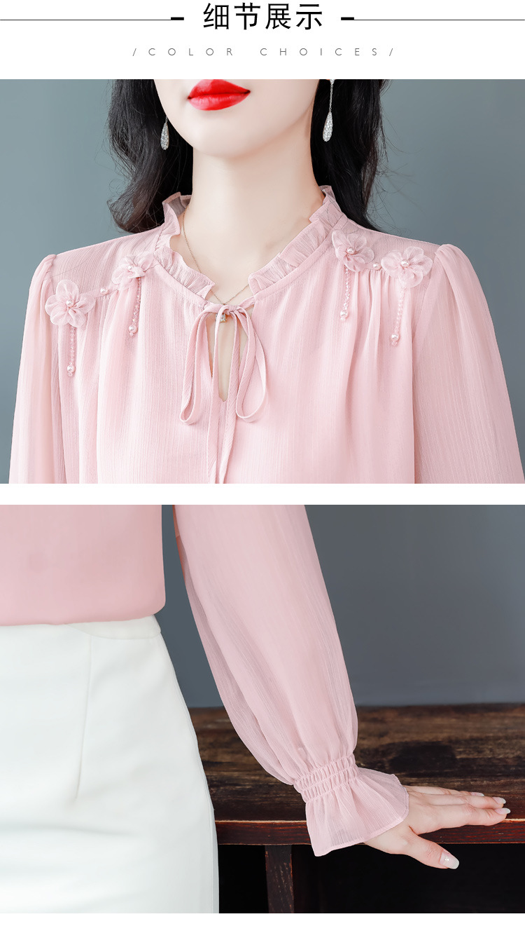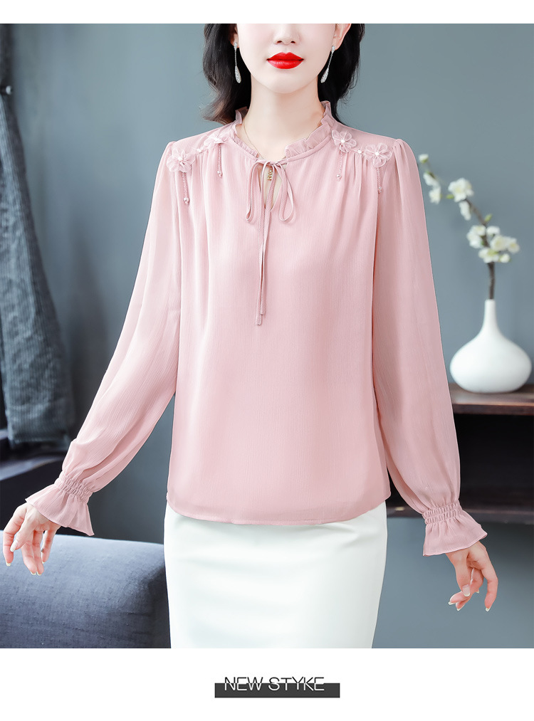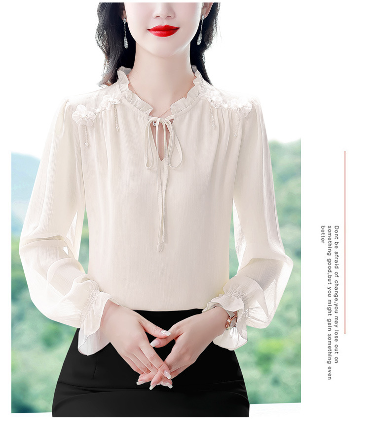 리얼 샷 2025 봄 새로운 활 칼라 긴팔 쉬폰 셔츠 여성 최고의 서양식 기본 셔츠 슬림 셔츠스토어 가기