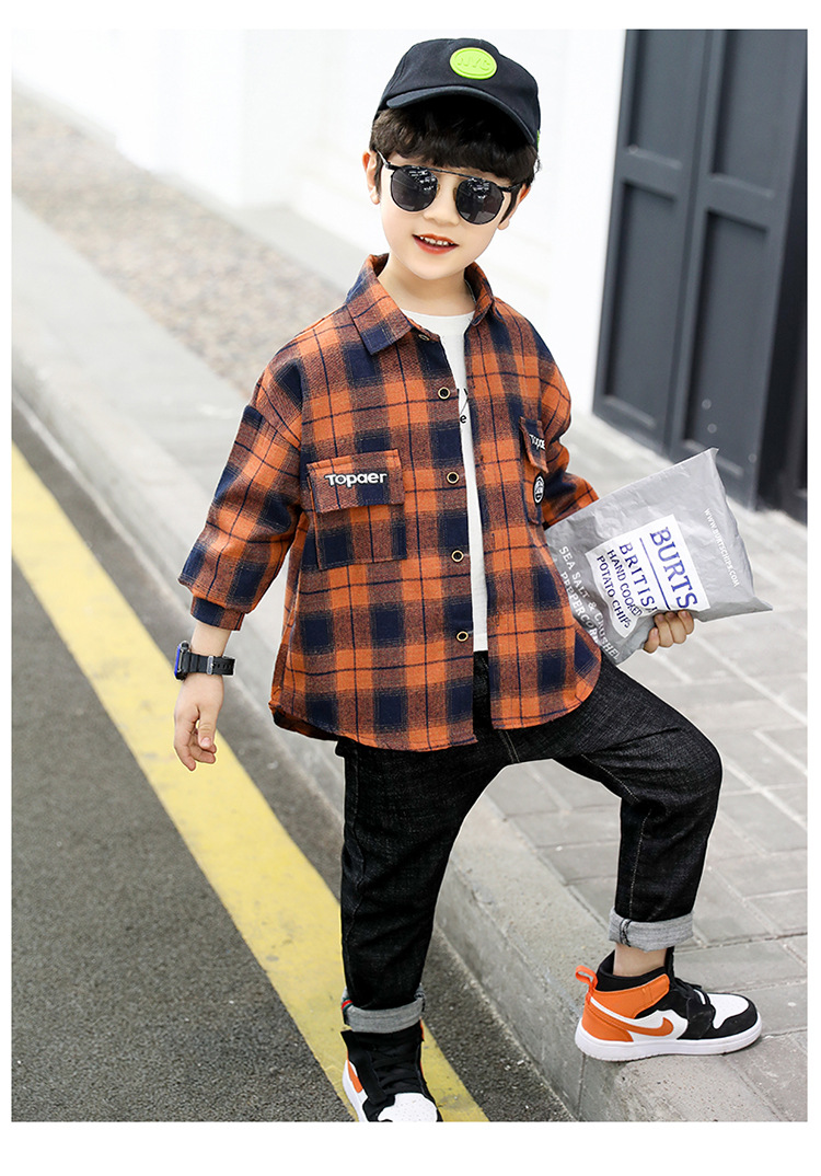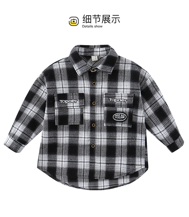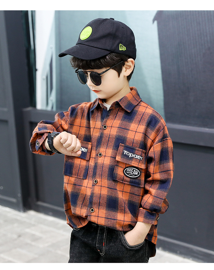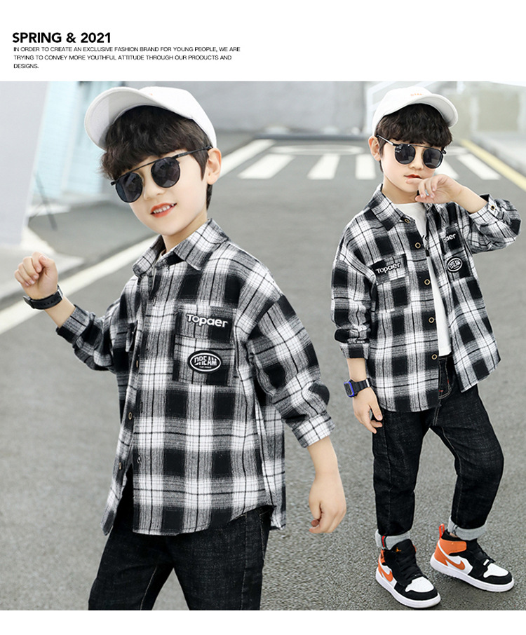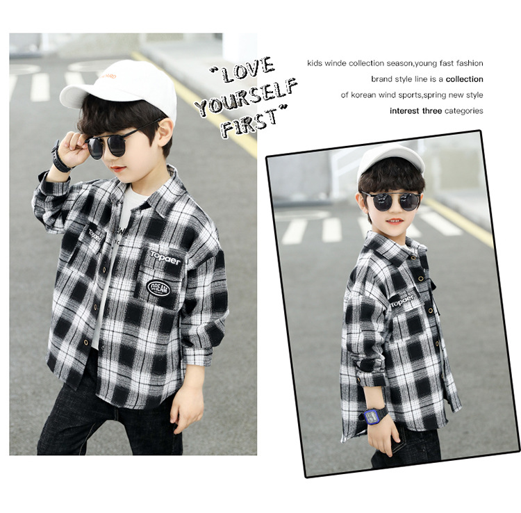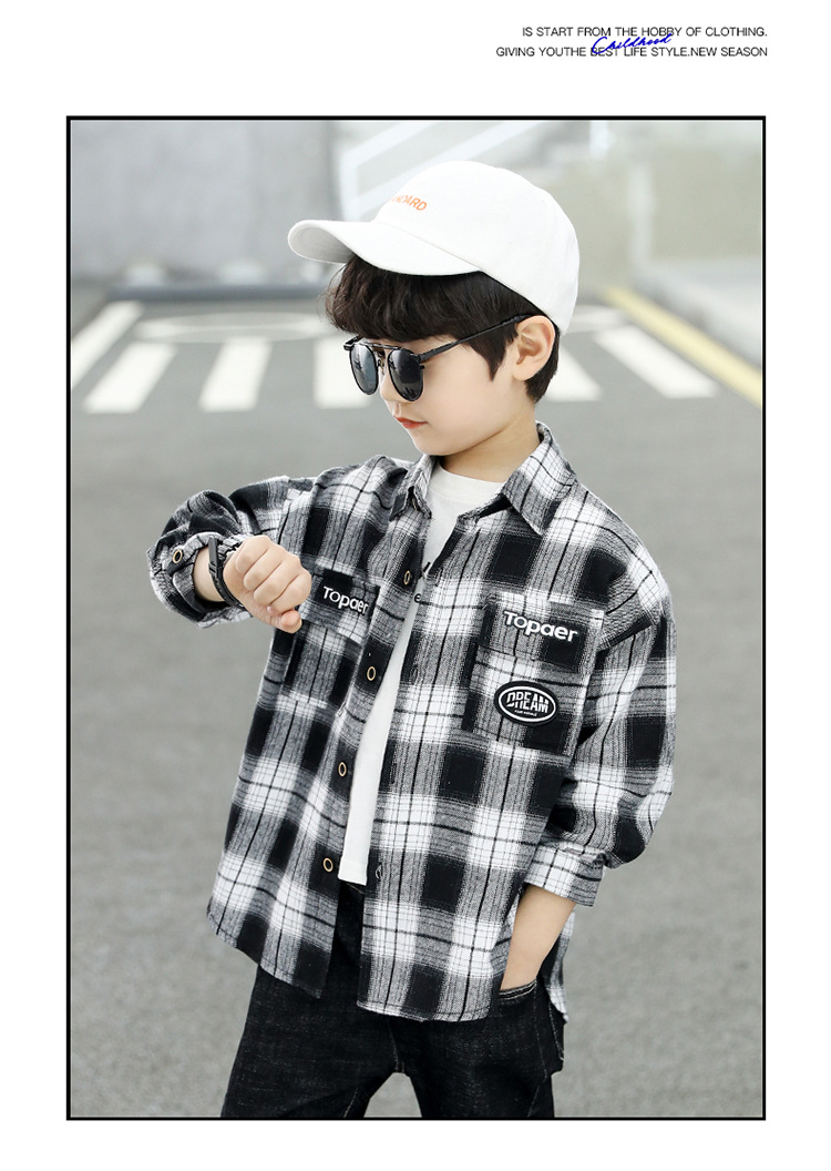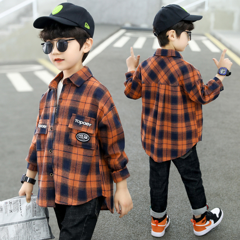 소년 셔츠 봄과 가을 어린이 봄 2025 가을 새 소년의 면 격자 무늬 셔츠 긴 소매 트렌디스토어 가기