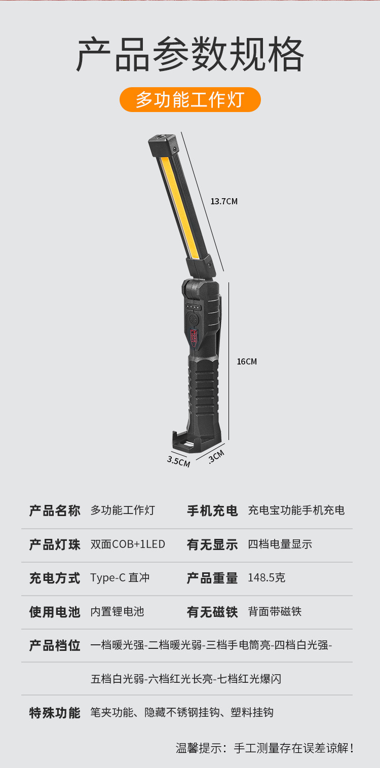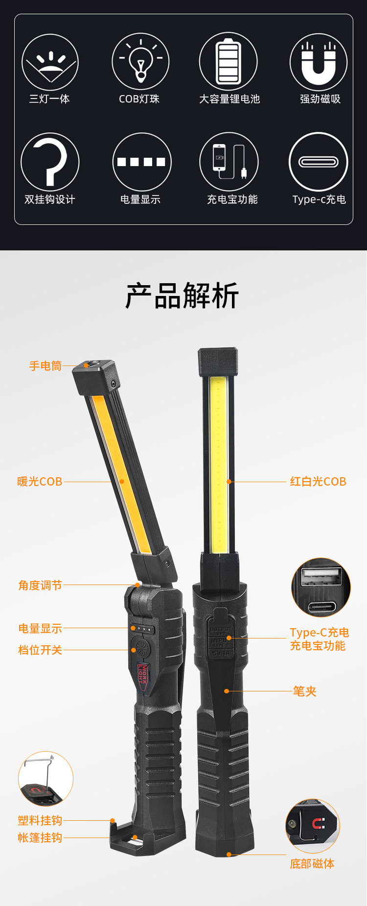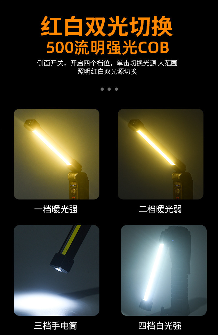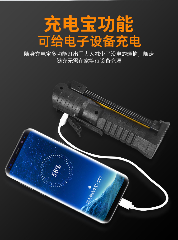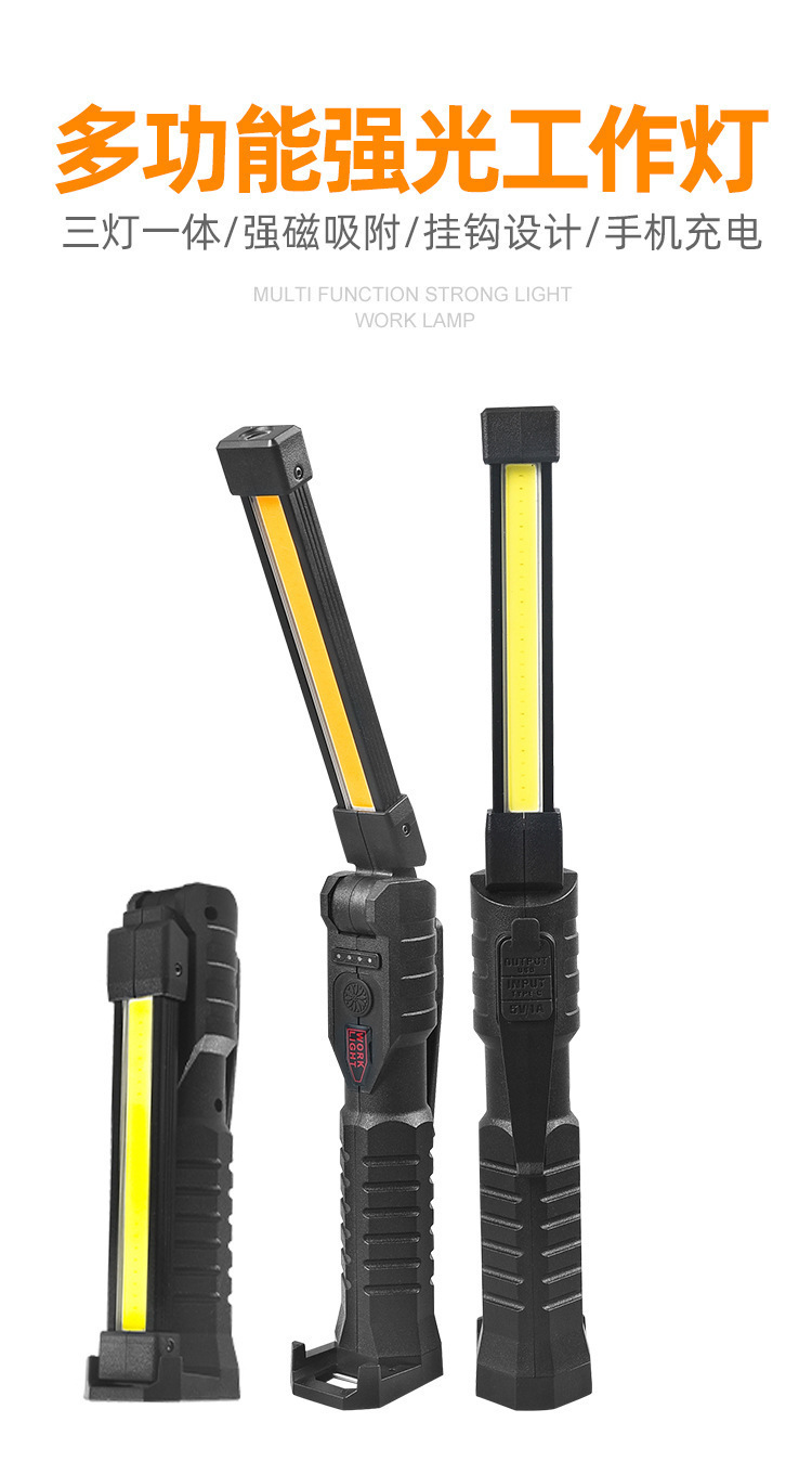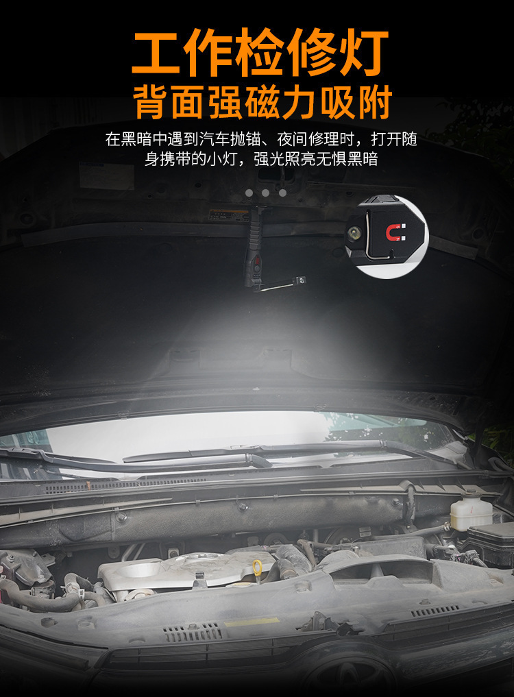 다기능 휴대용 작업 램프 강한 손전등 슈퍼 밝은 장거리 강한 자기 흡입 비상 조명 자동차 유지 보수 램프