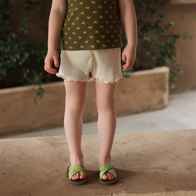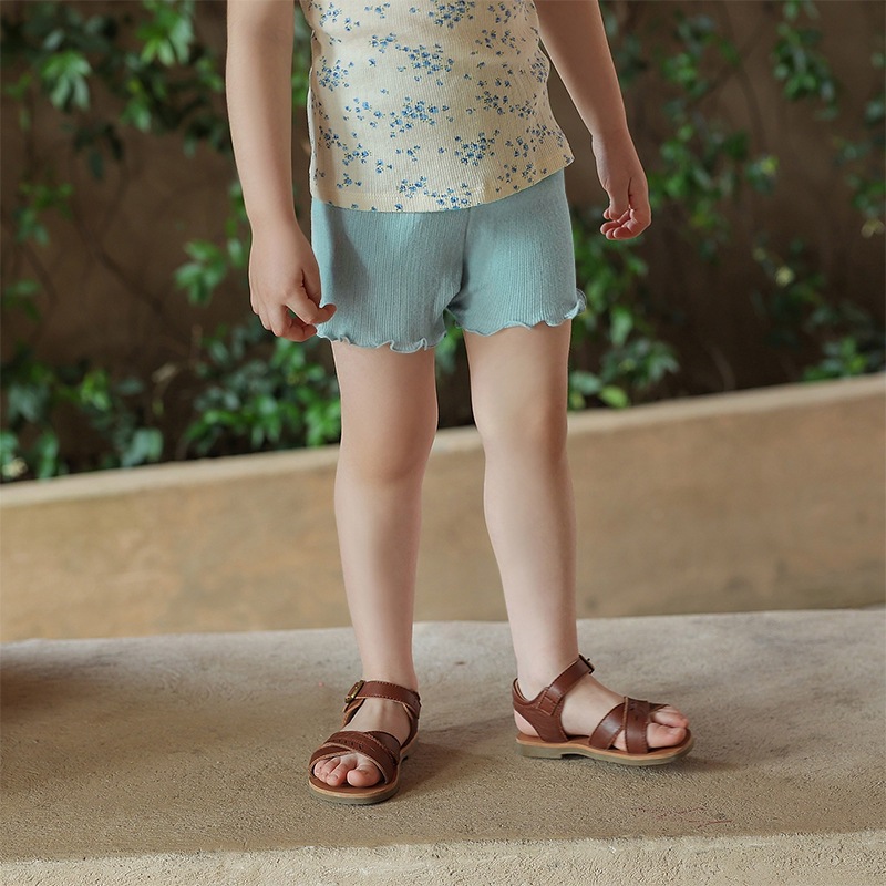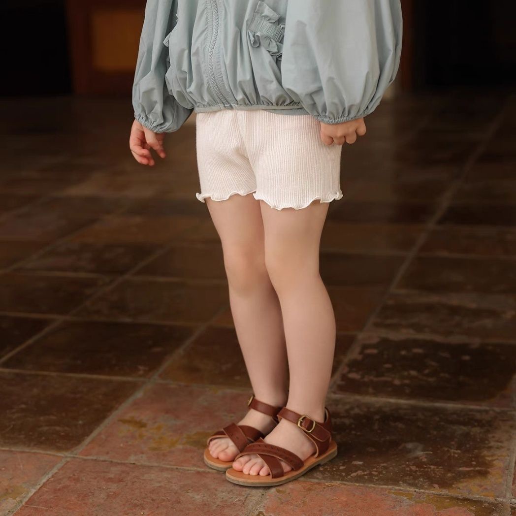 여아 여름 하의 반바지, 유아용 패셔너블한 아동용 트렌디 브랜드 한국 스타일 단색 아이스 실크 귀단 안전바지스토어 가기