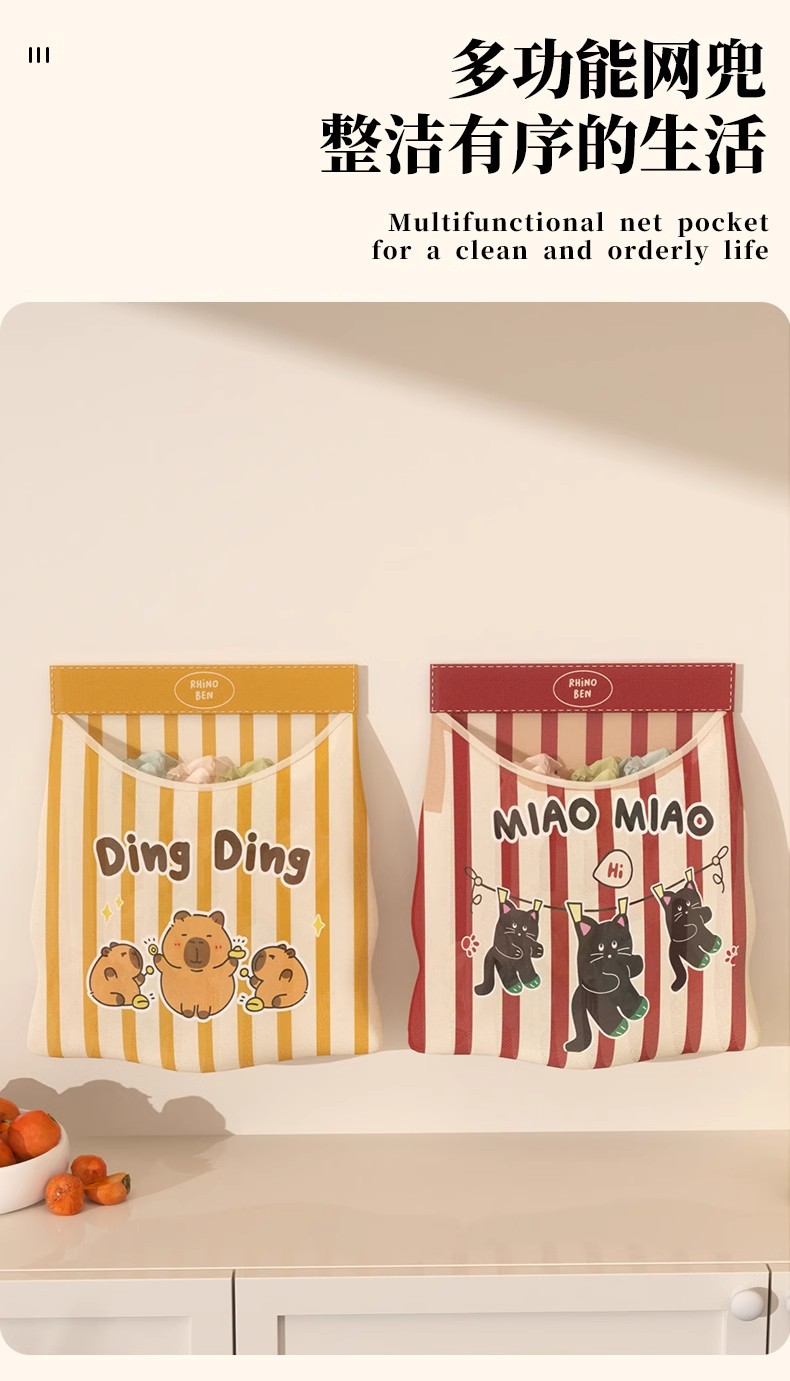 주방 다기능 저장 그물 가방 벨크로 그물 가방 캐비닛 문 벽걸이 대용량 저장 가방 보관 용 가방