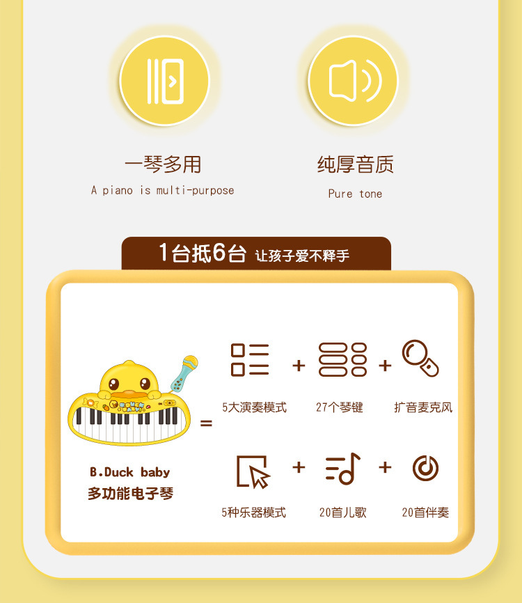 B. 오리 작은 노란색 오리 27 마이크 초보자 음악 교육 대화 형 장난감을 가진 주요 어린이 전자 기관