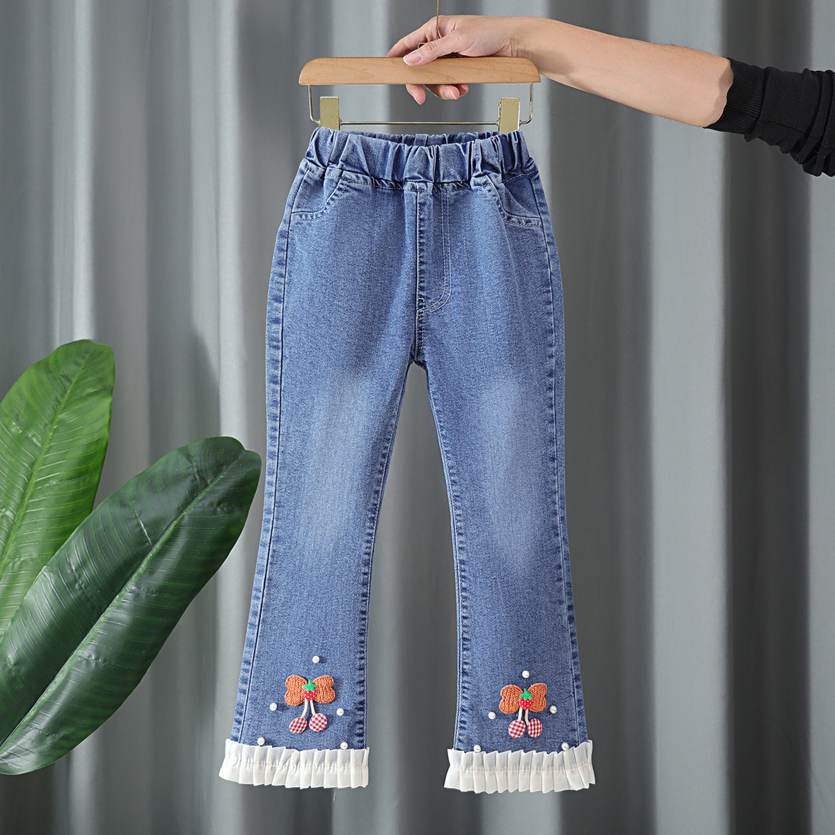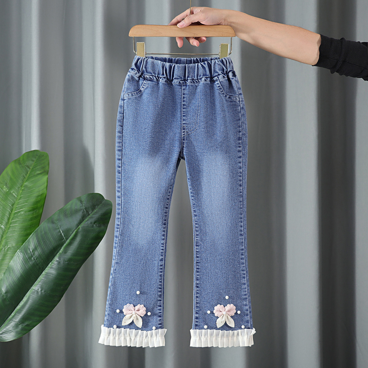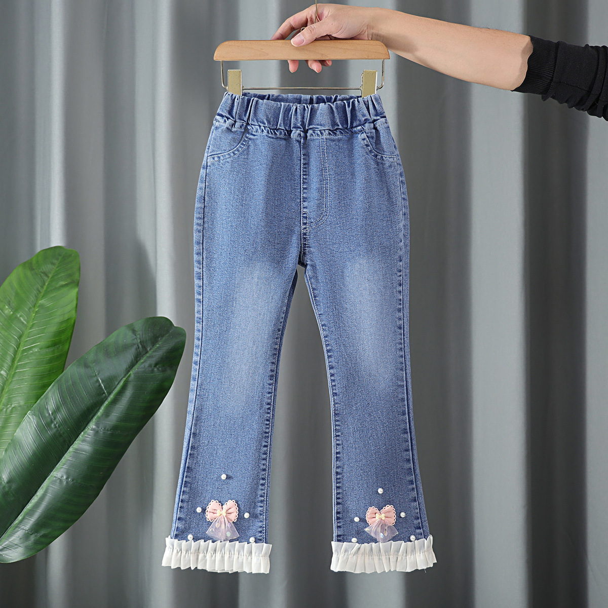 아동복 여아 청바지 플레어 팬츠 2025 봄, 가을 새로운 스타일 외국 스타일 중대형 아동 봄, 가을 슬림 아동 바지스토어 가기
