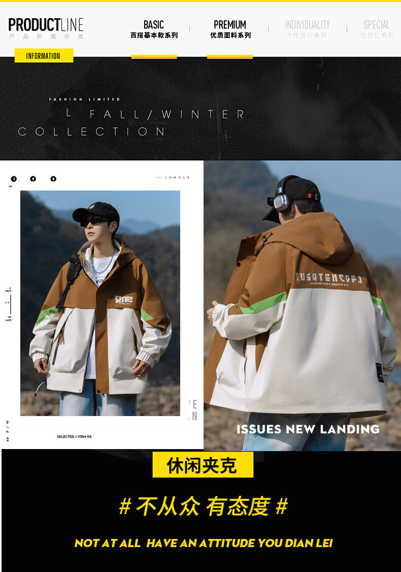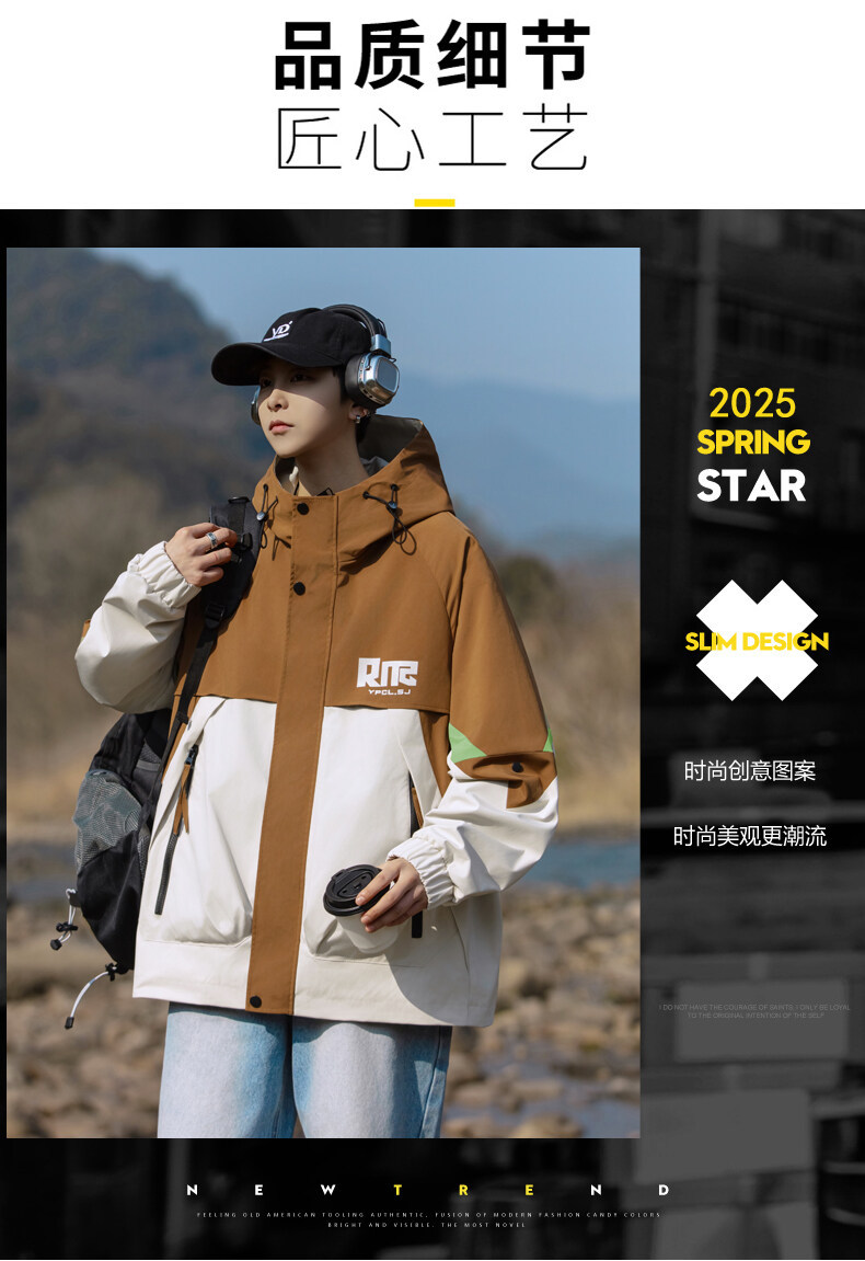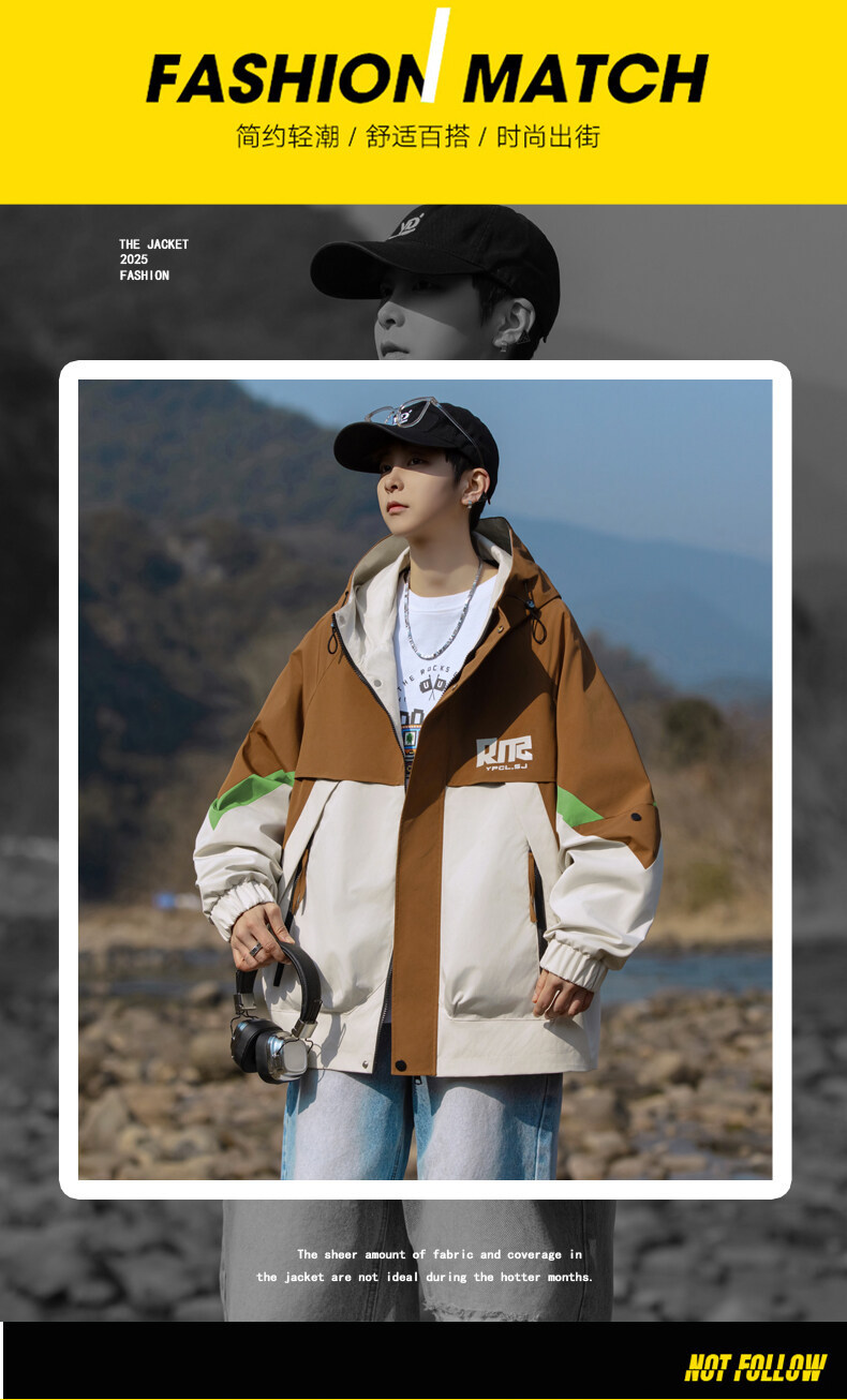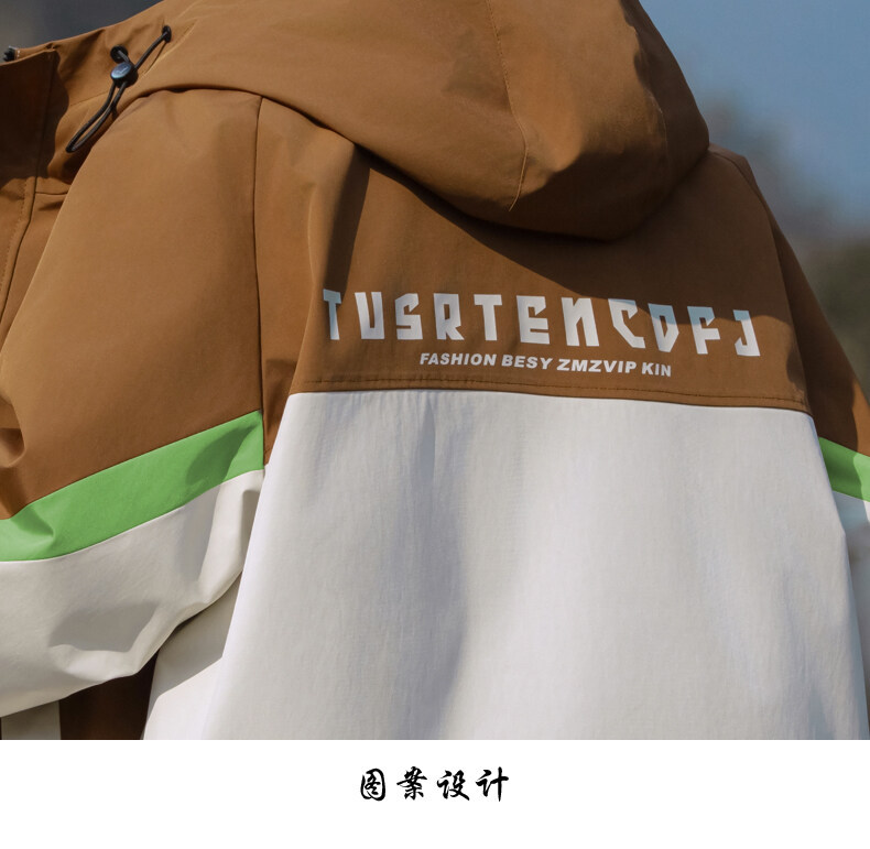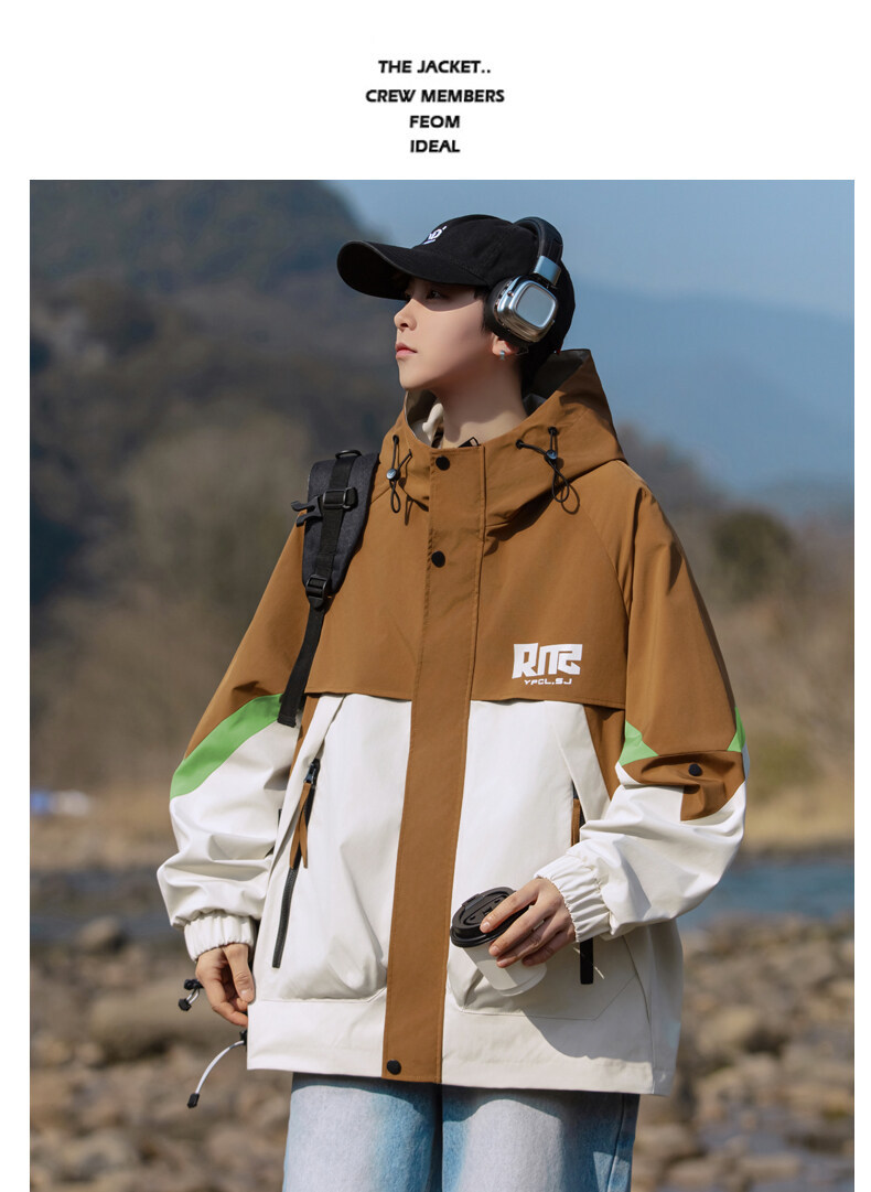 야외 등산 재킷 남성 봄과 가을 컬러 차단 후드 작업 재킷 남성 충전 옷 느슨한 캐주얼 어퍼 옷