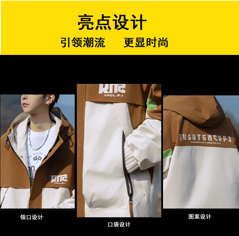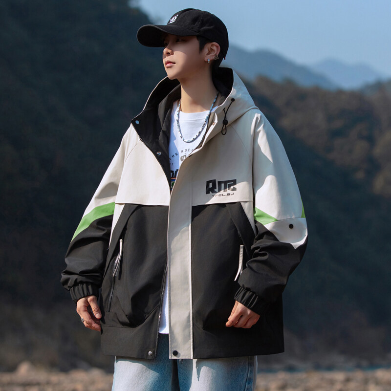 야외 등산 재킷 남성 봄과 가을 컬러 차단 후드 작업 재킷 남성 충전 옷 느슨한 캐주얼 어퍼 옷스토어 가기