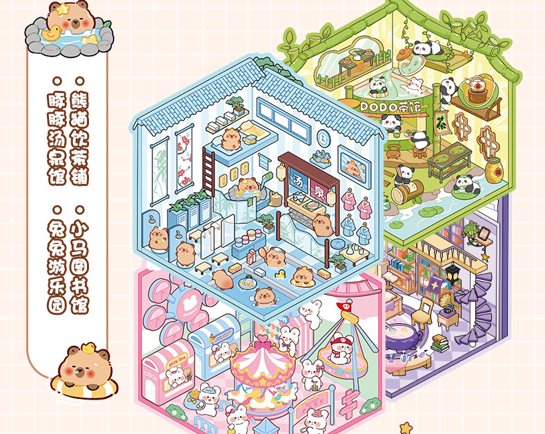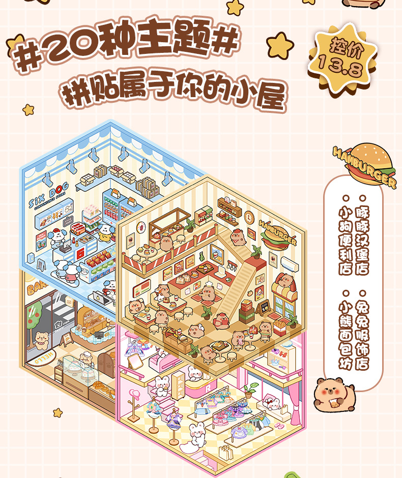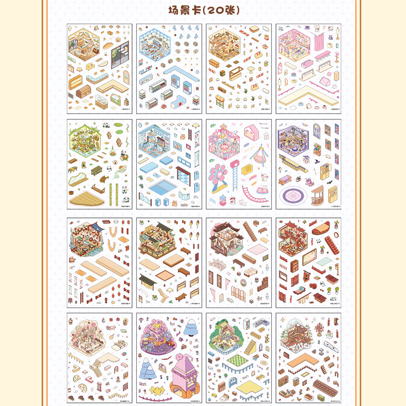 조경 스티커 컬렉션이 3D 3 차원 오두막 마이크로 스케일 장면 스티커 어린이 DIY 손 계정 교육 장난감 스티커스토어 가기