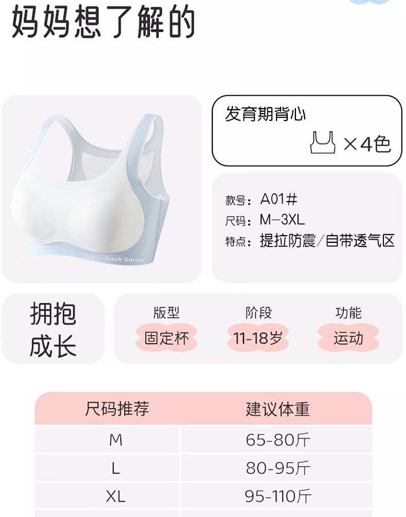 여자 스포츠 속옷 발달 고등학생 브라 고정 컵 중학생 여자 여자 조끼스토어 가기