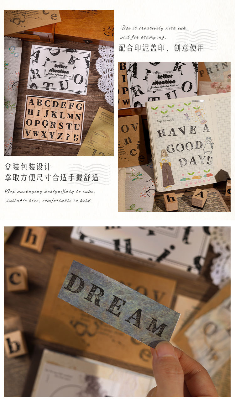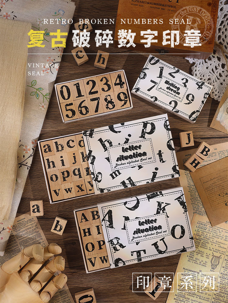 깨진 씰 창조적 인 문구 빈티지 케이스 편지 고무 나무 박스형 DIY 장식 씰 도매