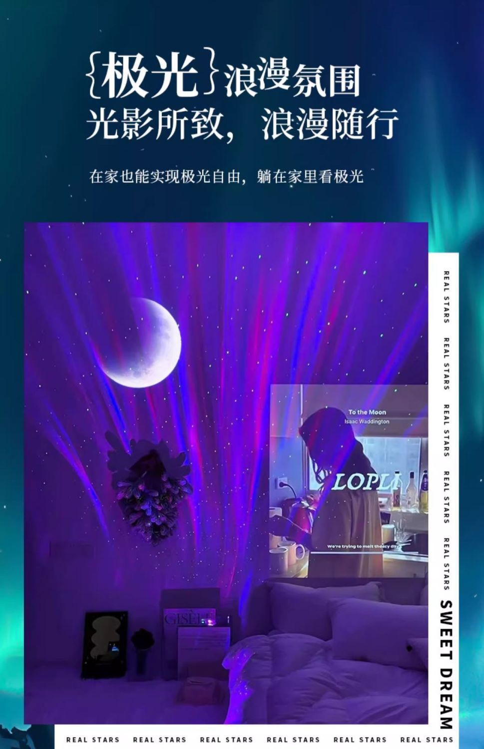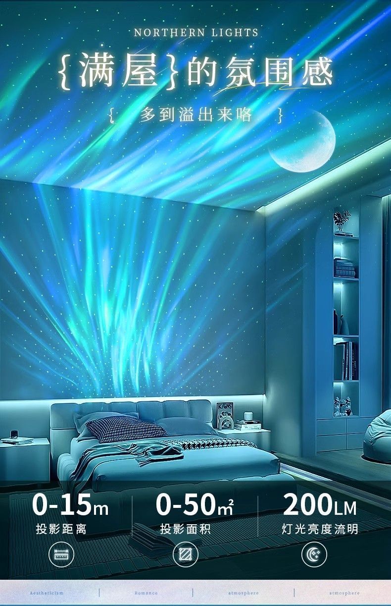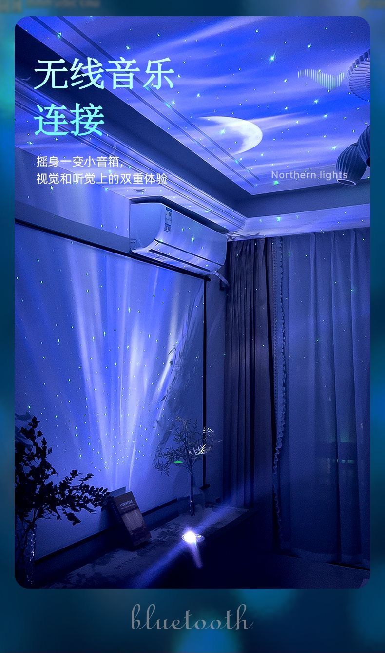 오로라 별이 빛나는 하늘 프로젝션 램프 블루투스 오디오 분위기 나이트 라이트 커플 침실 USB 로맨틱 선물 별이 빛나는 하늘 빛