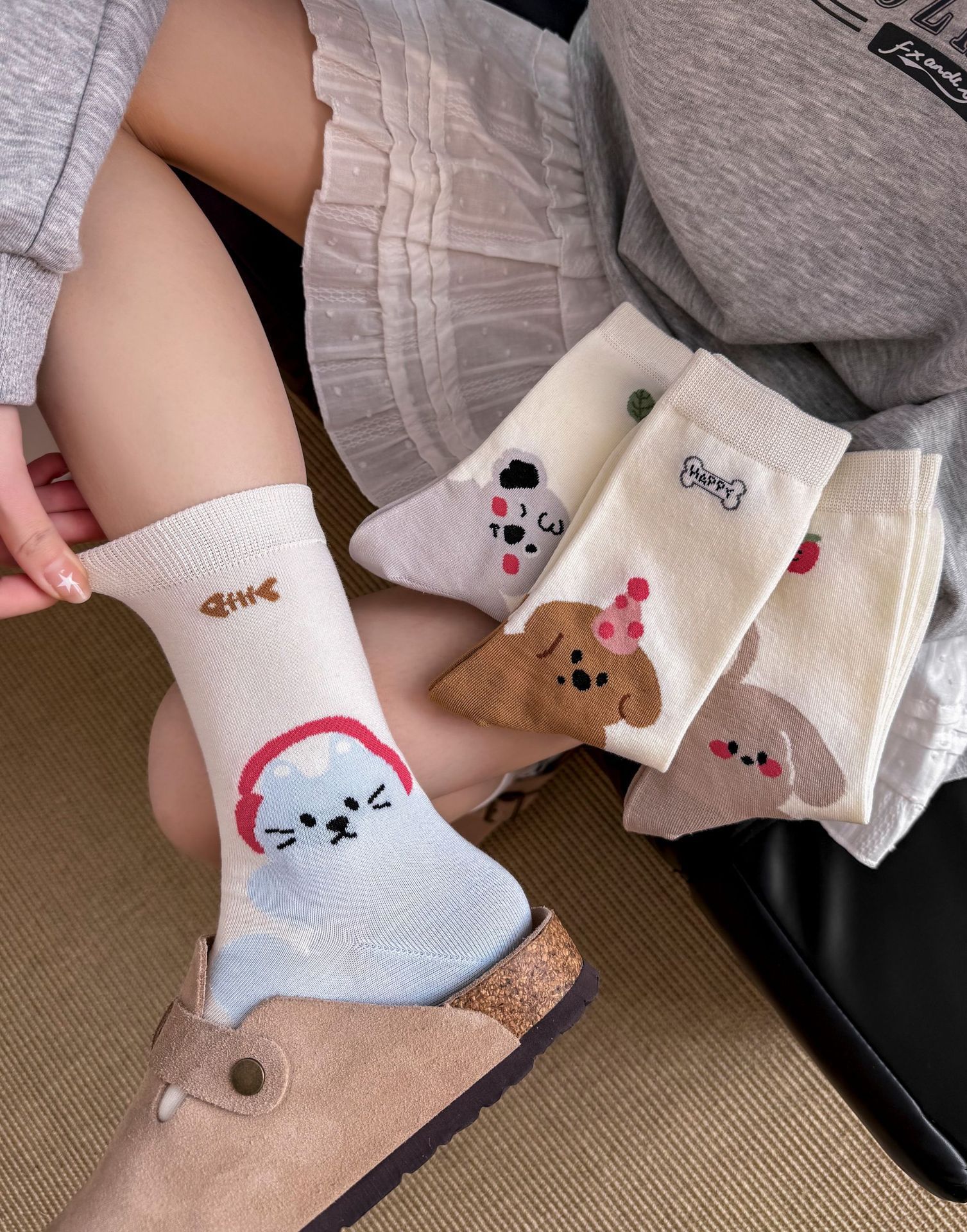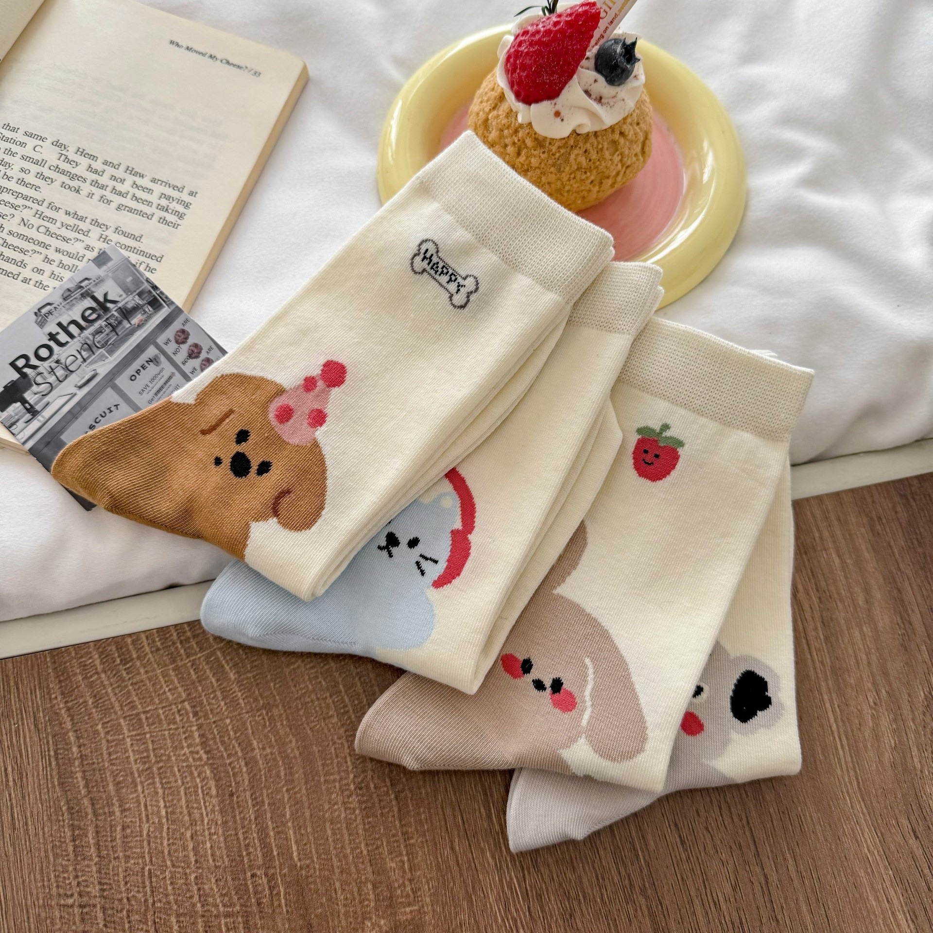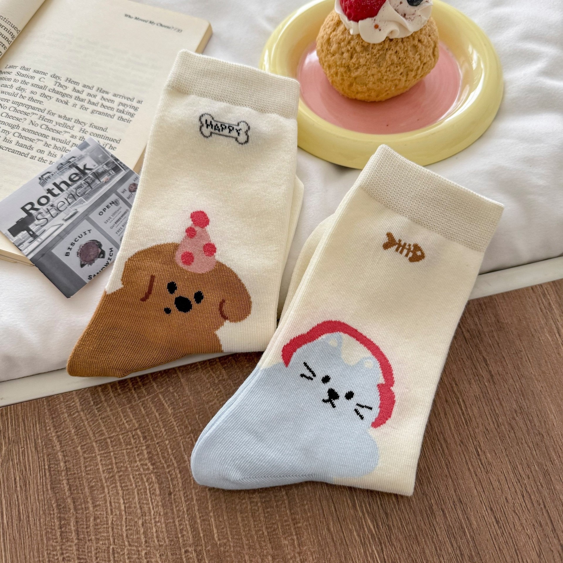 만화 강아지 양말 여성의 봄과 여름 귀여운 올 매치 동물 그림 여름 학생 한국식 뼈없는 양말스토어 가기