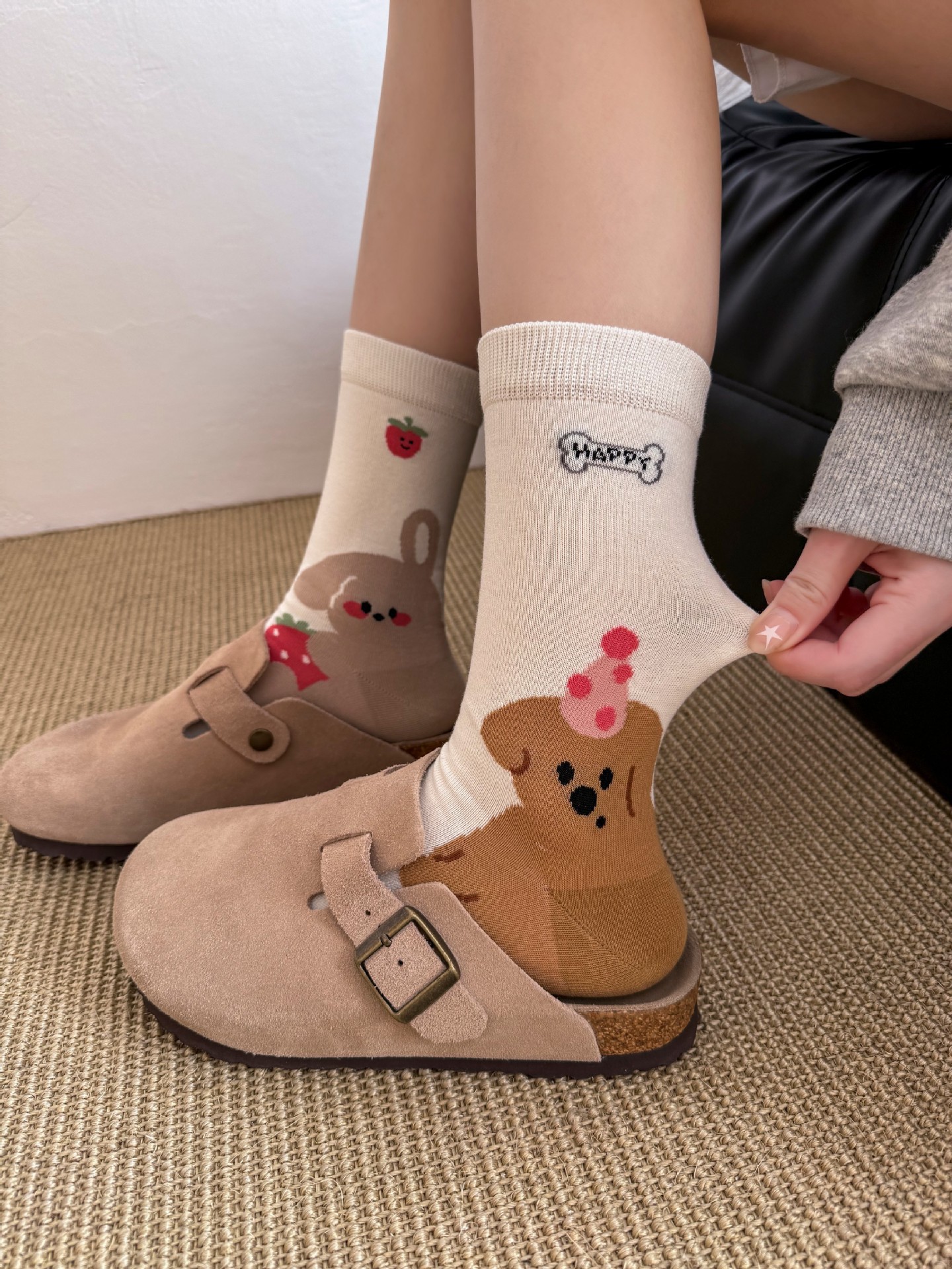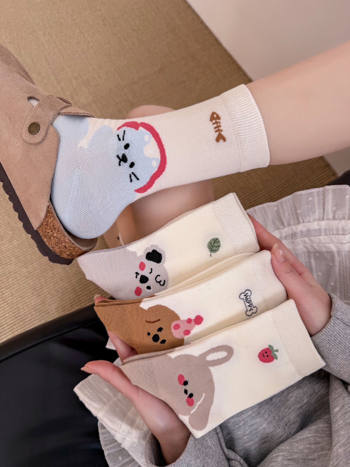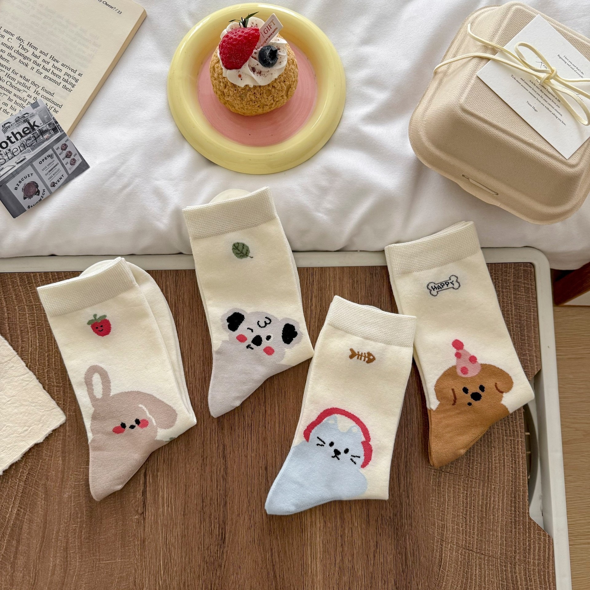 만화 강아지 양말 여성의 봄과 여름 귀여운 올 매치 동물 그림 여름 학생 한국식 뼈없는 양말스토어 가기