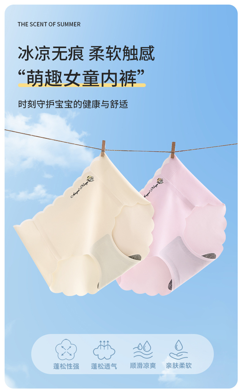 아이스실크 여아 속옷 원활한 발달기간 리틀여고 큰 어린이 삼각반바지 학생 어린이 얇은 여름