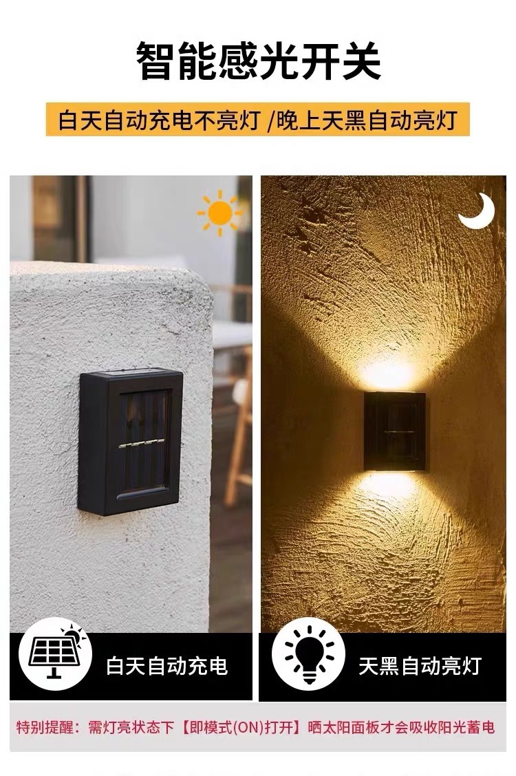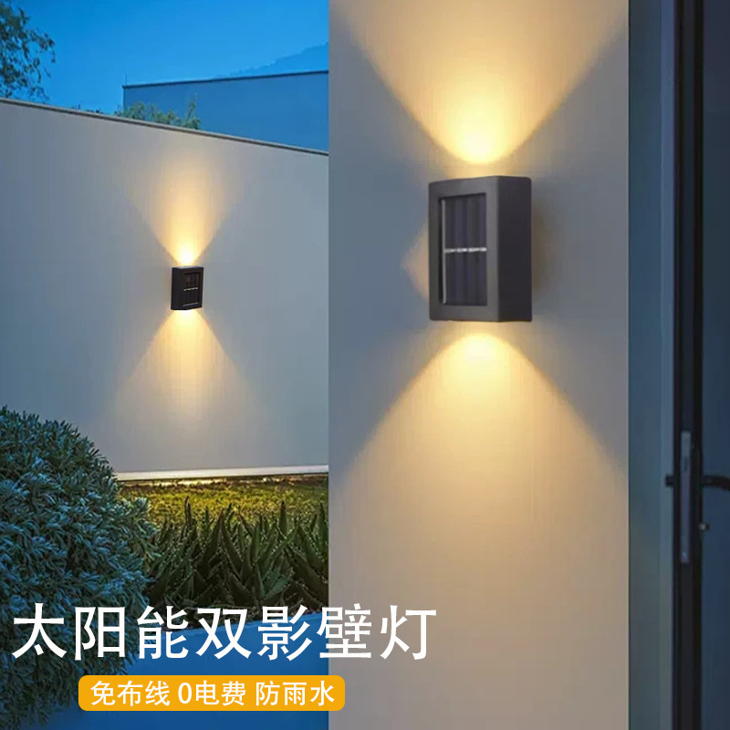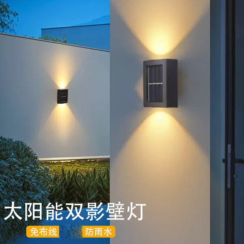 태양 벽 램프 자동 유도 펀치없는 광장 정원 장식 램프 풍경 램프 양면에 두 배 그림자 방수 벽 램프