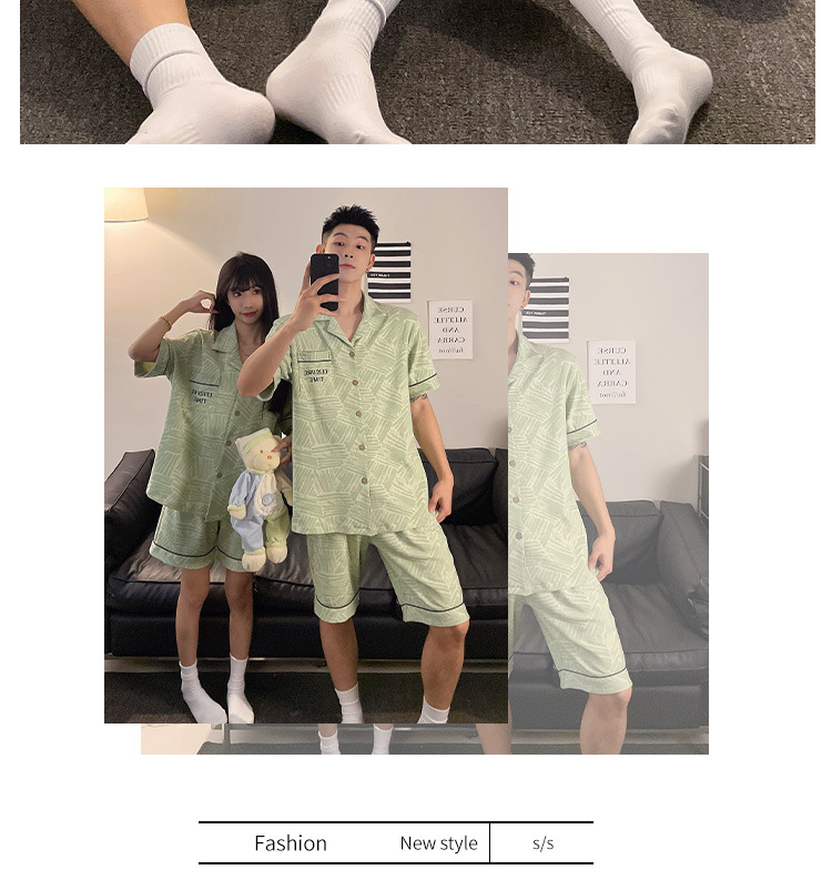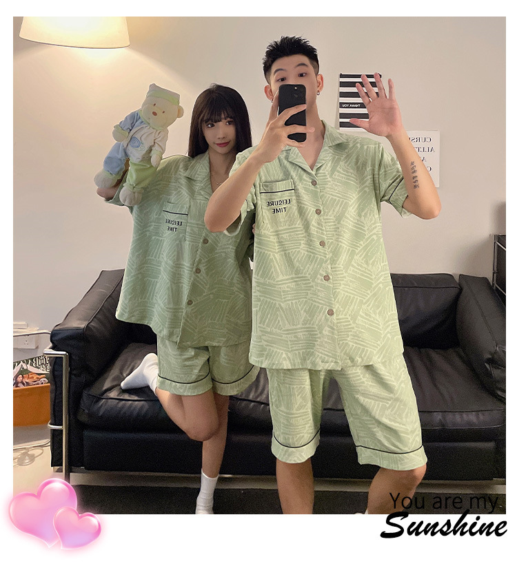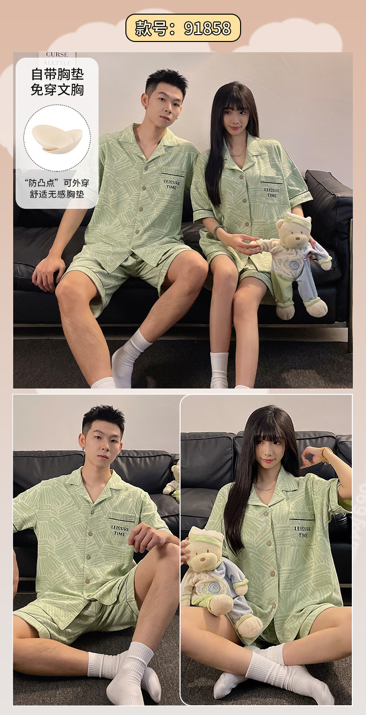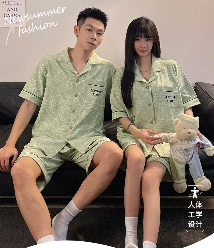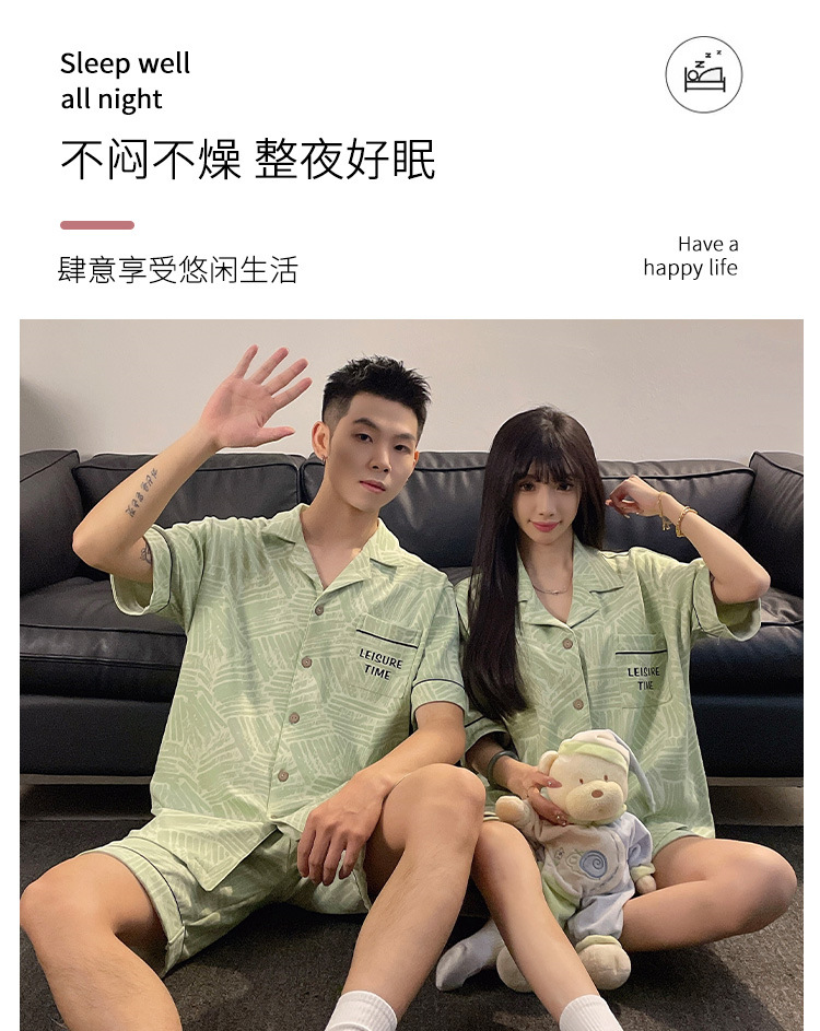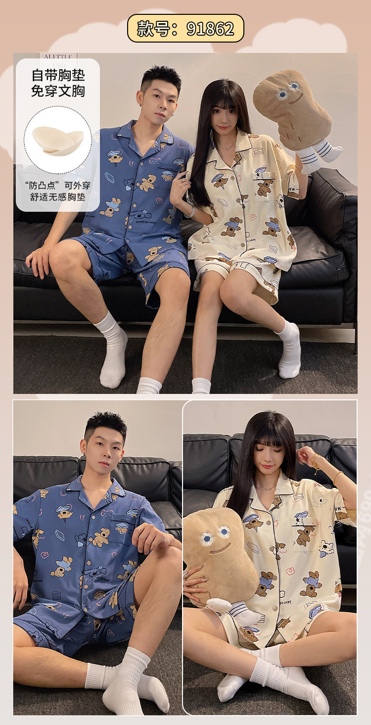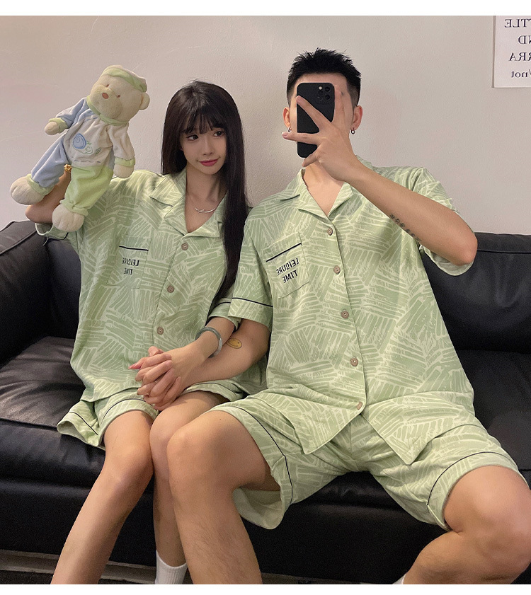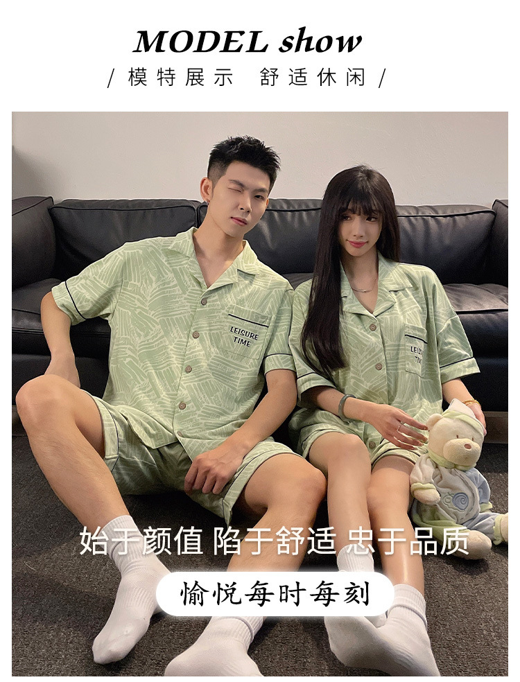 커플 잠옷 여름 반팔 반바지 2026 신상 여성용 귀여운 남성용 카디건 캐주얼 홈웨어스토어 가기