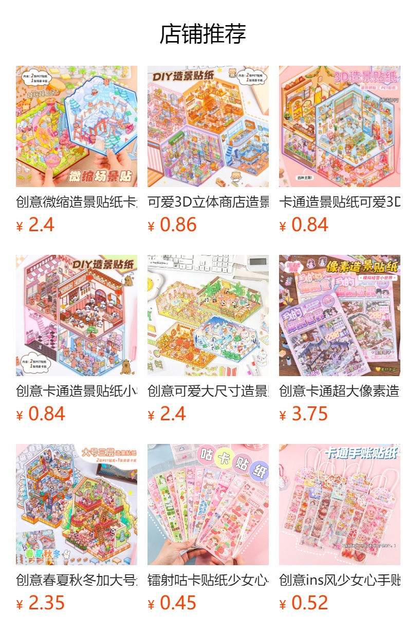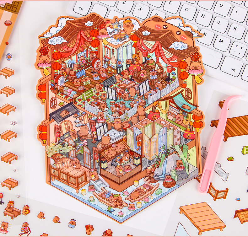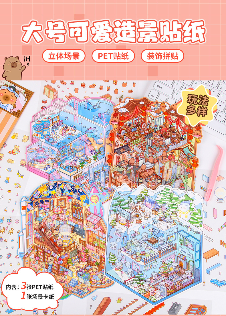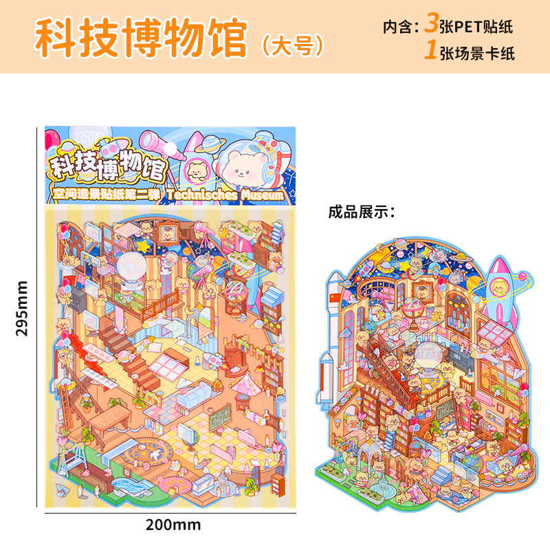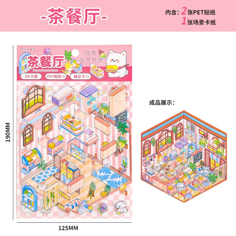 창조적 인 귀여운 만화 슈퍼 대형 골동품 풍경 스티커 3D 스테레오 마이크로 장면 콜라주 감압 DIY 스티커스토어 가기