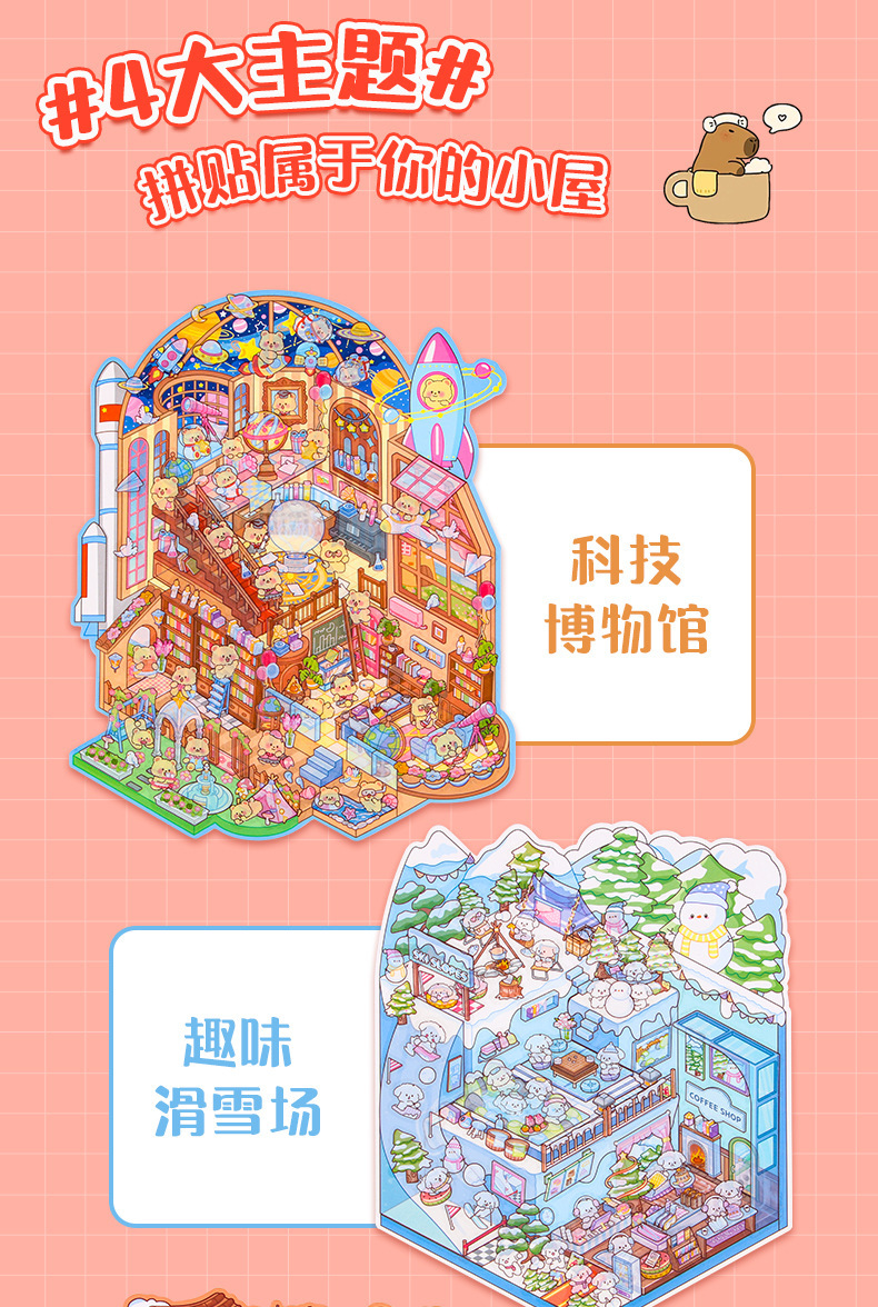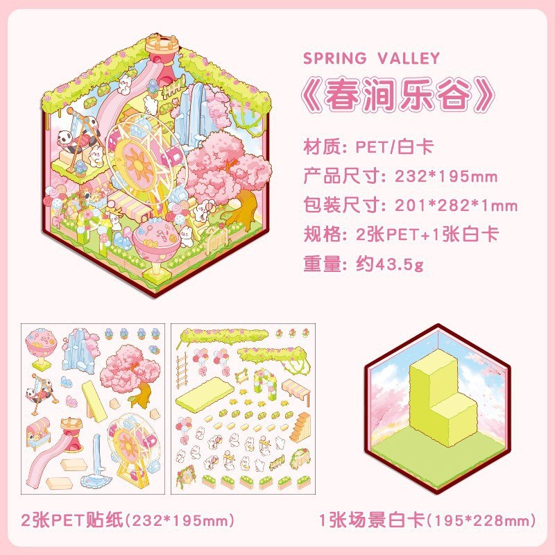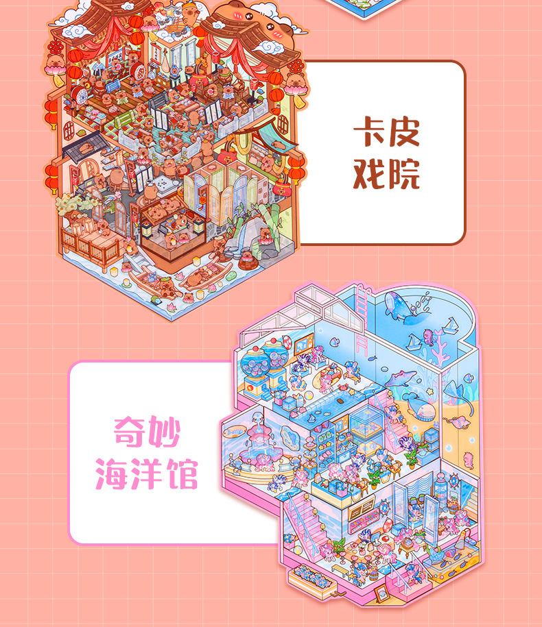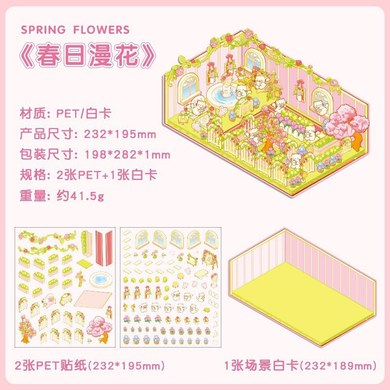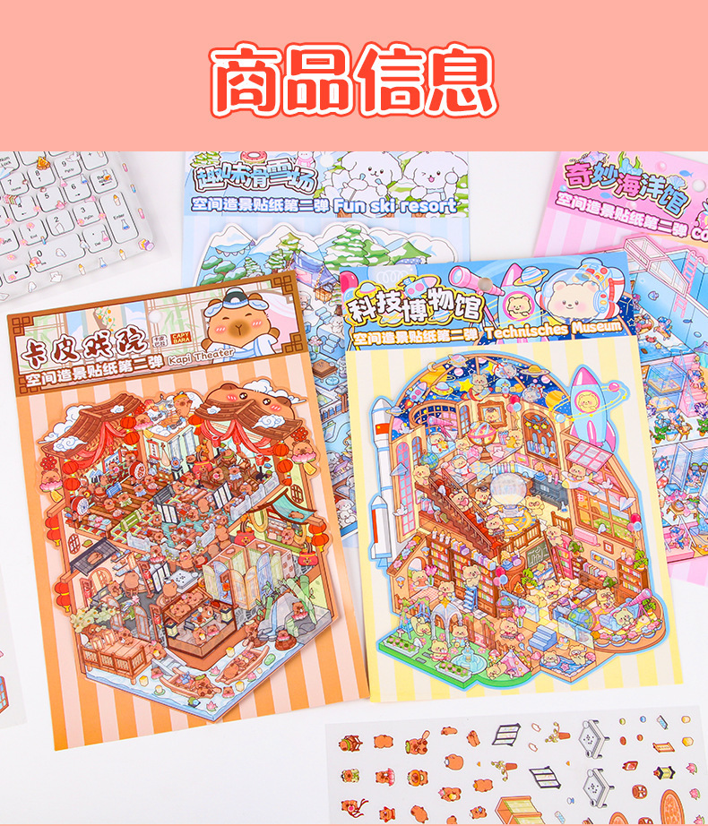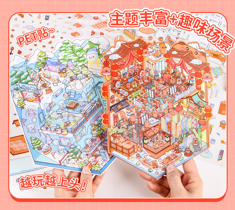 창조적 인 귀여운 만화 슈퍼 대형 골동품 풍경 스티커 3D 스테레오 마이크로 장면 콜라주 감압 DIY 스티커스토어 가기