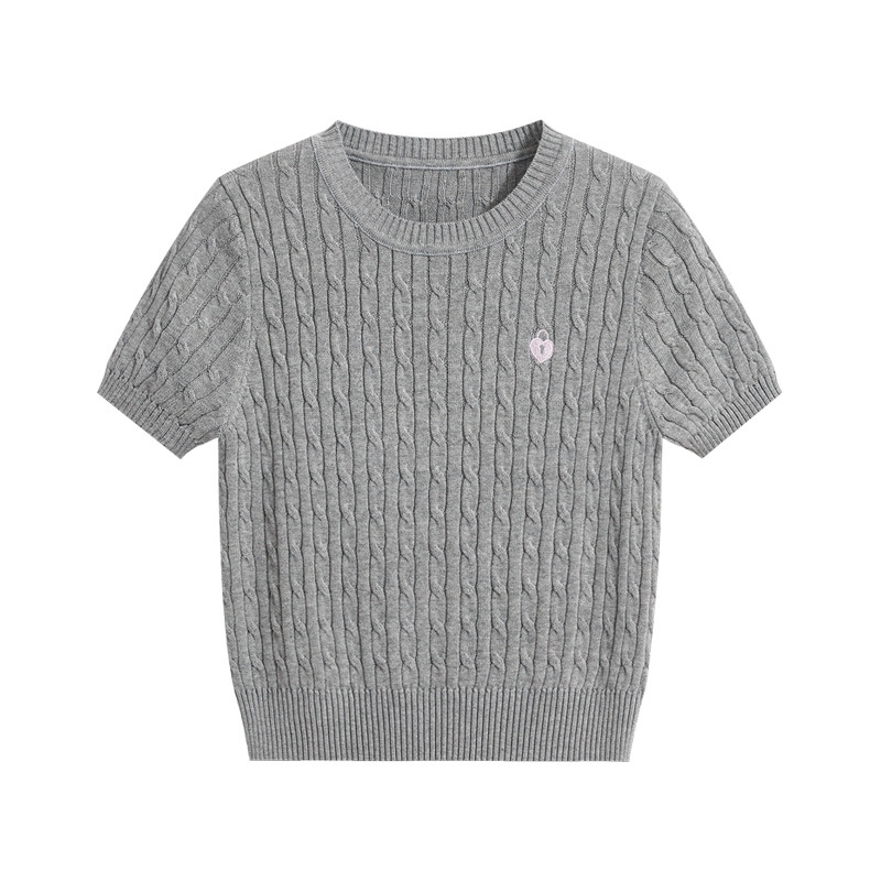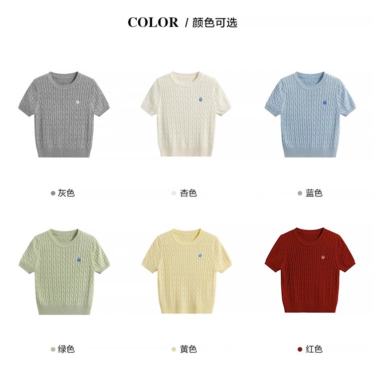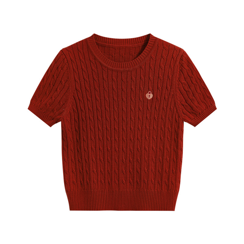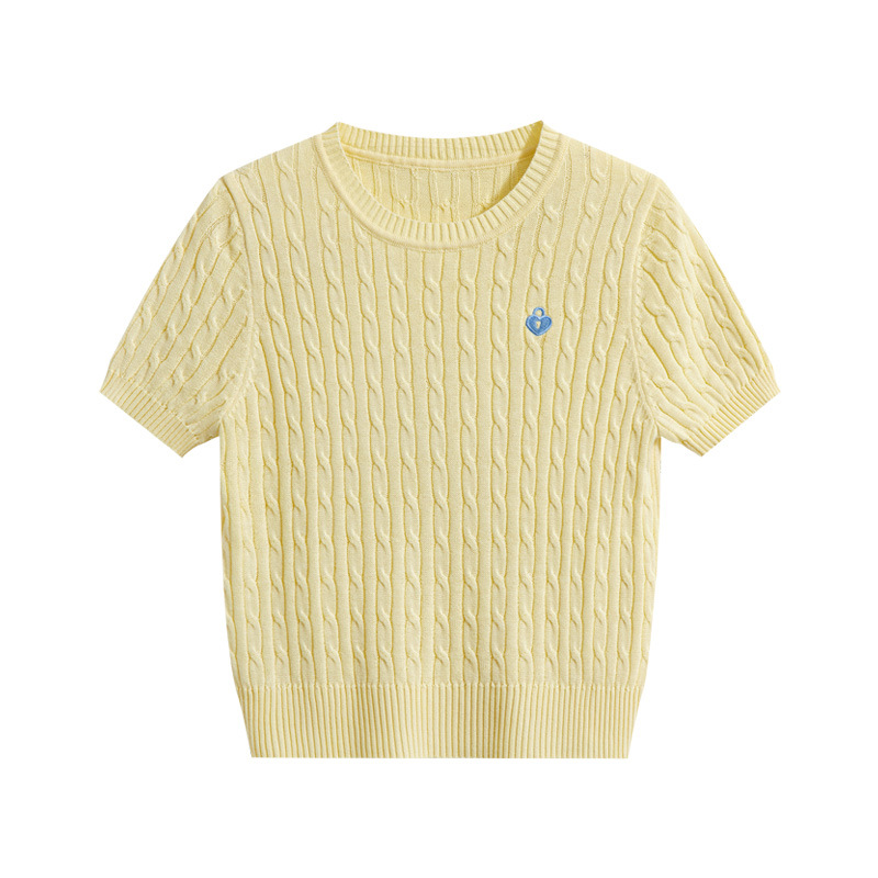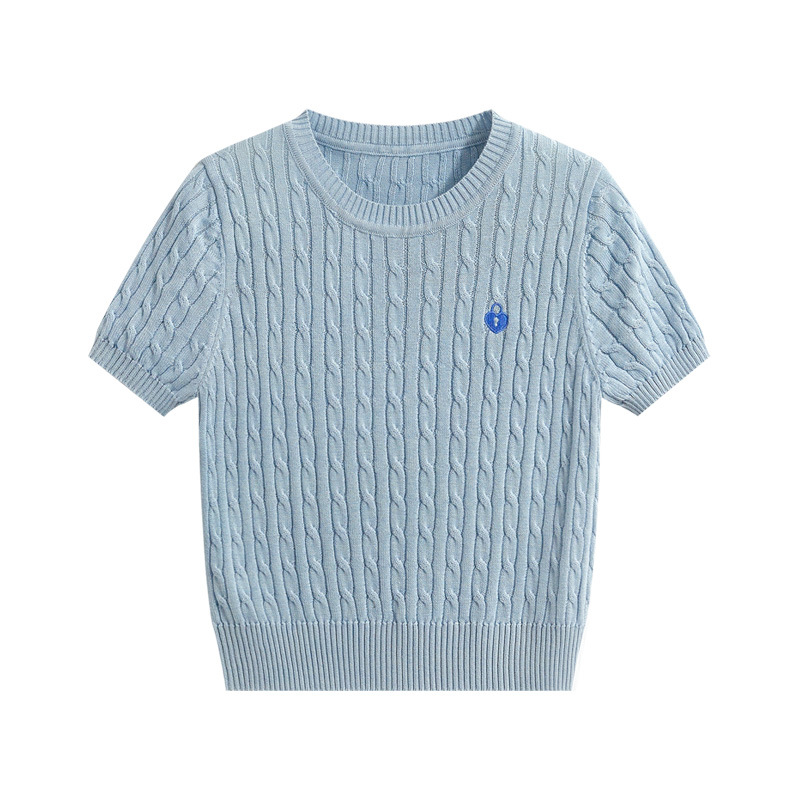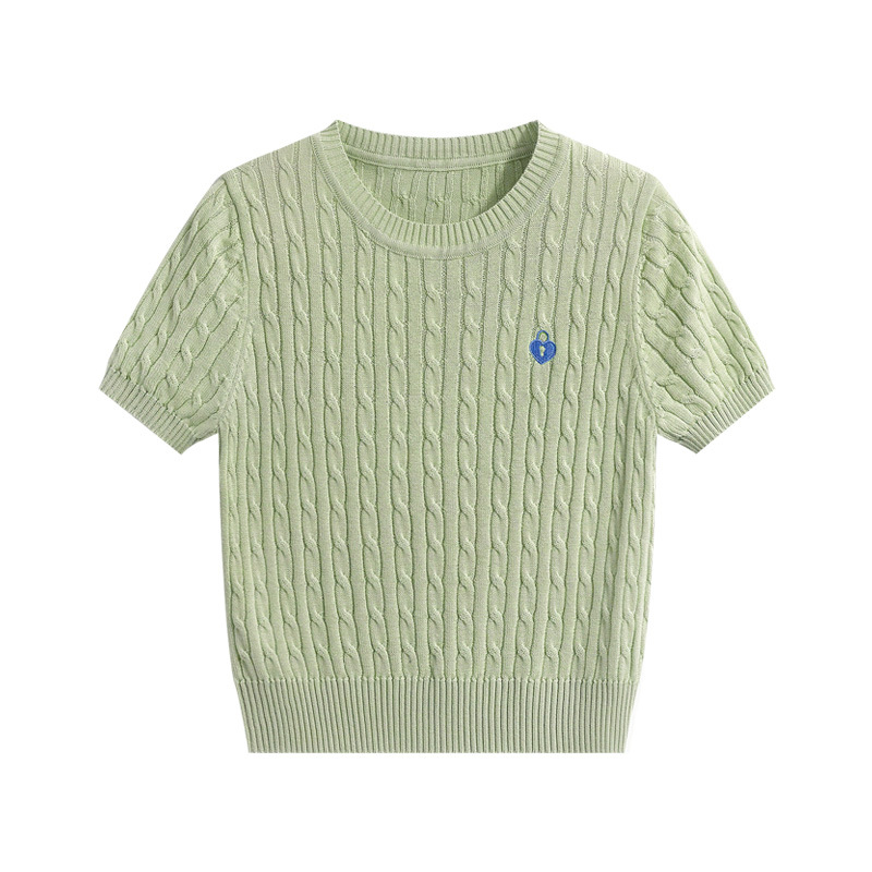 반팔 티셔츠 여성용 여름 새로운 슬림 핏 슬리밍 올 매치 솔리드 컬러 스웨터 트위스트 레트로 쇼트 스웨터 탑