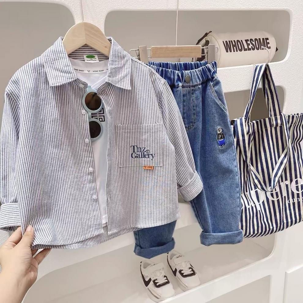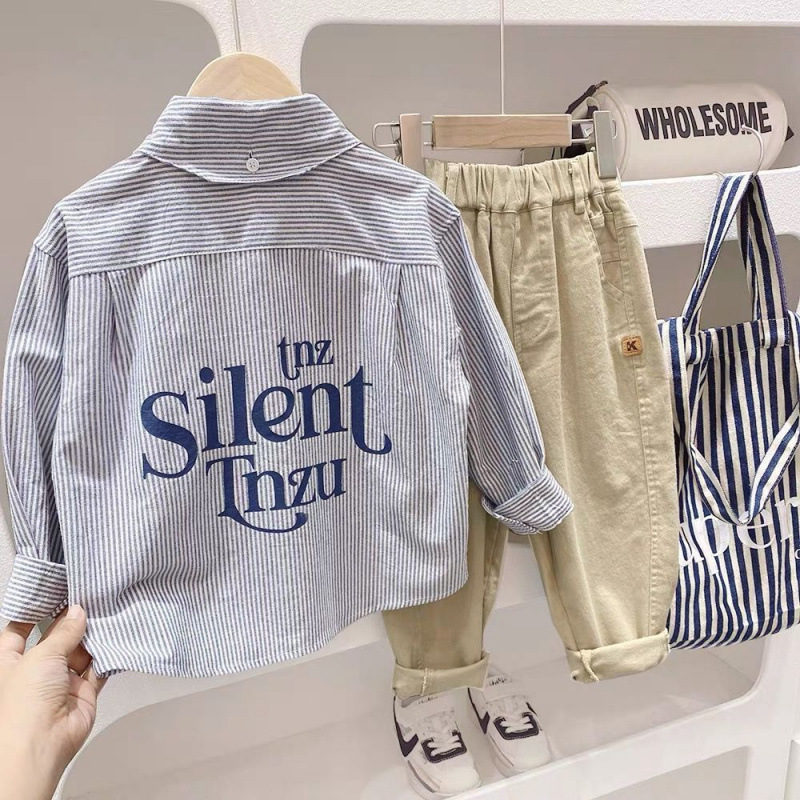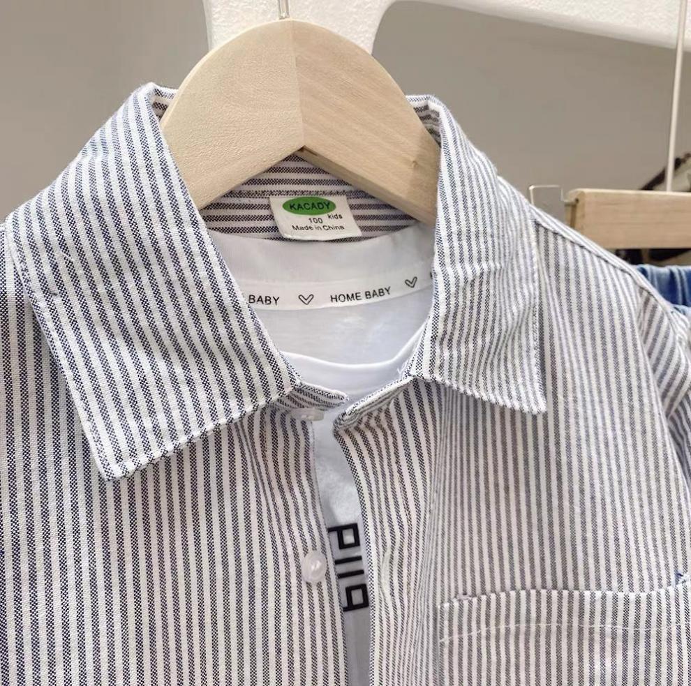 어린이 셔츠 봄과 가을 2025 소년 줄무늬 긴팔 셔츠 가을 새 스타일 중대형 어린이 서양식 캐주얼 자켓스토어 가기