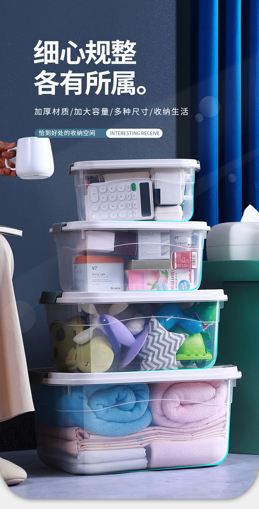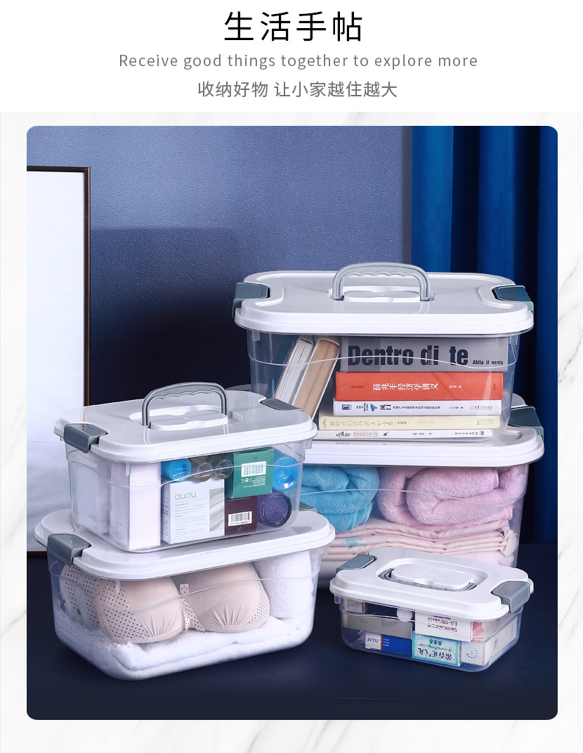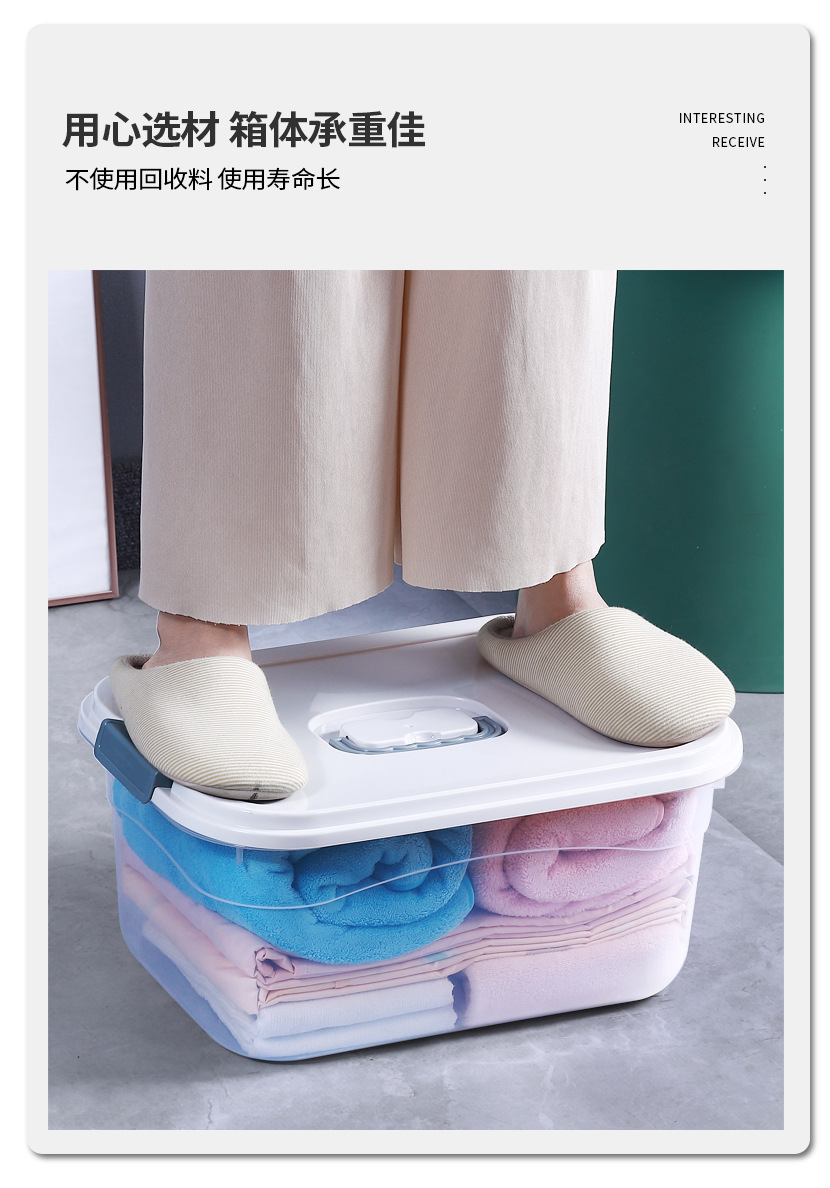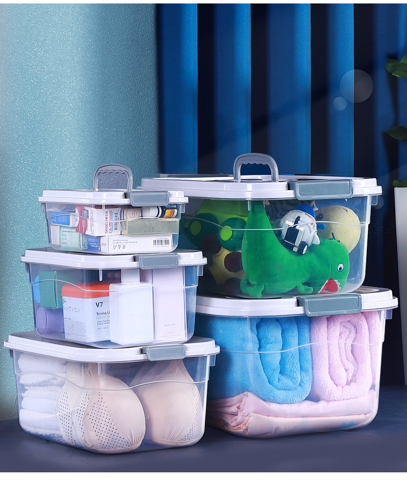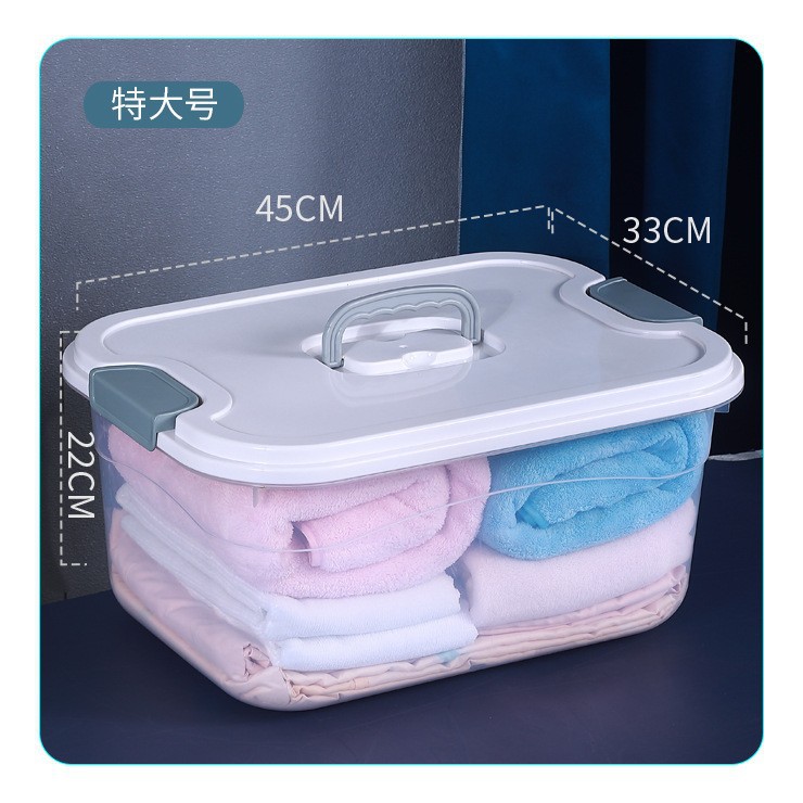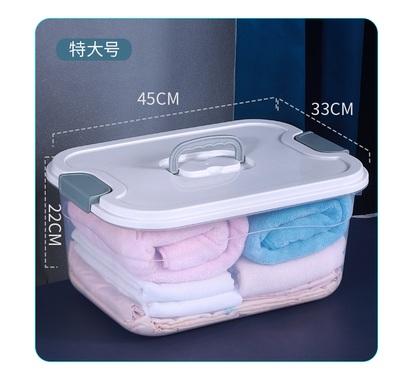 투명한 저장 상자 가정용 어린이 장난감 뚜껑 저장 상자 가정용 휴대용 대형 플라스틱 옷 저장 상자스토어 가기