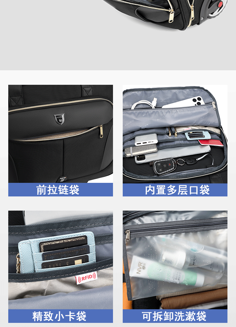 새로운 대용량 비즈니스 여행 가방 휴대용 다기능 트롤리 가방 옥스포드 천 롤러 바퀴 방수 탑승 가방