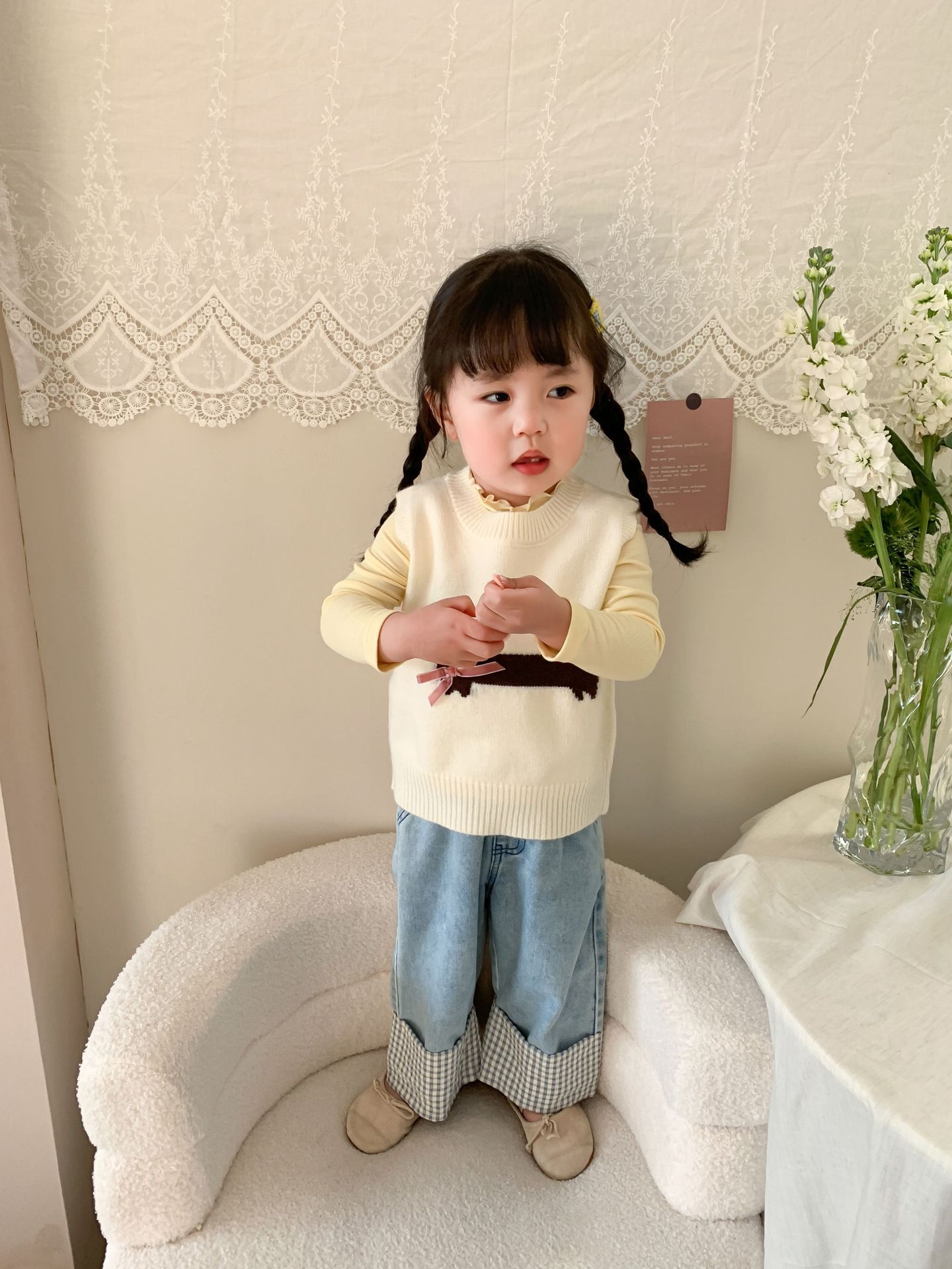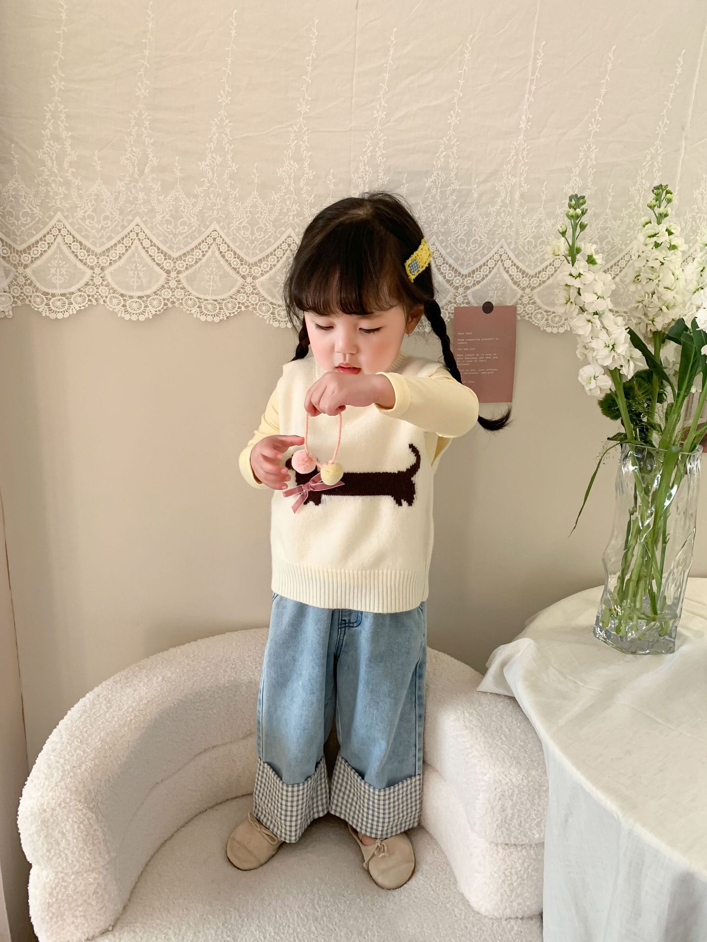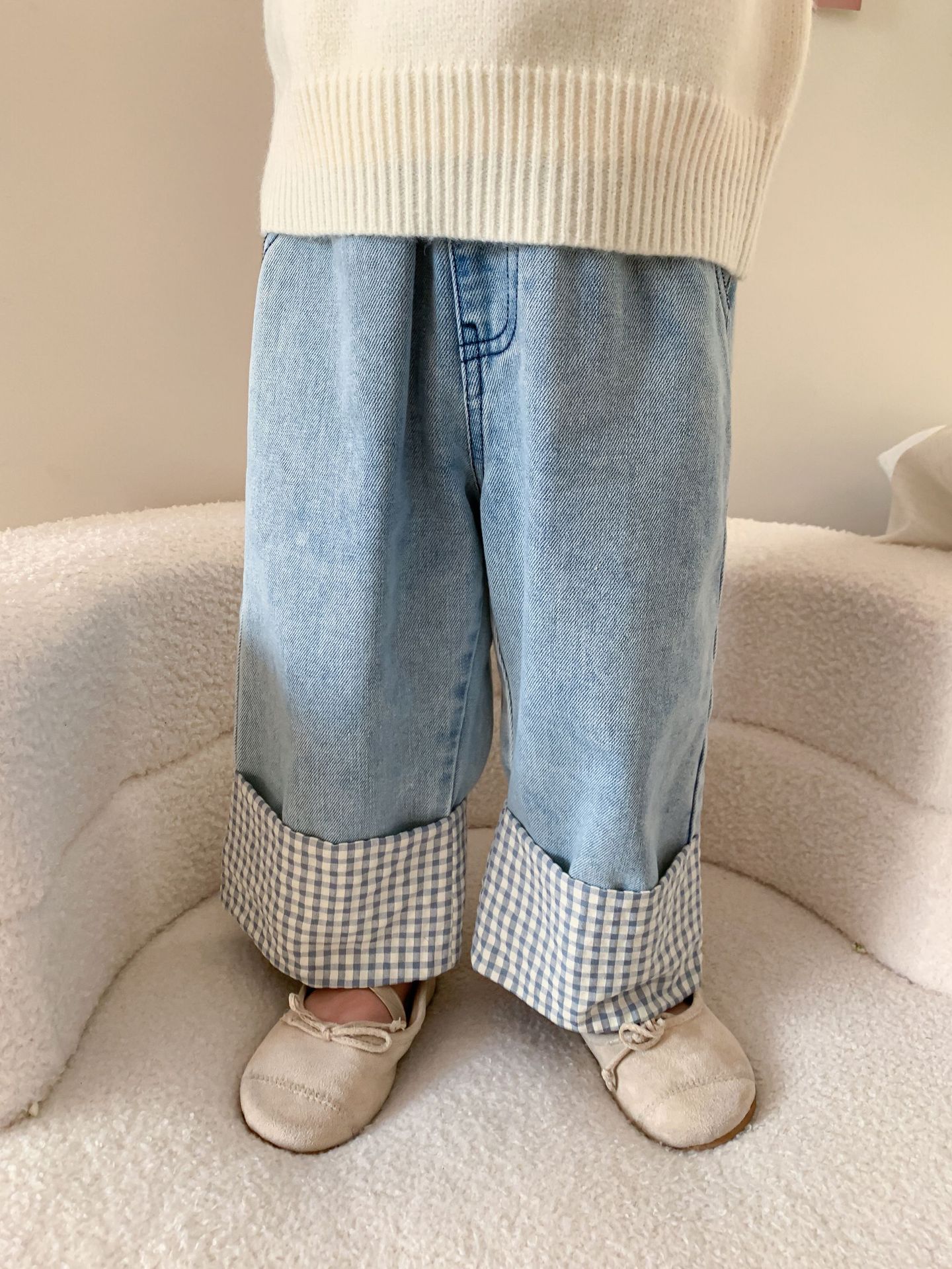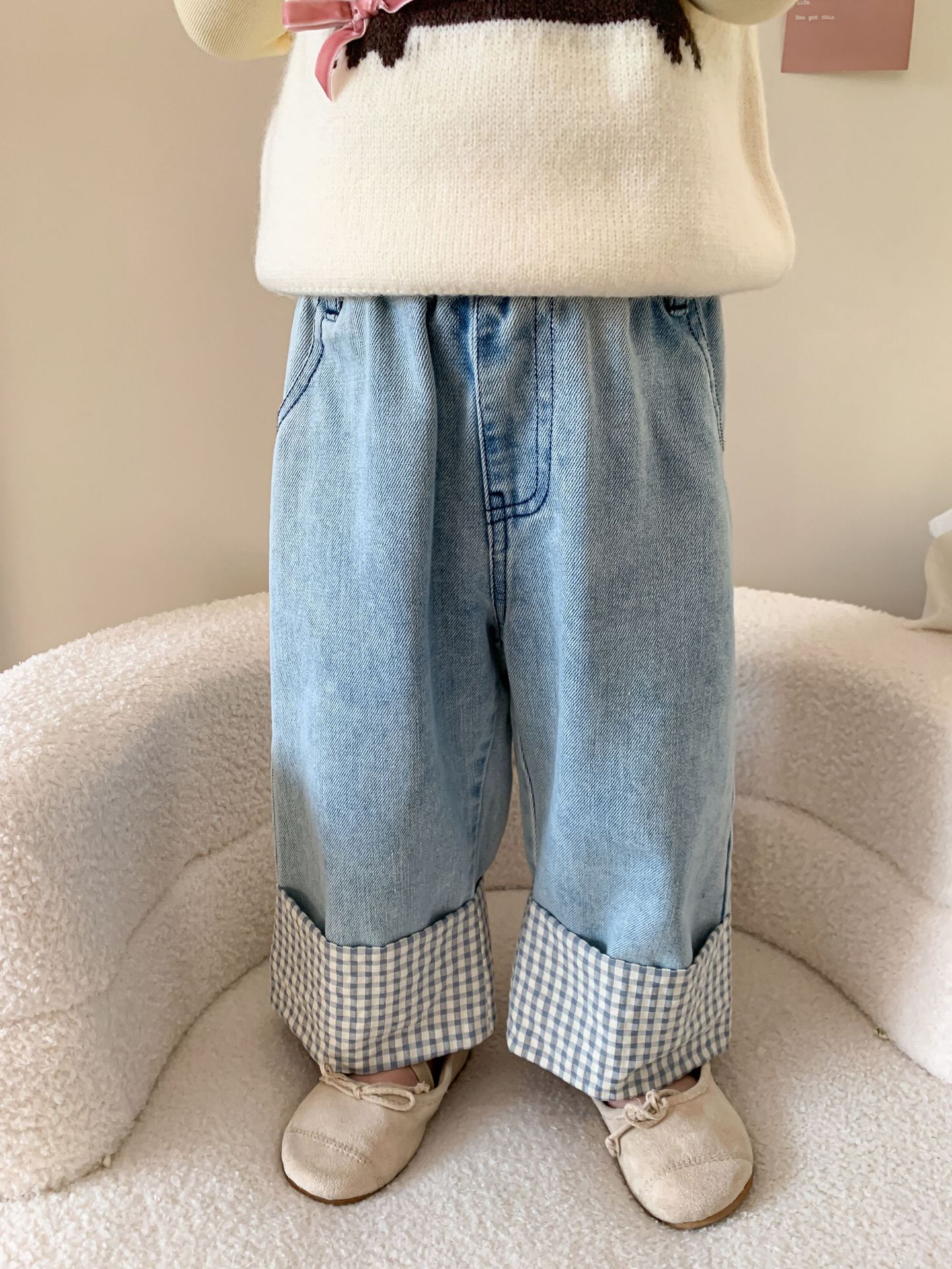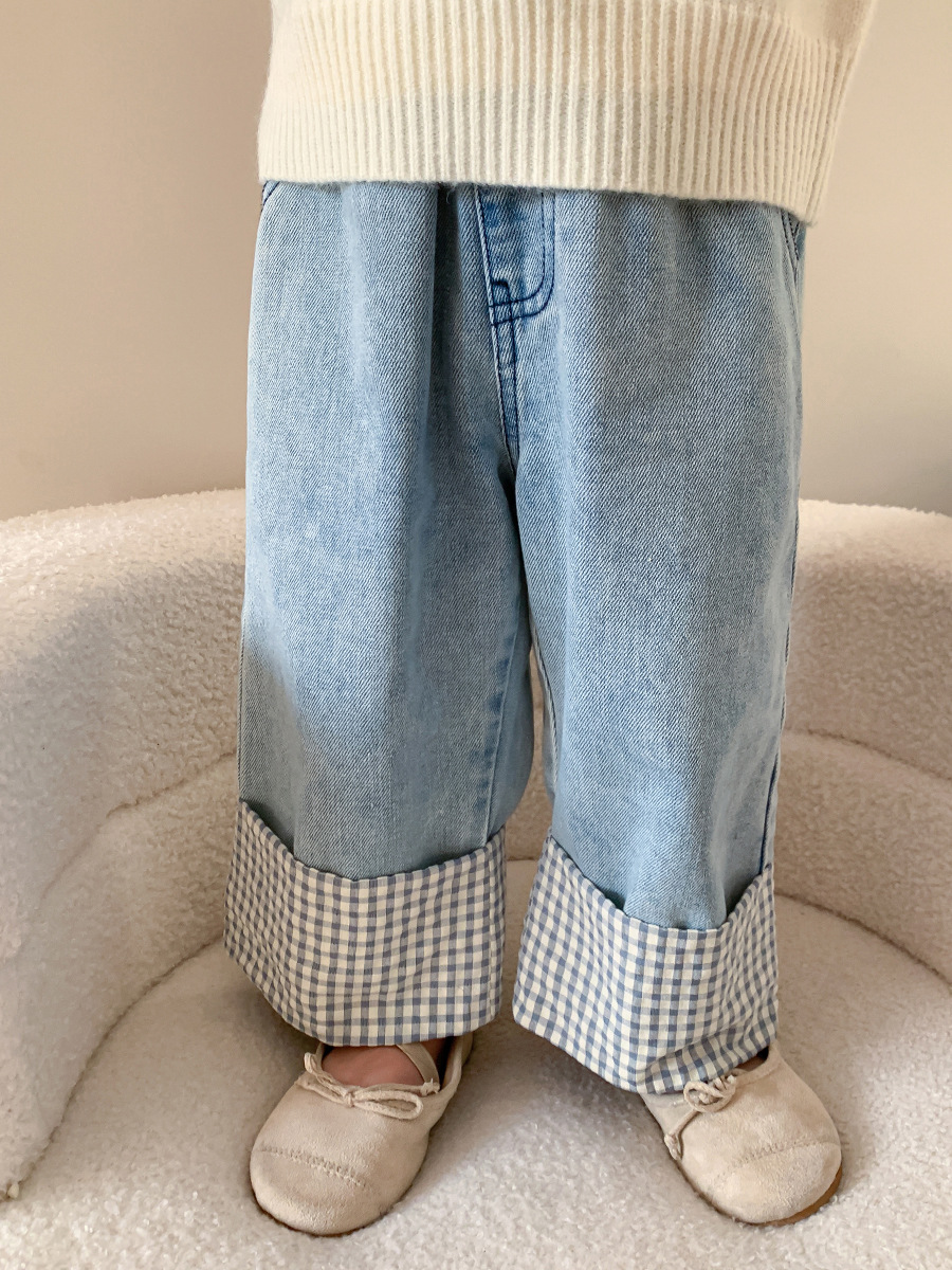 제이트리 아동복 여아 청바지 2025 봄 신상품 한국 스타일 캐주얼 롤업 팬츠 여아용 긴바지스토어 가기