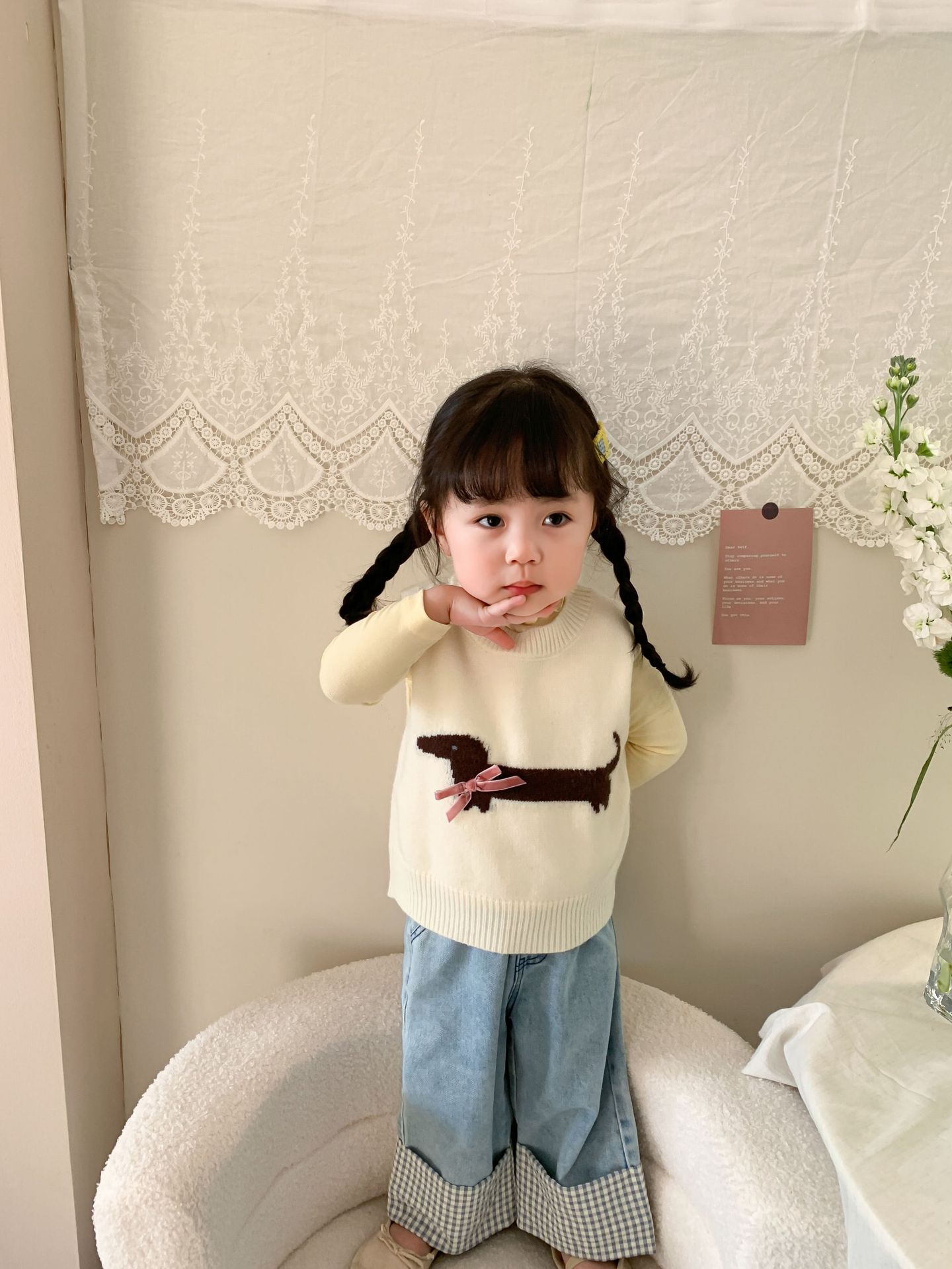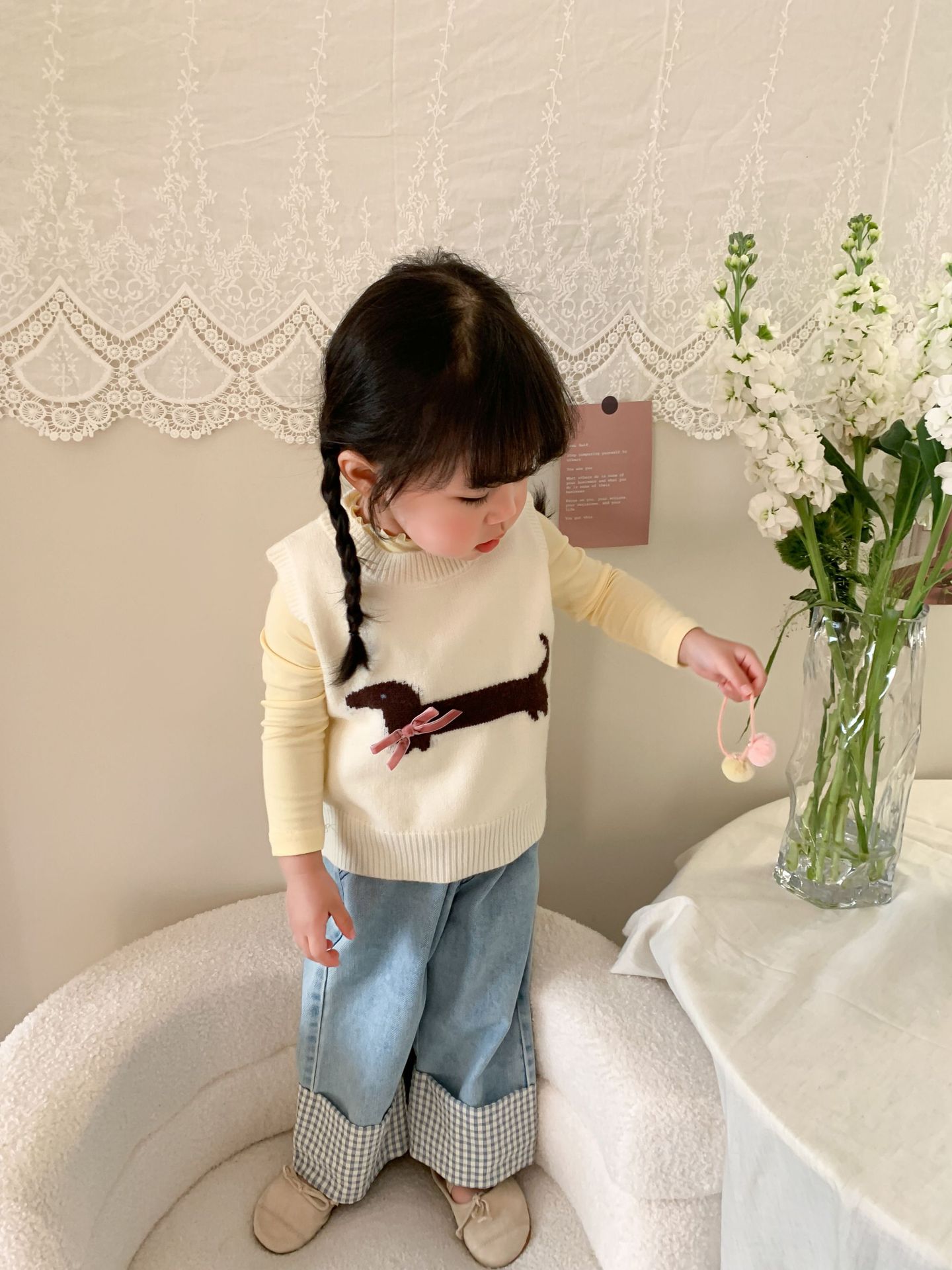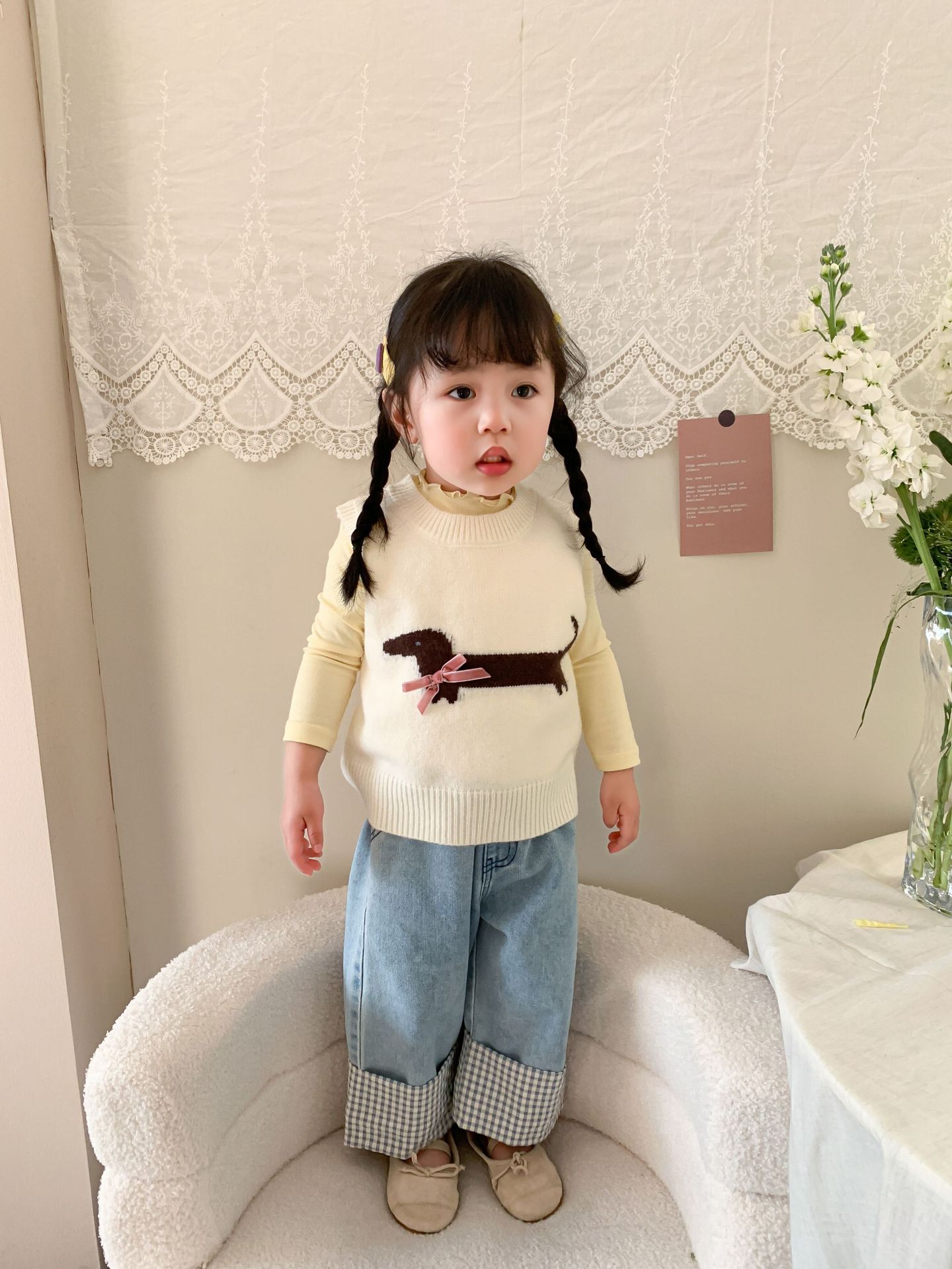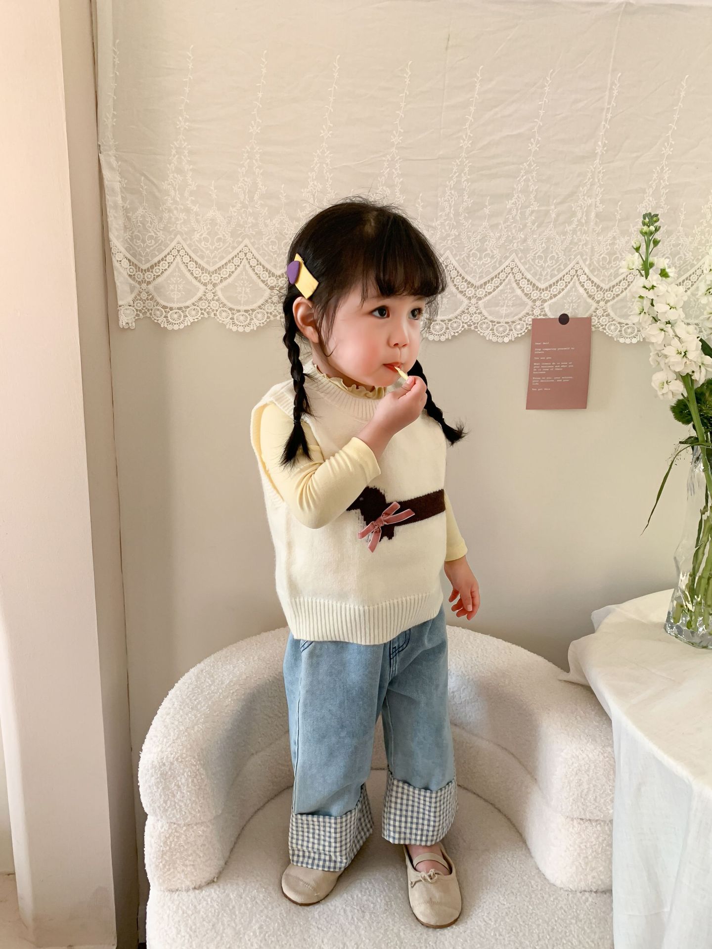 제이트리 아동복 여아 청바지 2025 봄 신상품 한국 스타일 캐주얼 롤업 팬츠 여아용 긴바지스토어 가기